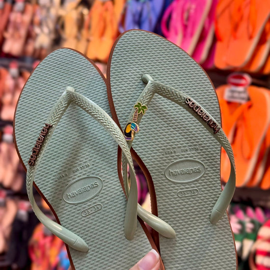 Havaianas Top + Pingente Trevo, Tucano, Coqueiro e Brasil
