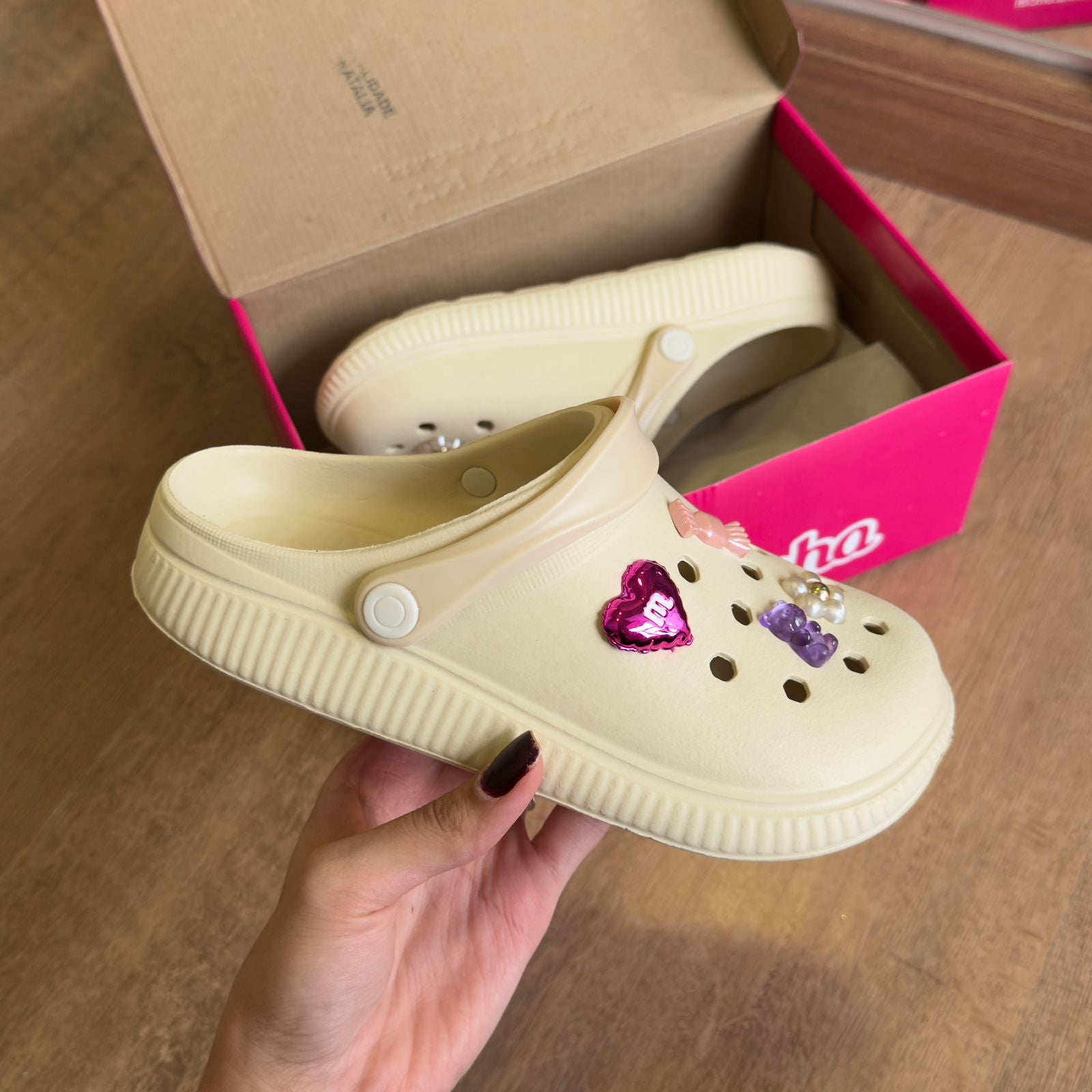 Babuche infantil Molekinha com design divertido e confortável, ideal para crianças que buscam praticidade no dia a dia. Acompanha charms decorativos em formato de ursinho, permitindo personalização e estímulo à criatividade. Confeccionado com materiais de qualidade, oferece leveza e flexibilidade para os pequenos pés. Perfeito para uso em casa, na escola ou em passeios casuais. O conjunto completo proporciona diversão e funcionalidade em um único produto.