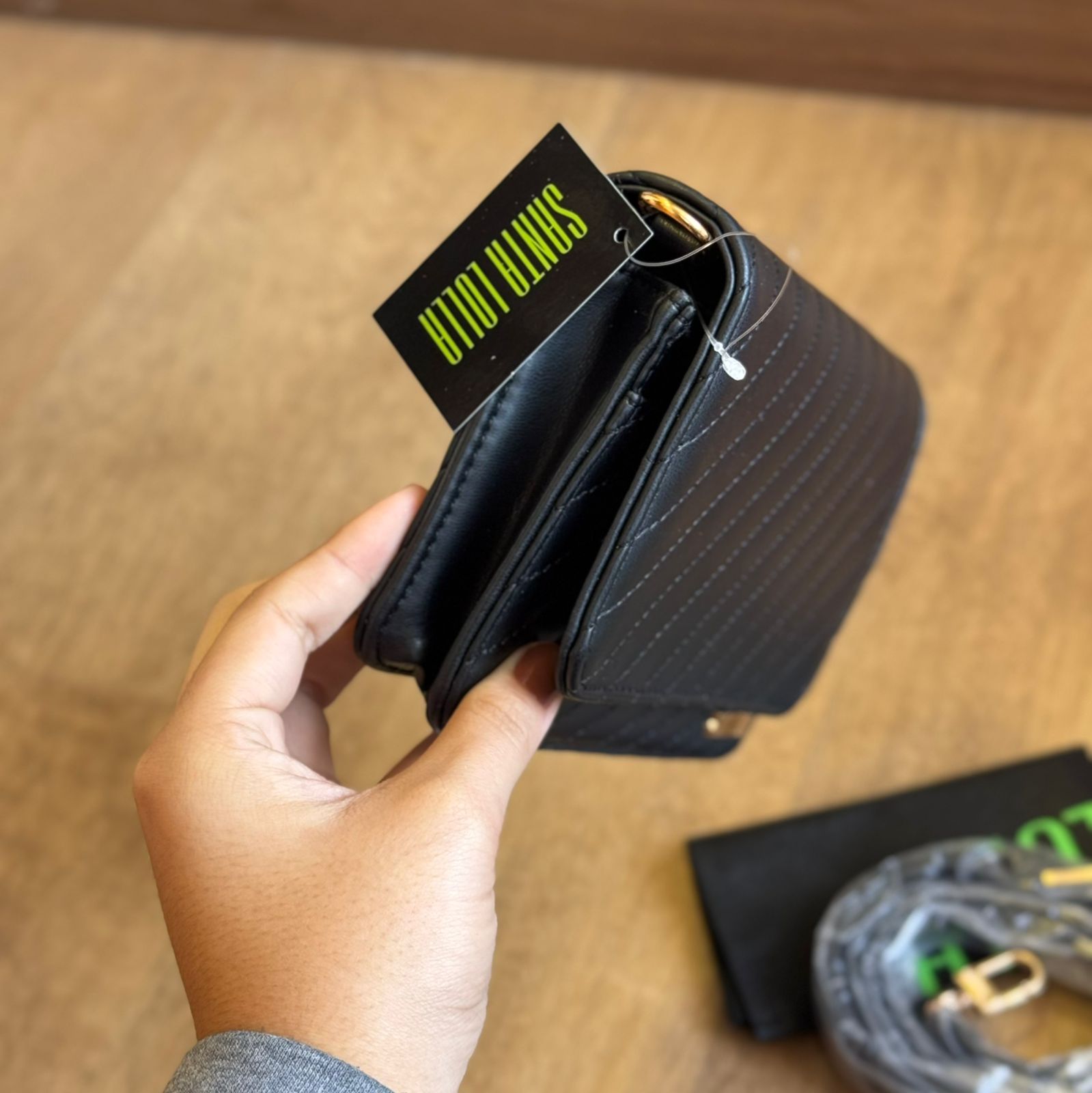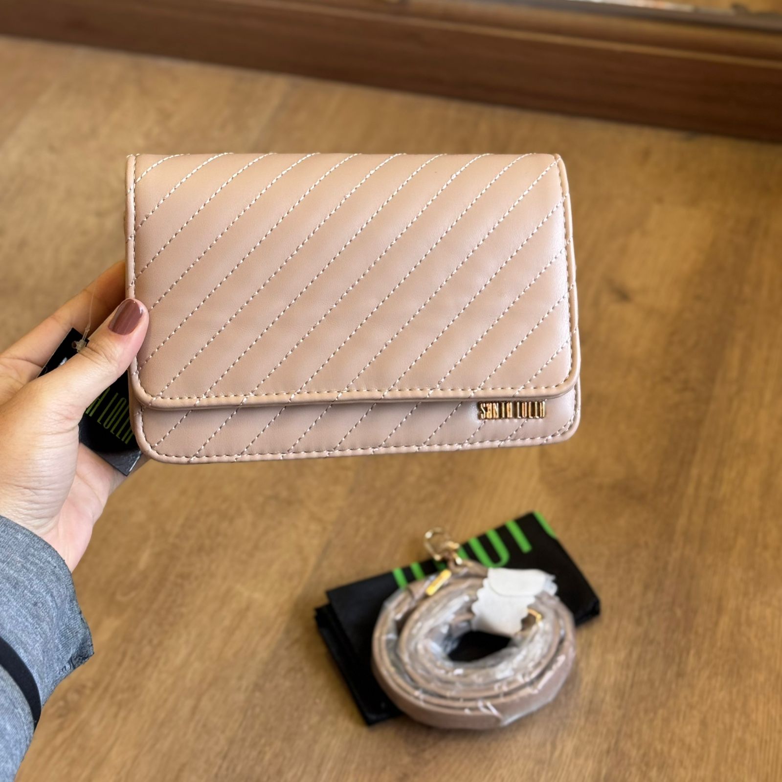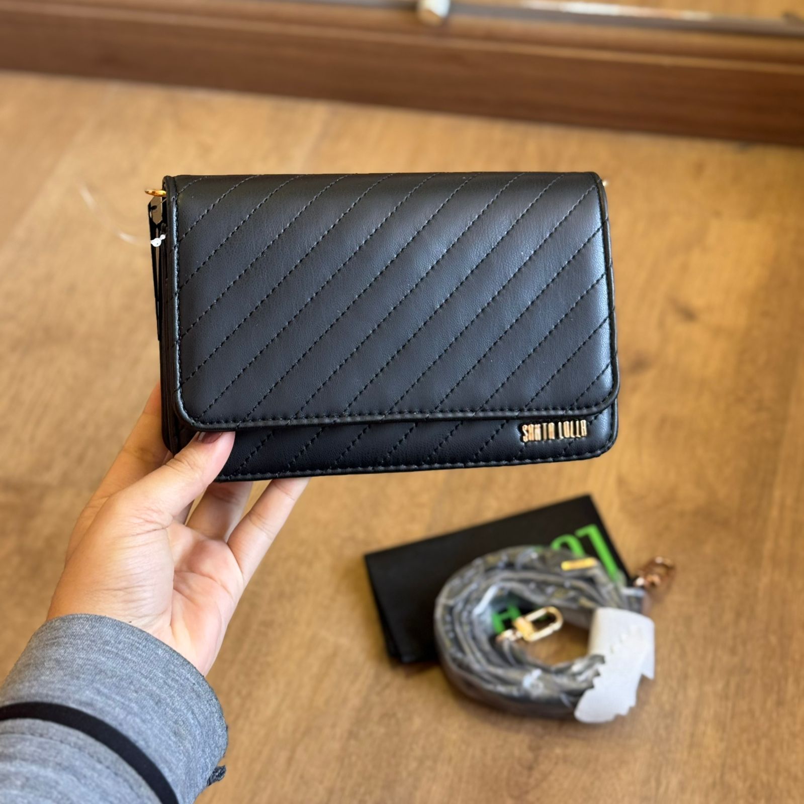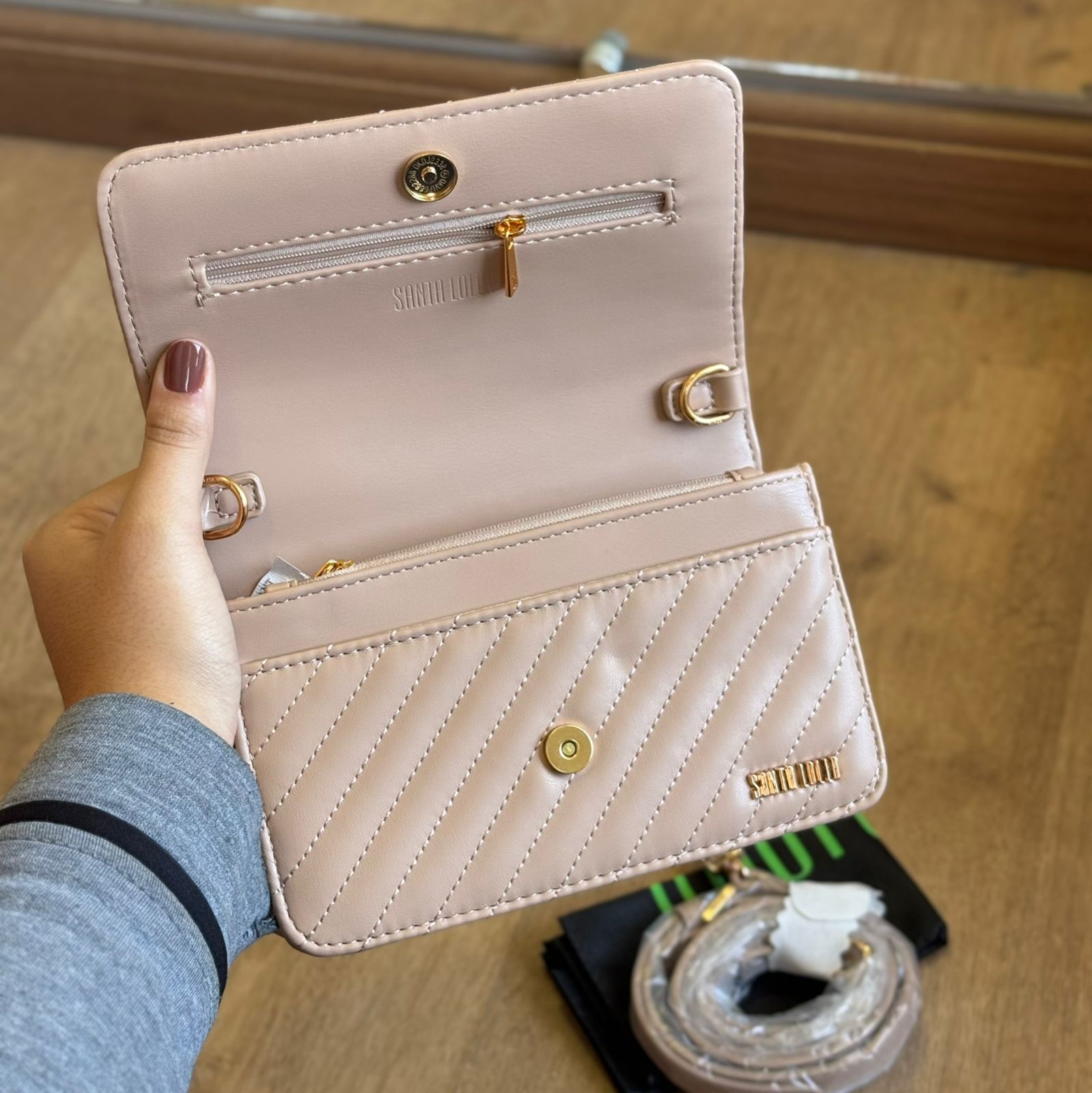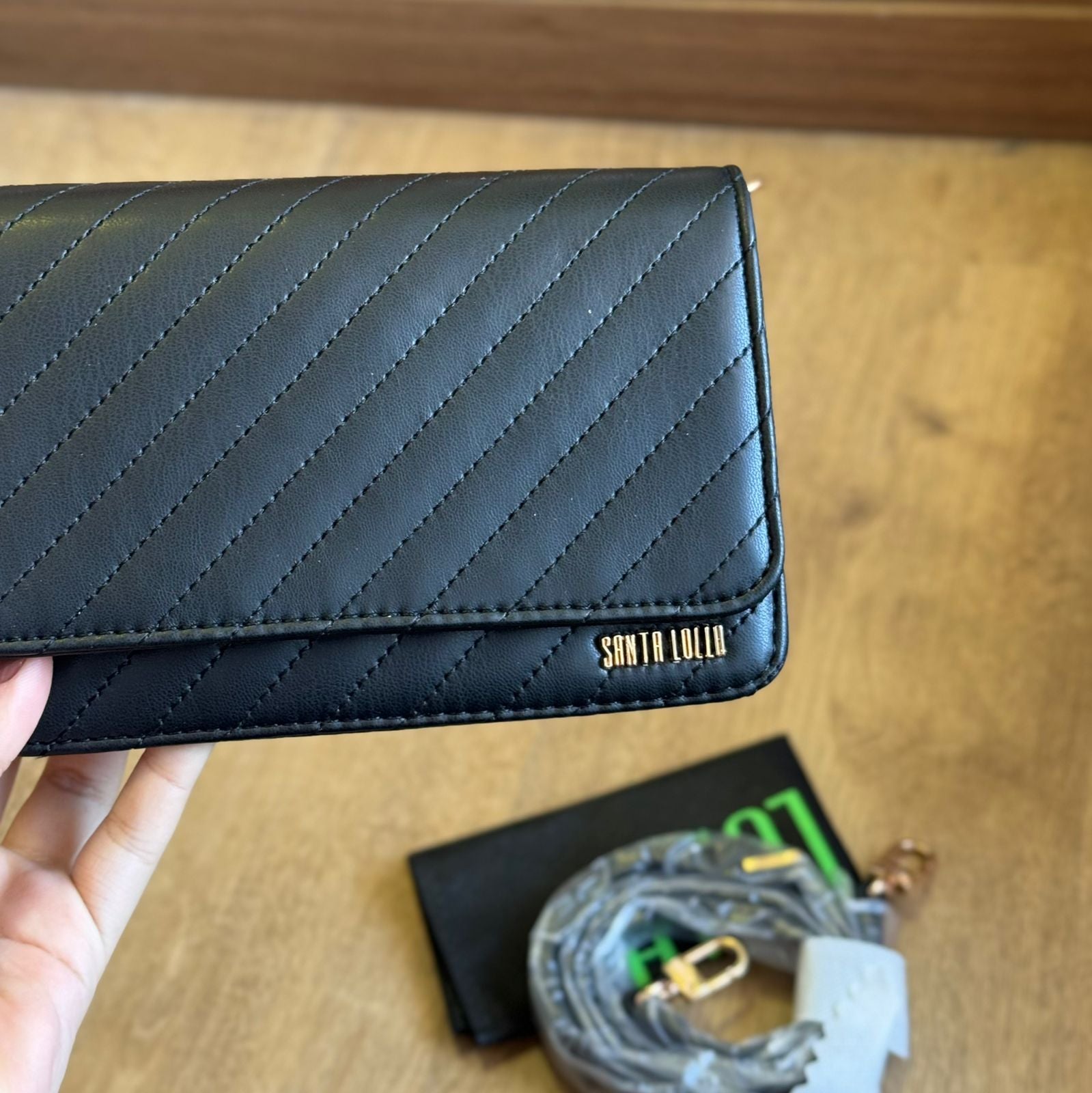 A Bolsa Carteira Santa Lolla Costura Transversal 0470.547E une elegância e versatilidade em um design atemporal. Confeccionada em material sintético de alta qualidade, possui costura diagonal que adiciona sofisticação ao modelo. Conta com logo metálico discreto, fechamento prático e alça removível para uso no ombro ou como carteira de mão. Compacta e funcional, é a peça ideal para acompanhar tanto produções casuais quanto looks mais sofisticados.