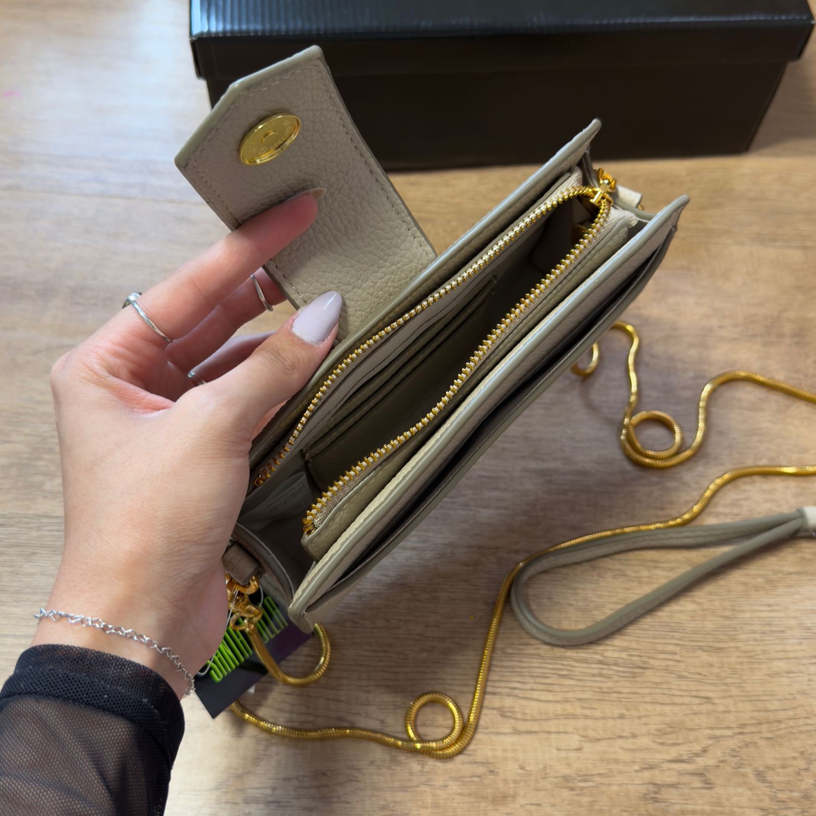Bolsa carteira, confeccionada em material floater. Possui duas alças removíveis, sendo alça de corrente estilo rabo de rato e alça de mão. Traz formato retangular e fechamento em ímã. Ideal para carregar itens essenciais, sem perder o estilo e a elegância.