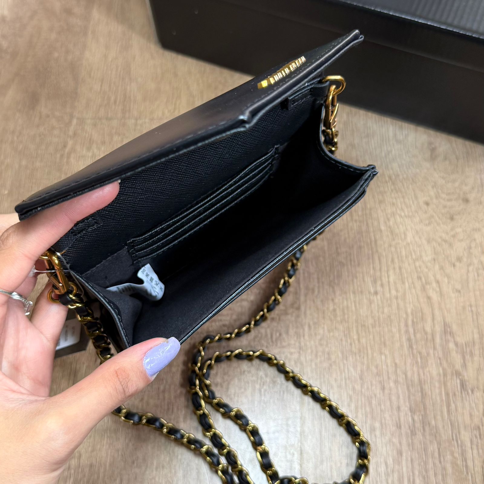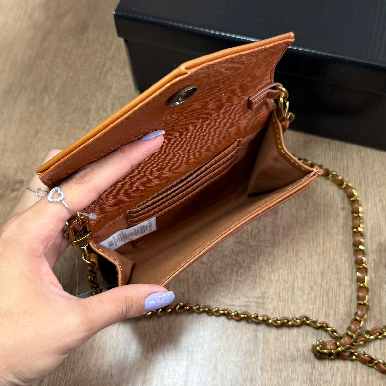 Bolsa carteira confeccionada em material glossy e soft. Traz alça corrente transversal, além de fechamento em ímã. Esse tipo de bolsa é ideal para eventos ou ocasiões onde você precisa carregar apenas o essencial, como celular, cartões e chaves.