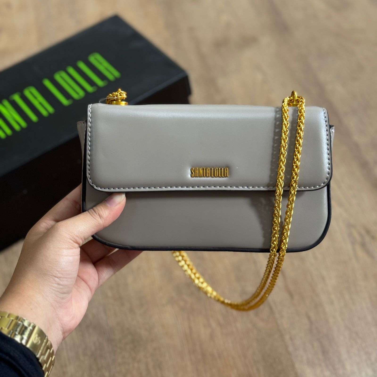 Bolsa Santa Lolla Metalizada Alça Transversal Corrente 0470.56A4.037C