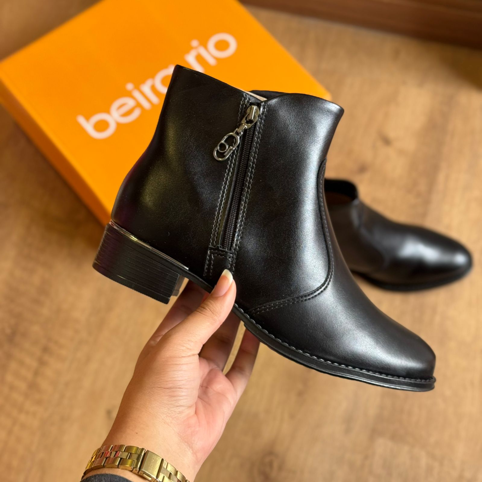 A Bota Beira Rio Cano Curto 9045.347 combina elegância e praticidade em um só modelo. Com design moderno e acabamento impecável, ela conta com zíper lateral que facilita o calce e traz charme extra ao visual. Seu salto baixo e solado confortável garantem estabilidade e bem-estar para o dia a dia, sendo perfeita para compor looks versáteis e estilosos.