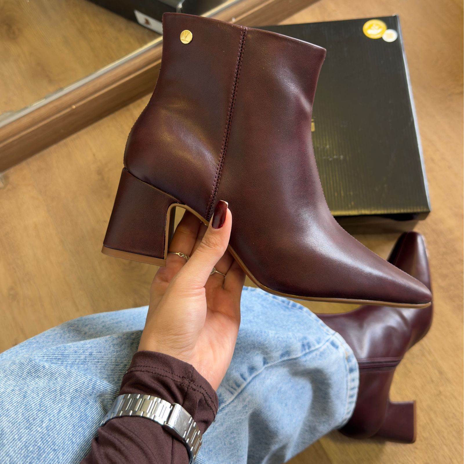 Com bico fino sofisticado e salto bloco que garante estabilidade, ela combina com jeans, saias e vestidos, deixando qualquer look moderno e fashion. O cano curto adiciona um toque urbano e despojado, tornando a peça perfeita para compor looks trendy e cheios de atitude.