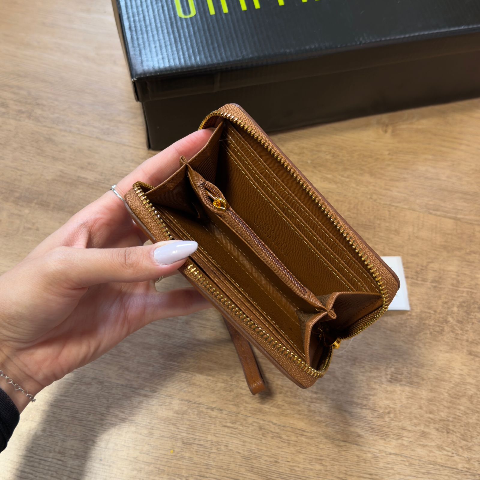 Carteira confeccionada em material floater, um couro natural de textura granulada e macia, que confere durabilidade e uma aparência ligeiramente fosca, é resistente a riscos e manchas, além de ter um toque confortável e uma estética elegante. Tem um design compacto e funcional, com espaço interno organizado para cartões, dinheiro e documentos. A alça de mão, é um detalhe adicional que permite carregá-la com segurança e estilo, tornando-a ideal para ser usada sozinha ou dentro de uma bolsa maior.