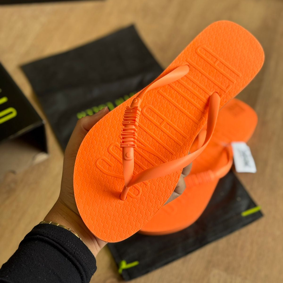 Chinelo Flip flop, confeccionado em borracha leve e durável, proporciona flexibilidade e resistência, sendo ideal para uso frequente. A sola macia oferece conforto ao caminhar, enquanto a superfície texturizada ajuda a evitar escorregões. O logo da marca na tira é um elemento simples, mas que faz toda a diferença, transformando o chinelo em um item de moda casual que também é funcional.