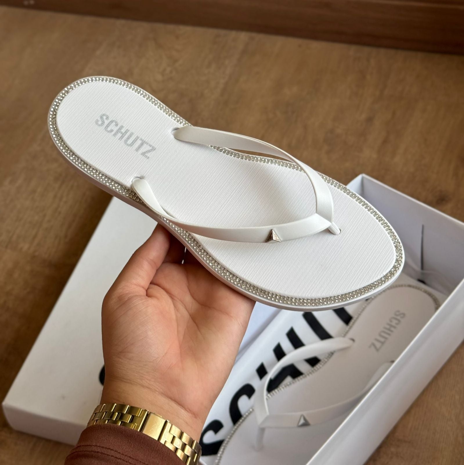 Descubra o charme irresistível do Chinelo Schutz Jelly Detalhe Dourado. Com seu design translúcido e sofisticado acabamento dourado, este modelo combina estilo contemporâneo com conforto excepcional. Perfeito para quem busca um acessório versátil que funciona tanto no dia a dia quanto em ocasiões especiais. A qualidade Schutz garante durabilidade e elegância em cada passo. Eleve seu guarda-roupa com este chinelo que une moda e praticidade de forma irresistível.