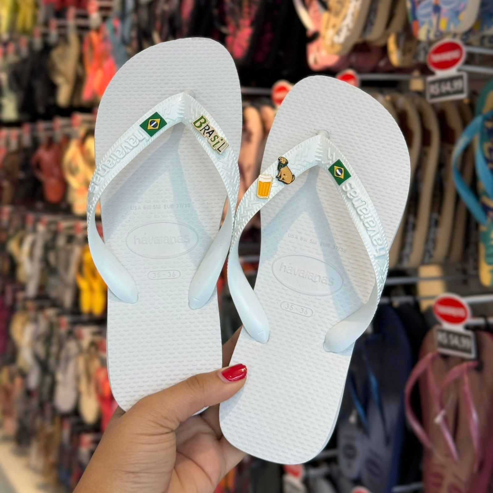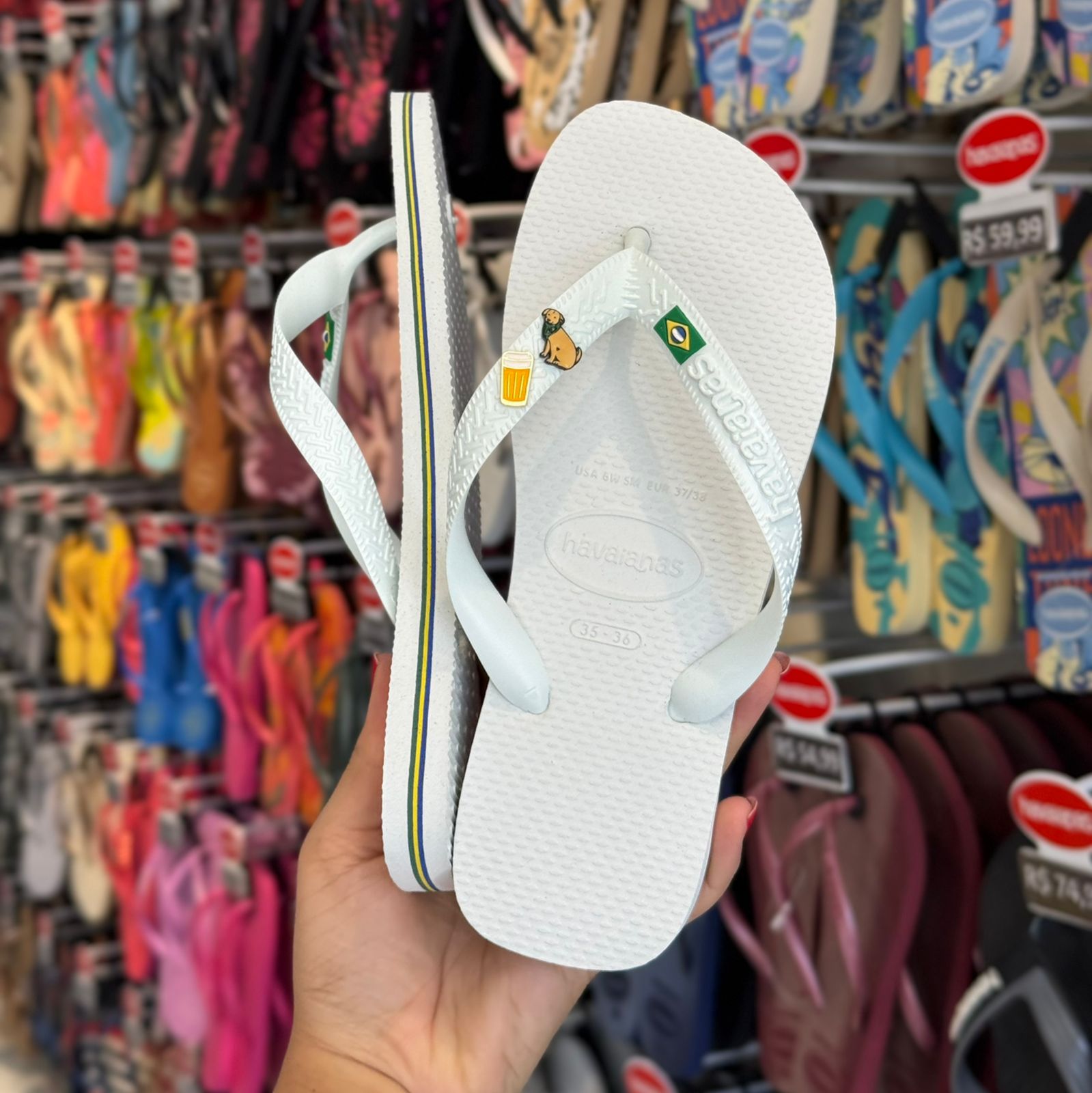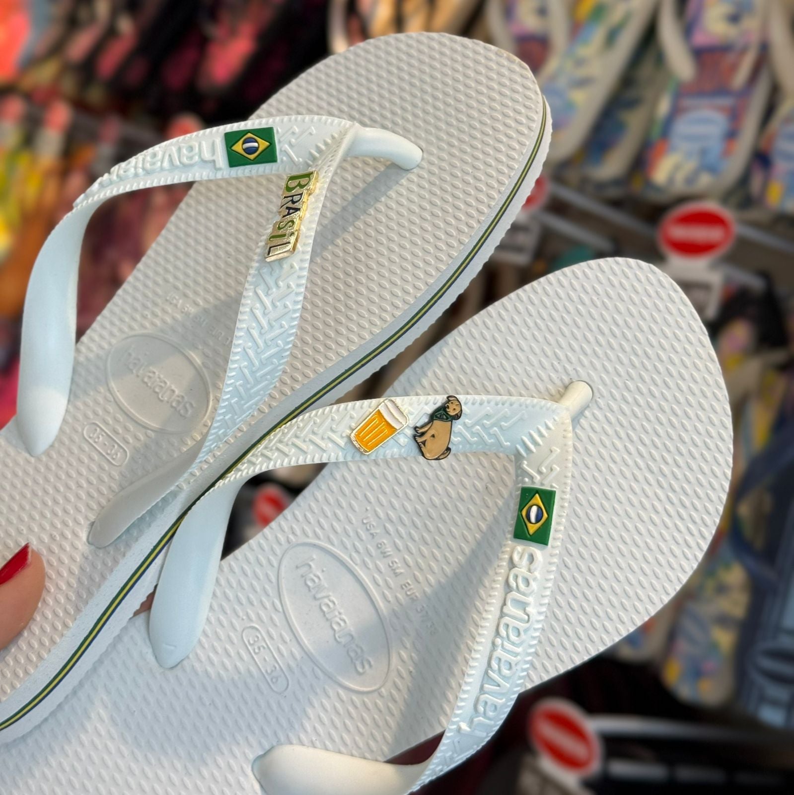 Havaianas Brasil + Pin Cachorro Caramelo + Pin Chopp + Pin Brasil Logo