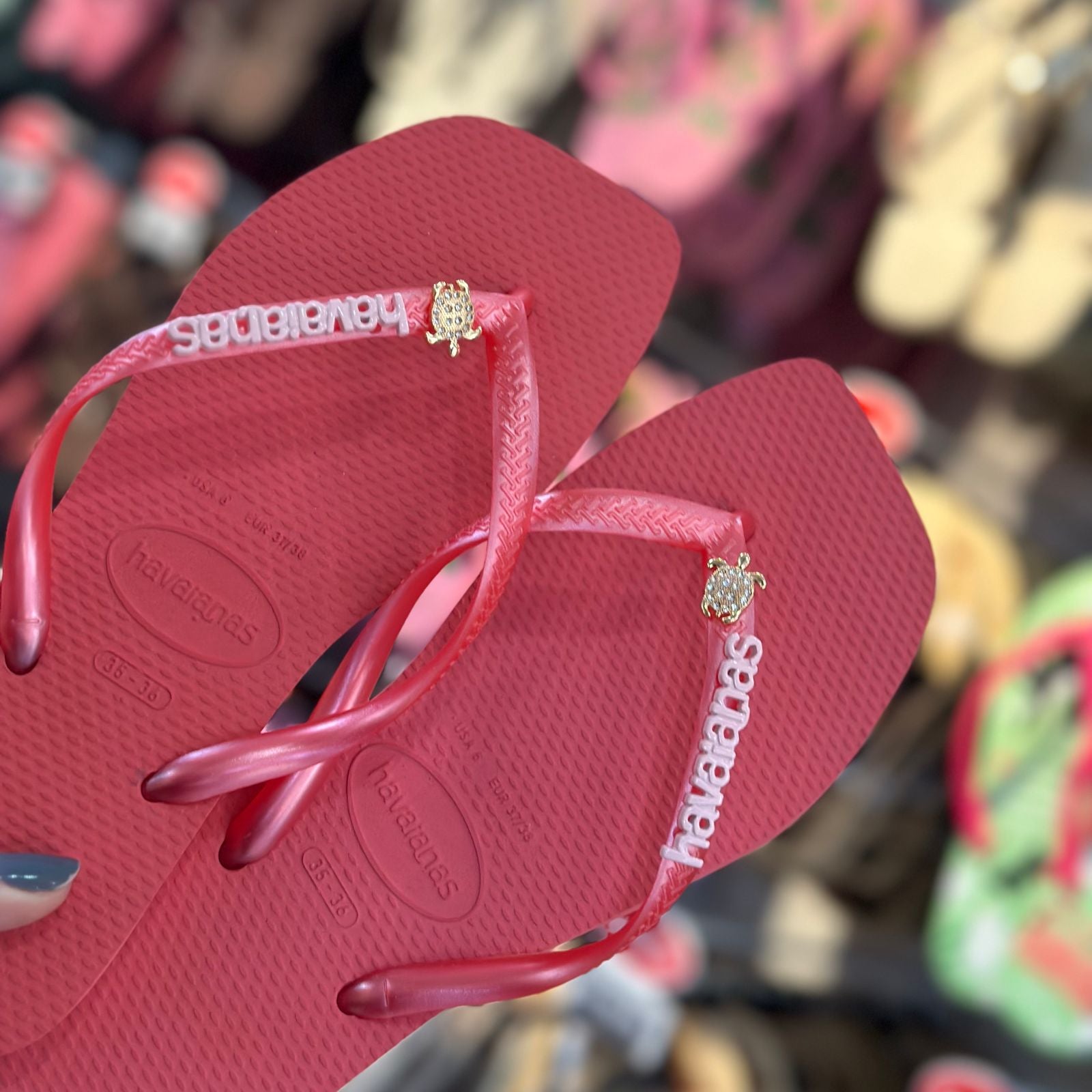Dê um toque de sofisticação aos seus pés com as Havaianas Slim Square! O Pin Placa Logo adiciona um toque de elegância, enquanto o encantador Pin Tartaruga traz um charme tropical e descontraído. Combinando conforto e estilo, estas Havaianas são ideais para qualquer ocasião, proporcionando um visual único e vibrante. Sinta-se nas praias paradisíacas a cada passo!