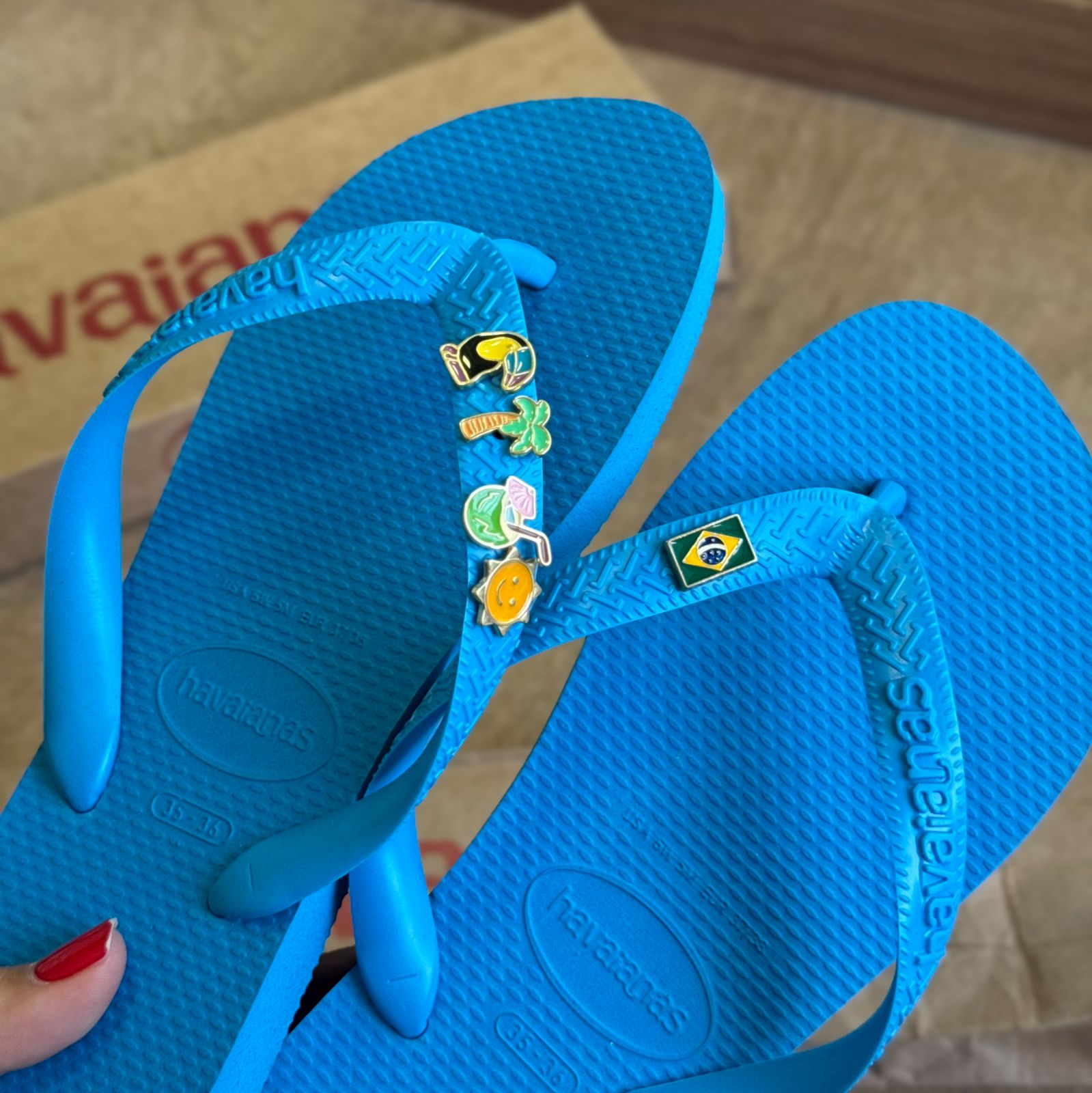 Havaianas Top + Pins Brasil, Tucano, Coqueiro, Aguá de Coco e Sol