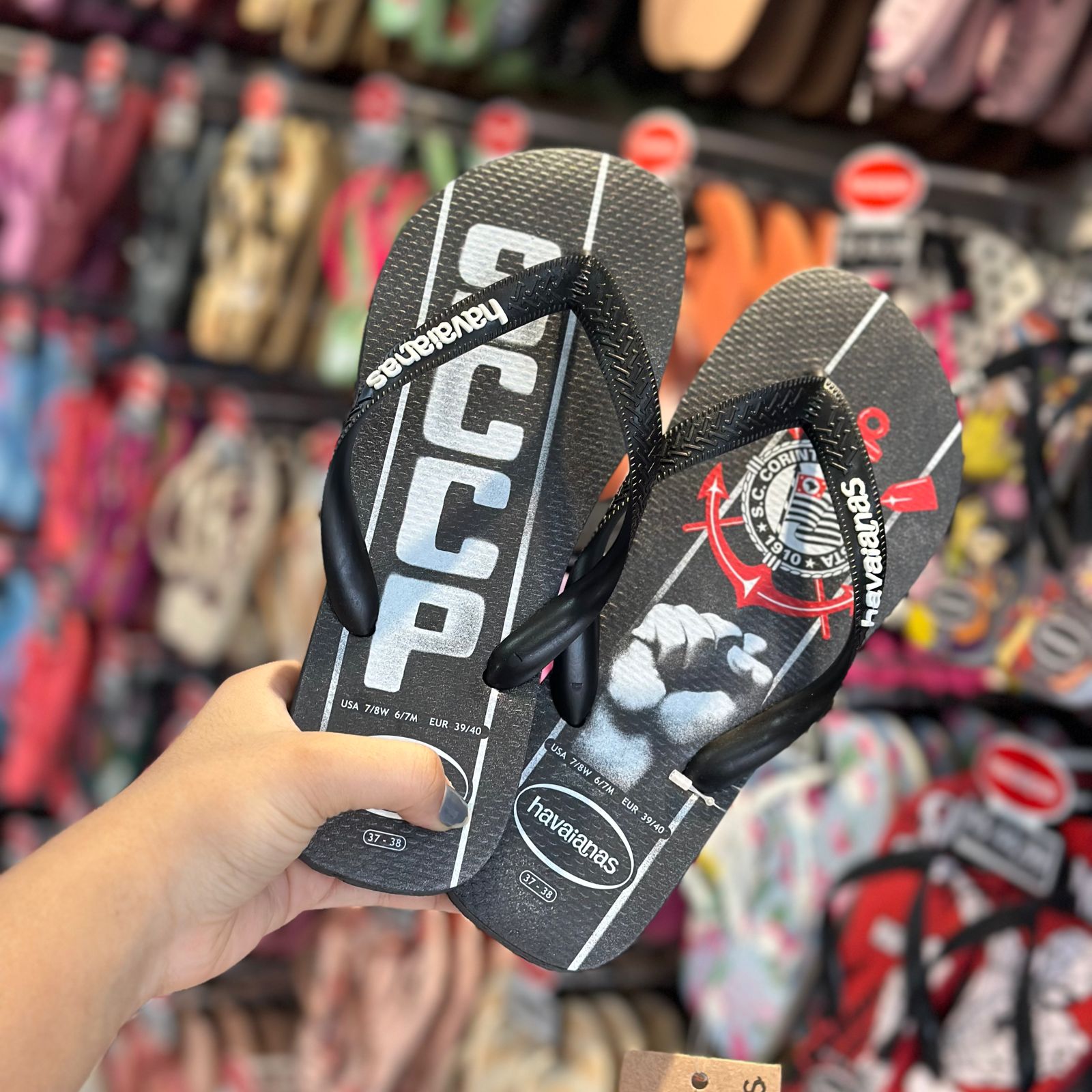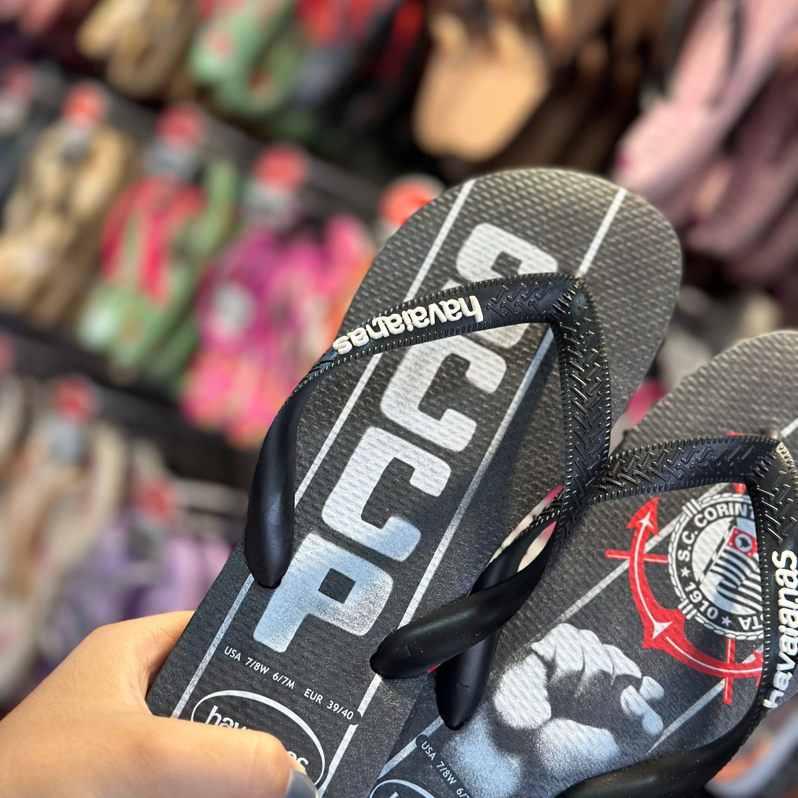 A Havaianas Top Times Corinthians homenageia a Democracia Corinthiana e seu principal nome, o inesquecível Sócrates, com um punho erguido estampado na sola. Os torcedores orgulhosos não podem ficar sem esse chinelo nos pés!