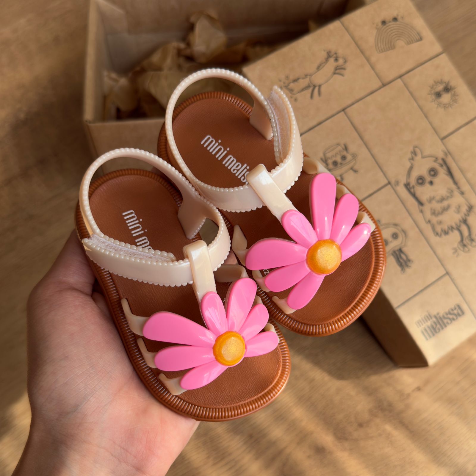 Flores com cheirinho de Melissa? A Mini Melissa Hip Bloomy tem! Disponível no tamanho baby, a sandal é aberta e leve como um grande campo florido! Seu fechamento em velcro e o detalhe com enfeite em formato de flor no cabedal asseguram o conforto, a segurança e a fofura de seu bebê.