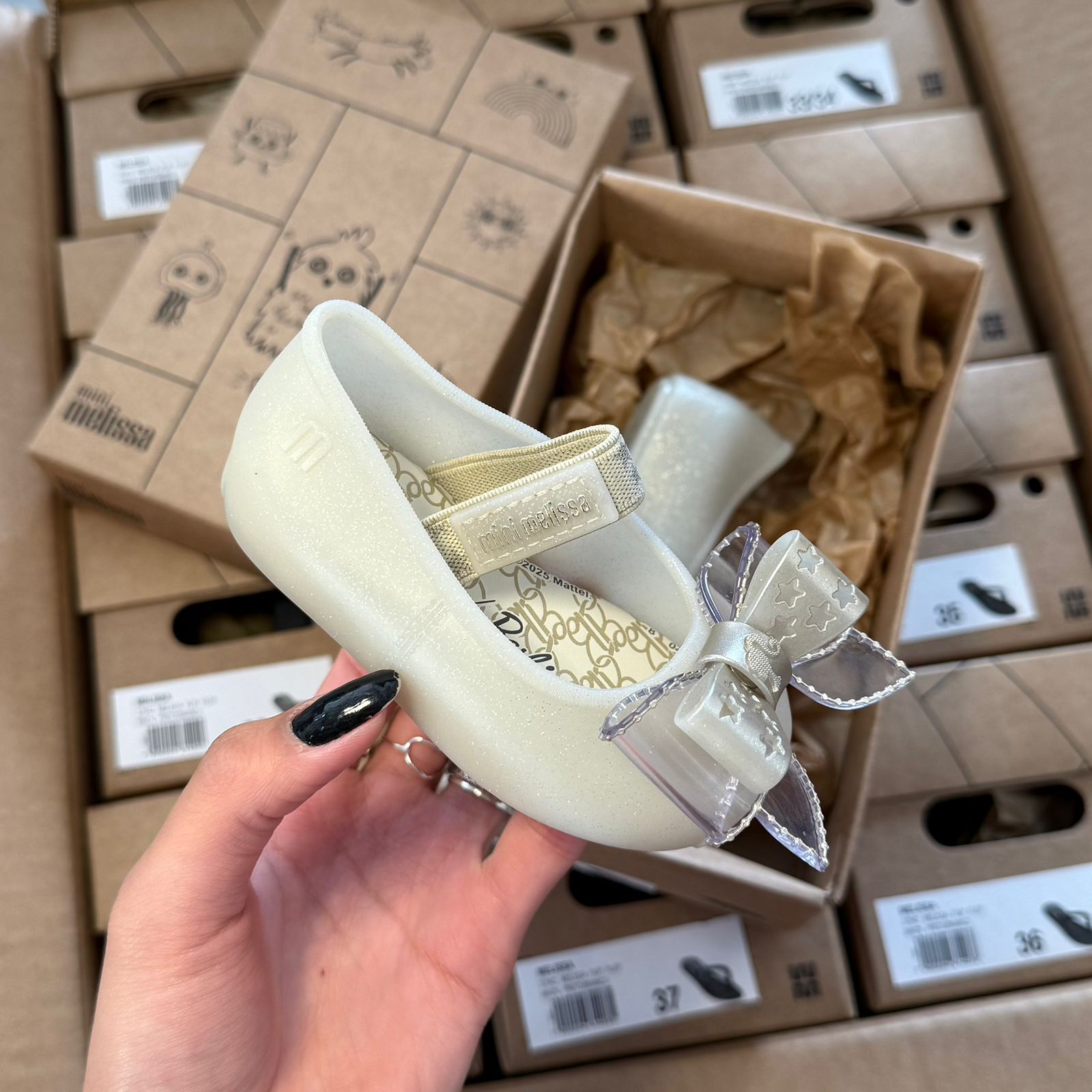 A Mini Melissa Sophie + Barbie Baby é o encontro perfeito entre delicadeza, brilho e imaginação. Inspirada no universo mágico da Barbie e na tendência balletcore, essa versão traz um visual encantador que mistura transparências suaves e acabamento brilhante, resultando em uma estética leve, feminina e cheia de personalidade. O detalhe da estrela no elástico adiciona um toque especial ao design, celebrando o encanto e a fantasia do mundo da Barbie. Feita para as pequenas que amam moda e diversão, é o modelo ideal para transformar cada momento.
