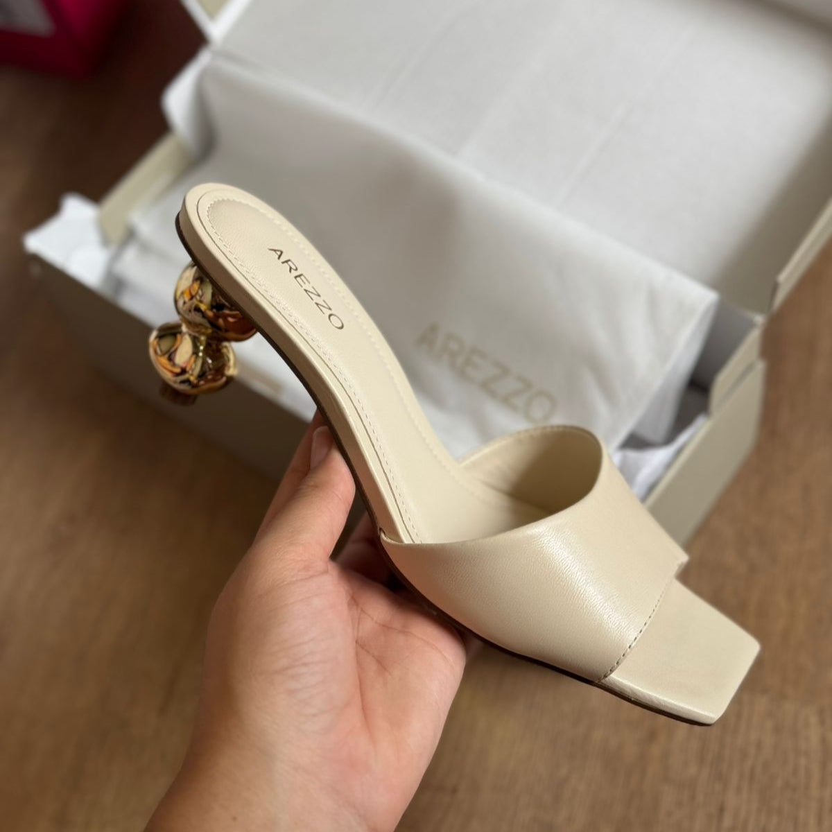 A mule é sinônimo de estilo! Vem com salto geométrico em esferas, traduzindo a tendência dos fun heels e artsy da temporada. Um item para deixar seus looks ainda mais trendy e elegantes!