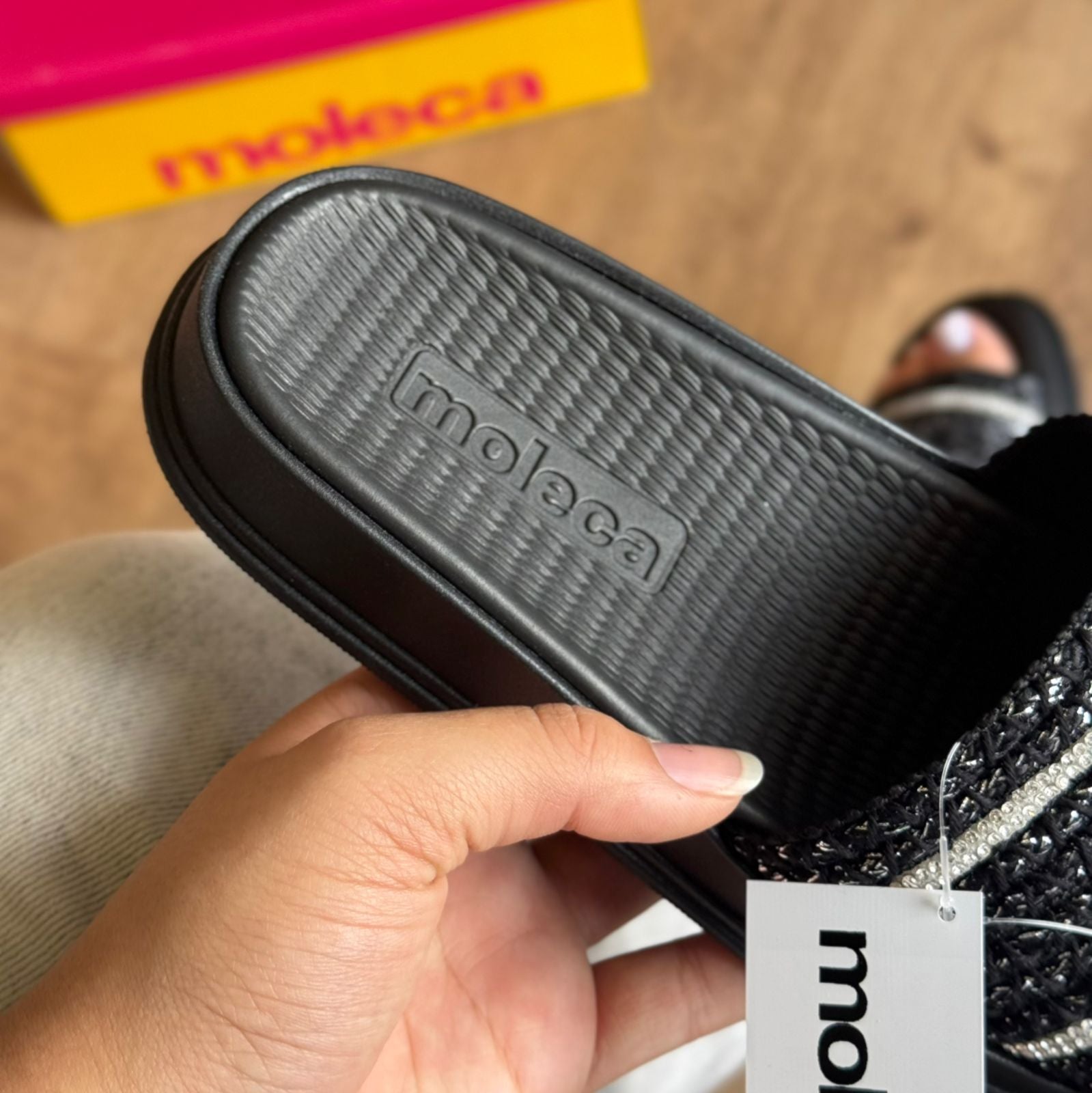 Papete Moleca em crochê que combina conforto e estilo casual. O design em trama aberta oferece respirabilidade ideal para clima quente, enquanto a construção Moleca garante suporte e durabilidade.
