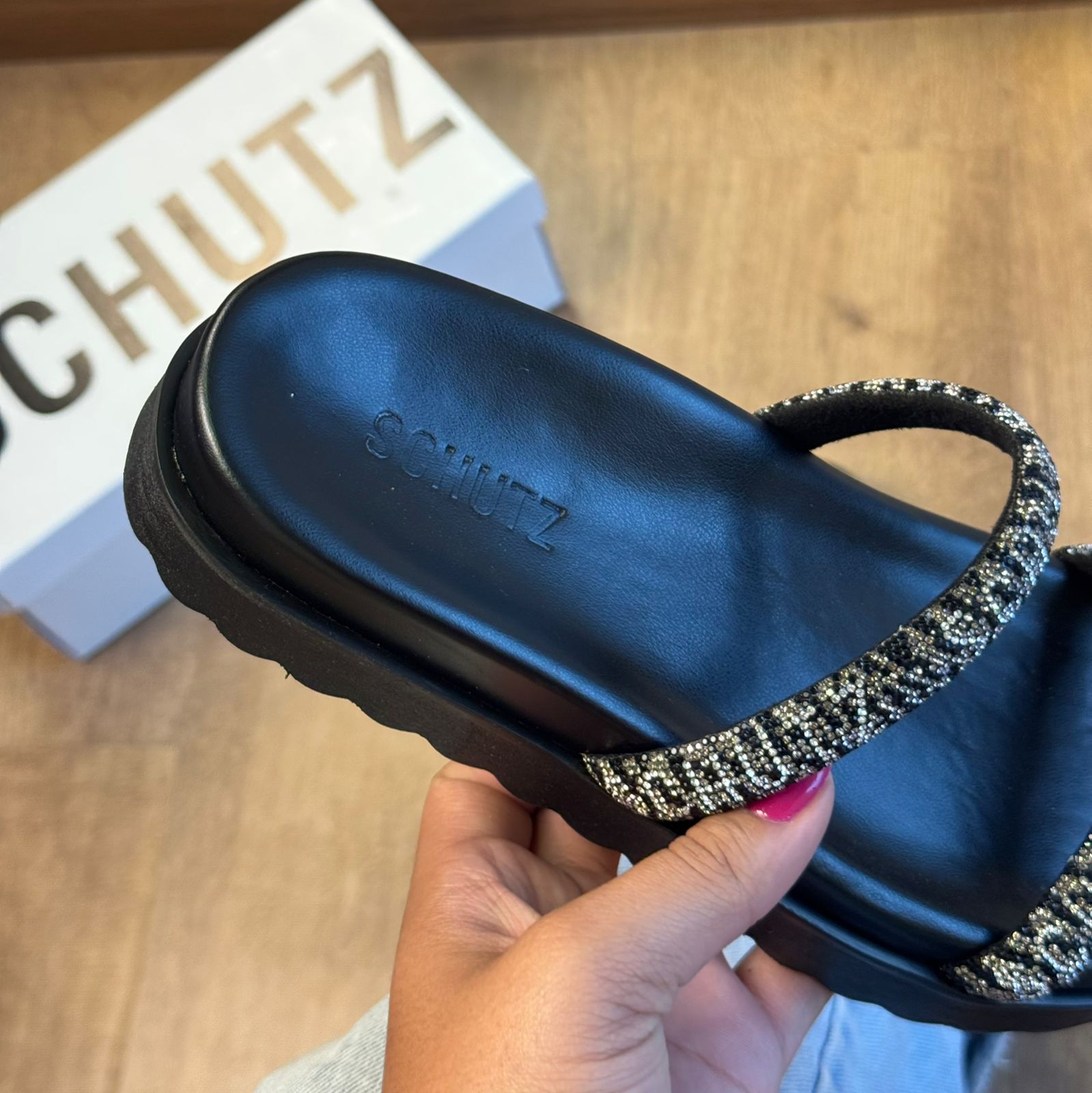 Papete Schutz com destaque para o detalhe da marca, modelo. Peça essencial do guarda-roupa feminino, combina conforto e elegância em um design minimalista. O acabamento refinado e a assinatura Schutz garantem qualidade premium. Ideal para looks casuais ou transições entre ambientes, oferecendo versatilidade sem comprometer o estilo. Escolha sofisticada para quem valoriza peças atemporais e bem executadas.