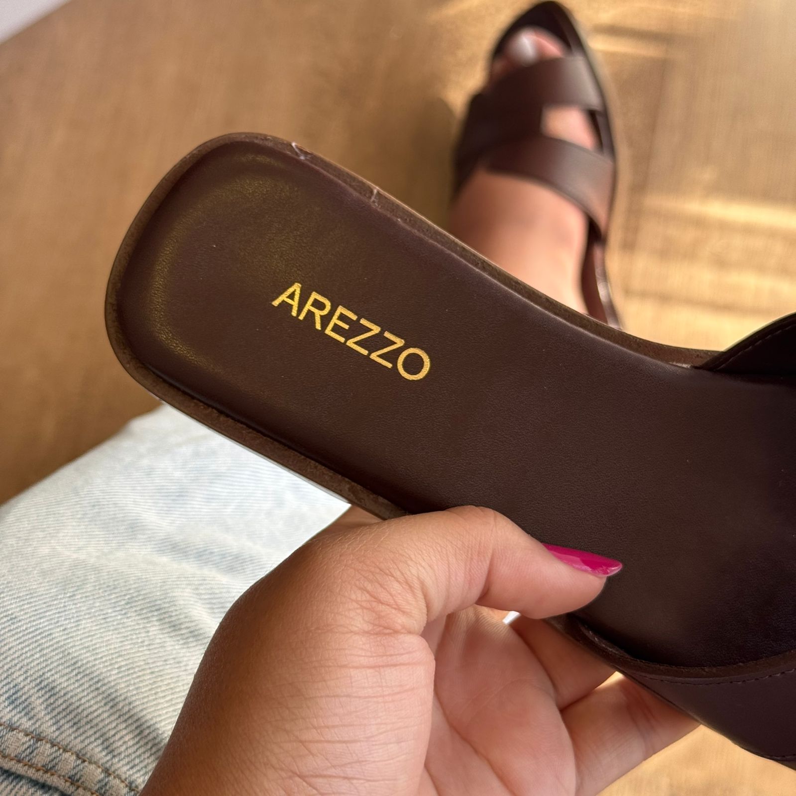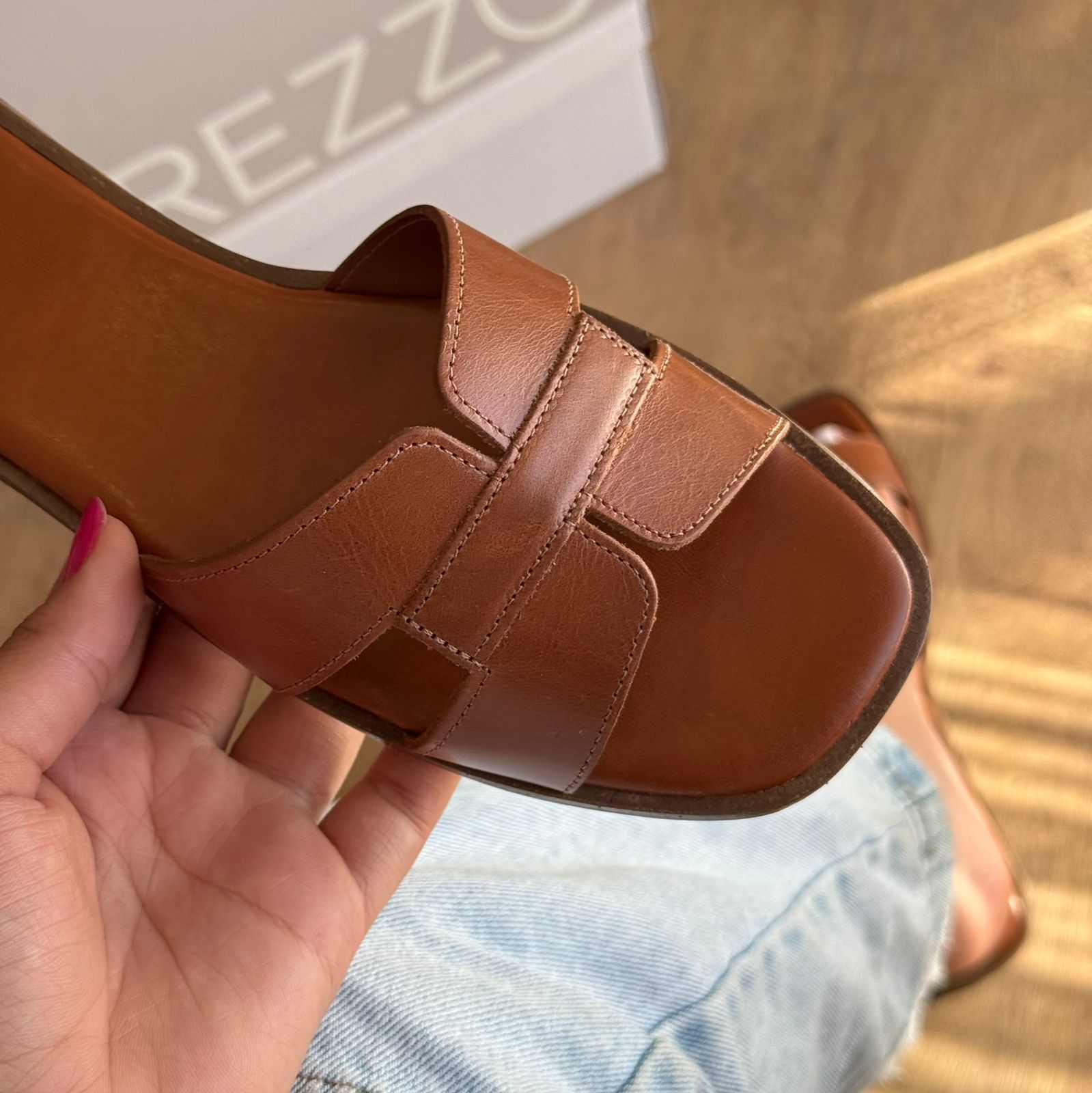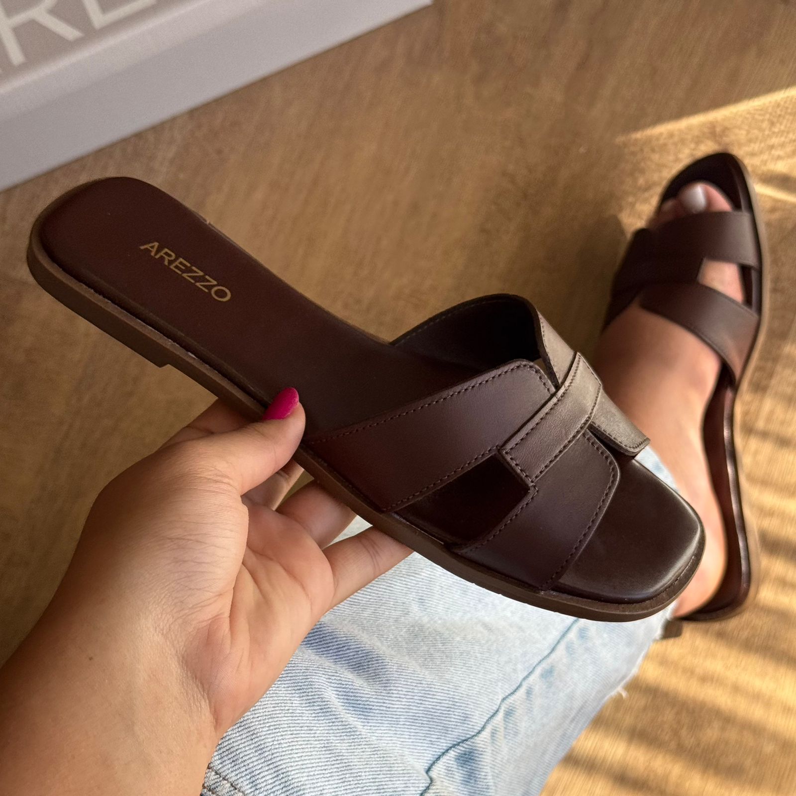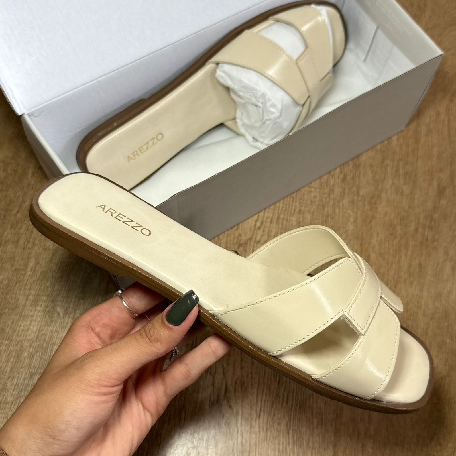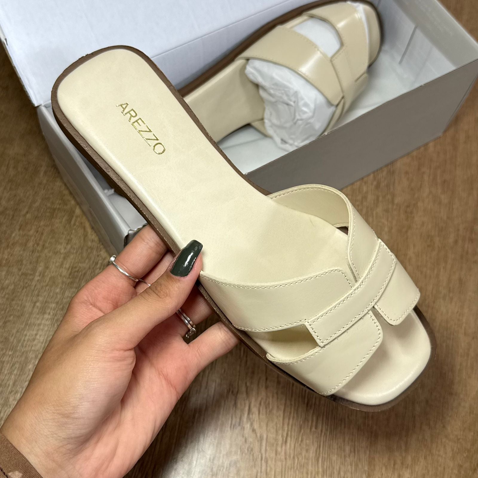 Rasteira Arezzo Couro Bico Quadrado Tiras A131570001