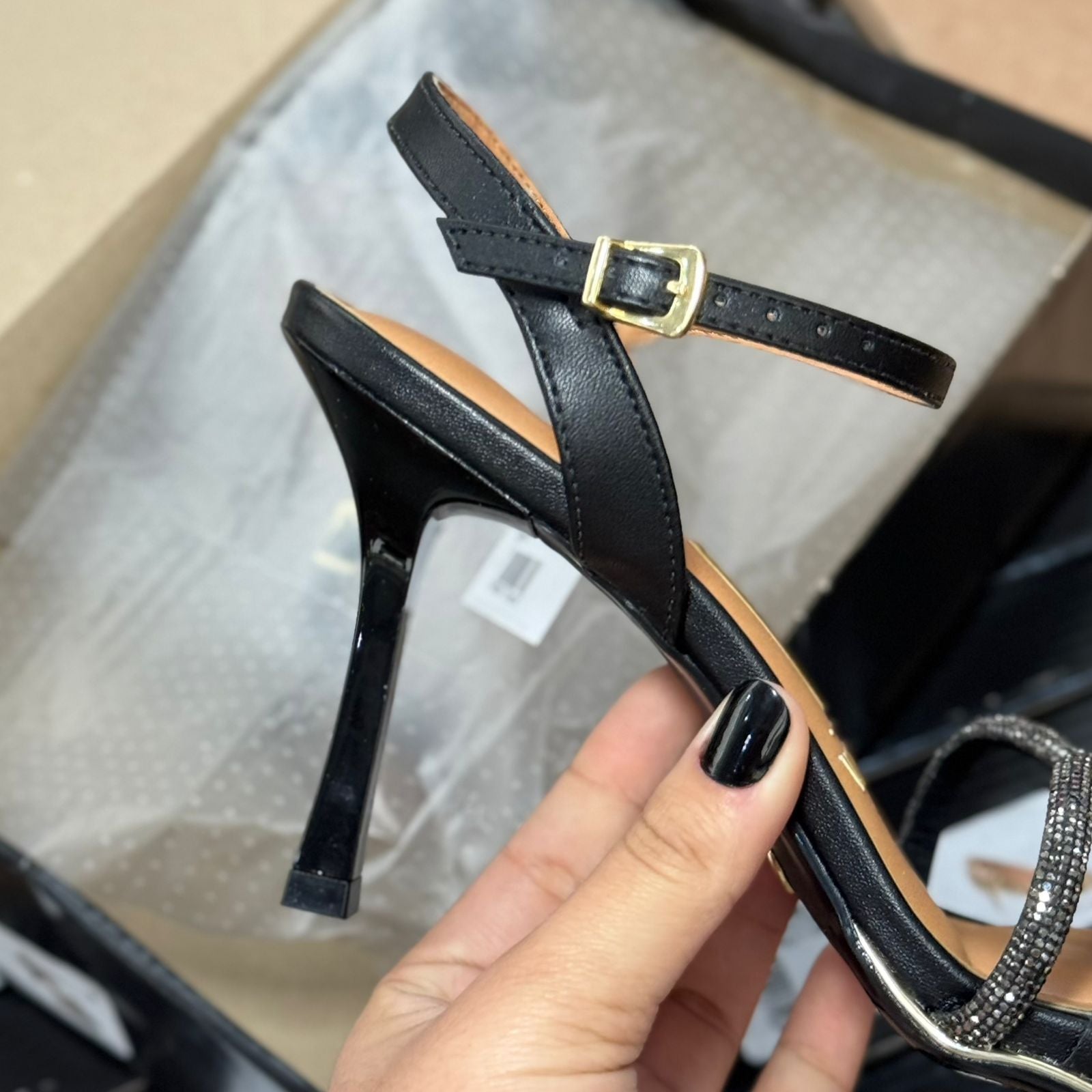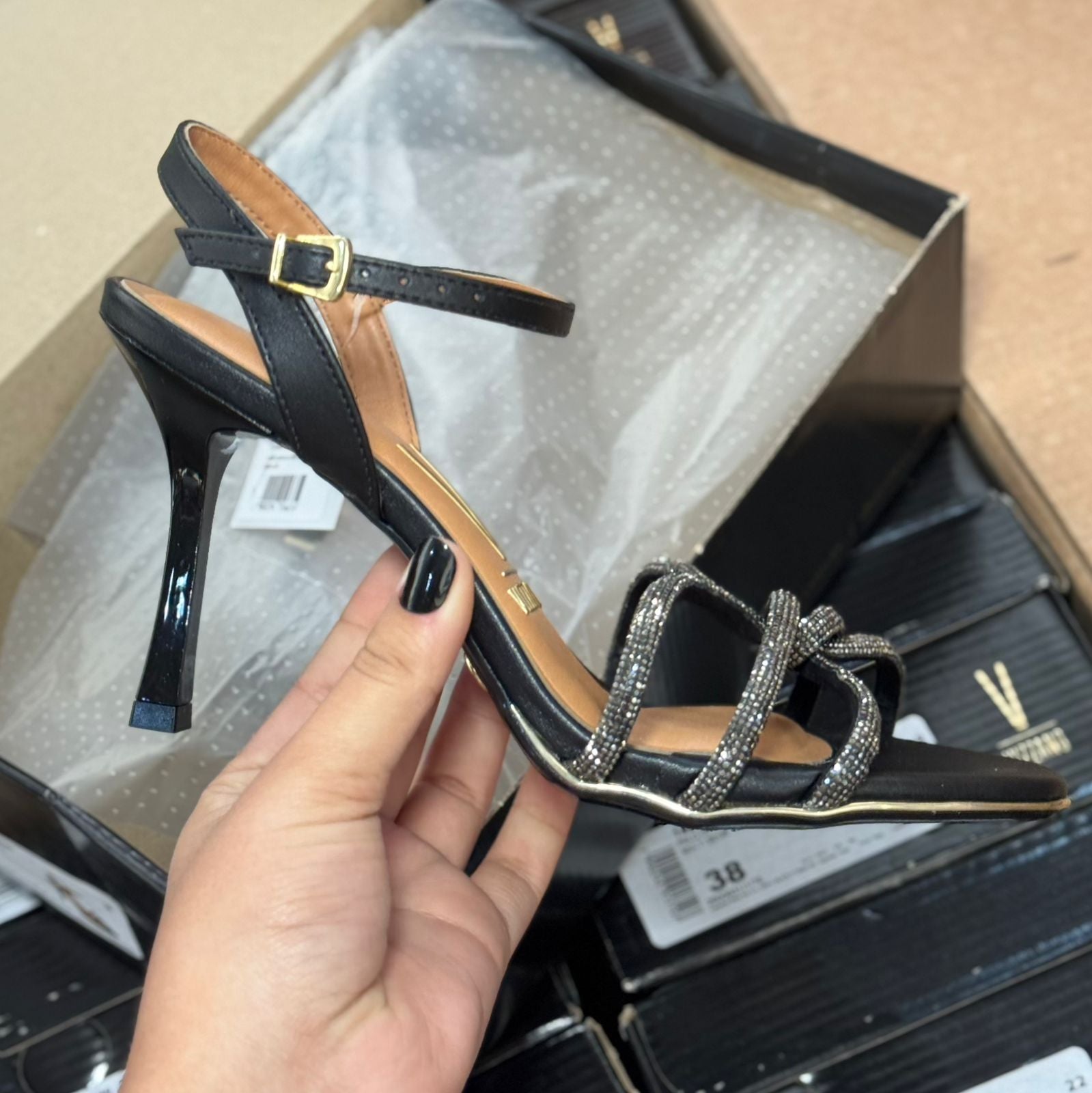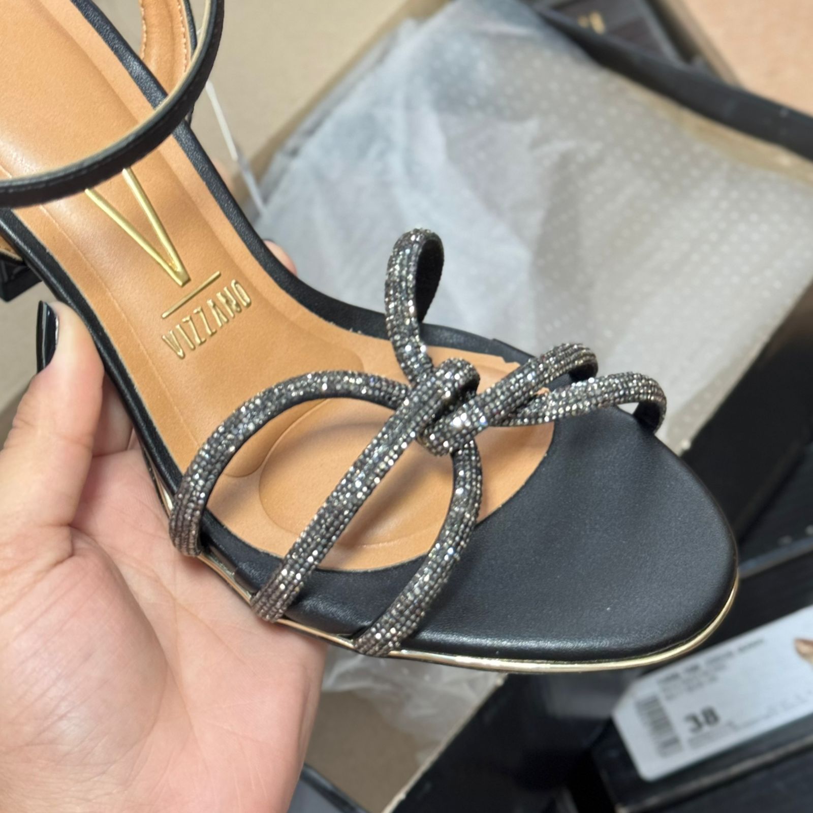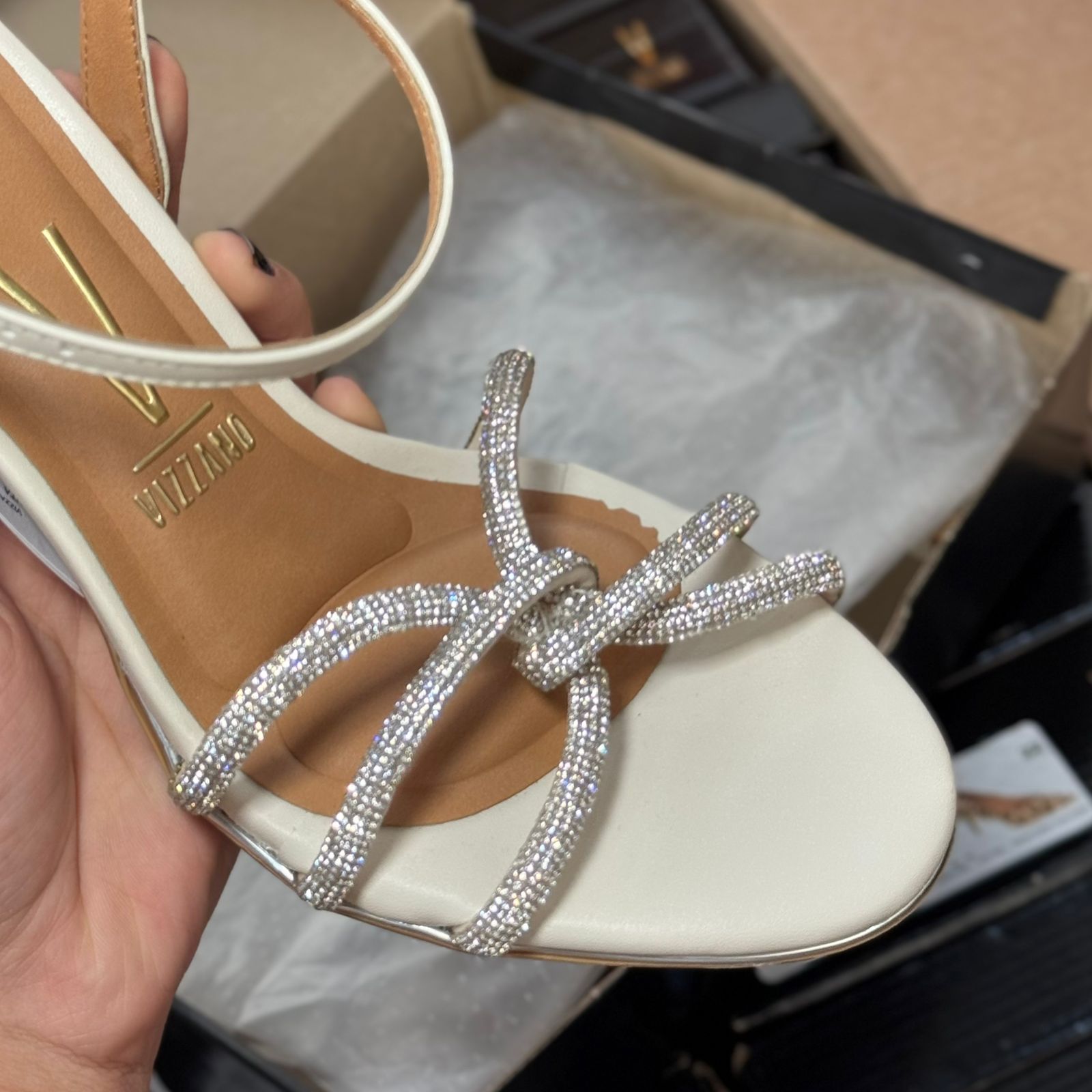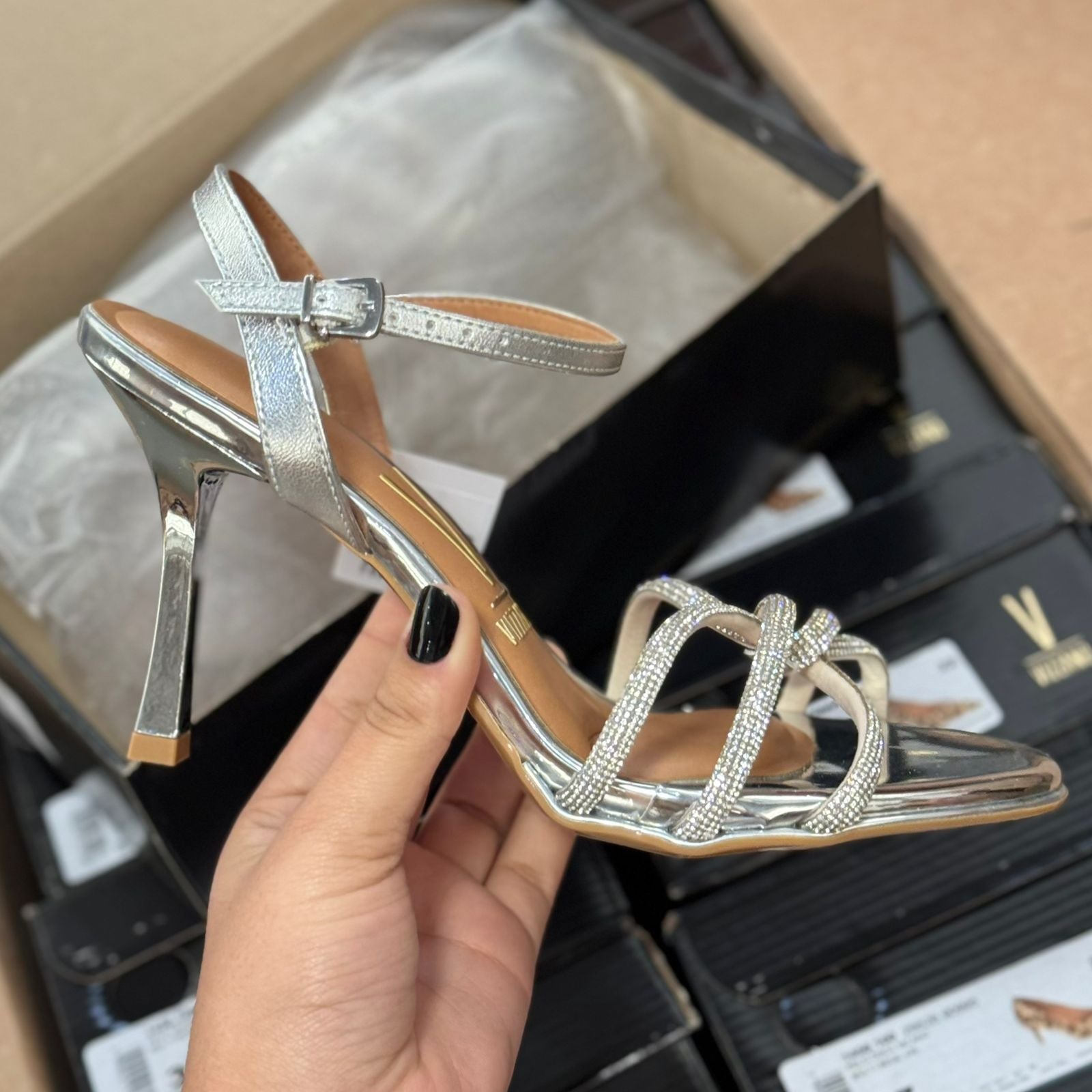 O Salto Vizzano Embaraço de Cristal 6552.103 combina elegância e sofisticação com seu design de salto fino e modelo slide aberto. Seus detalhes brilhantes, que imitam cristais, adicionam um toque luxuoso e refinado, perfeito para ocasiões especiais ou para quem busca um visual marcante. Além do estilo, proporciona conforto e segurança para passos firmes, unindo beleza e funcionalidade em um calçado versátil.