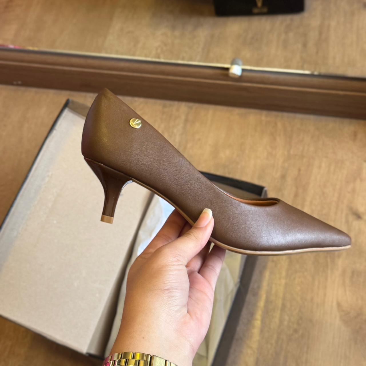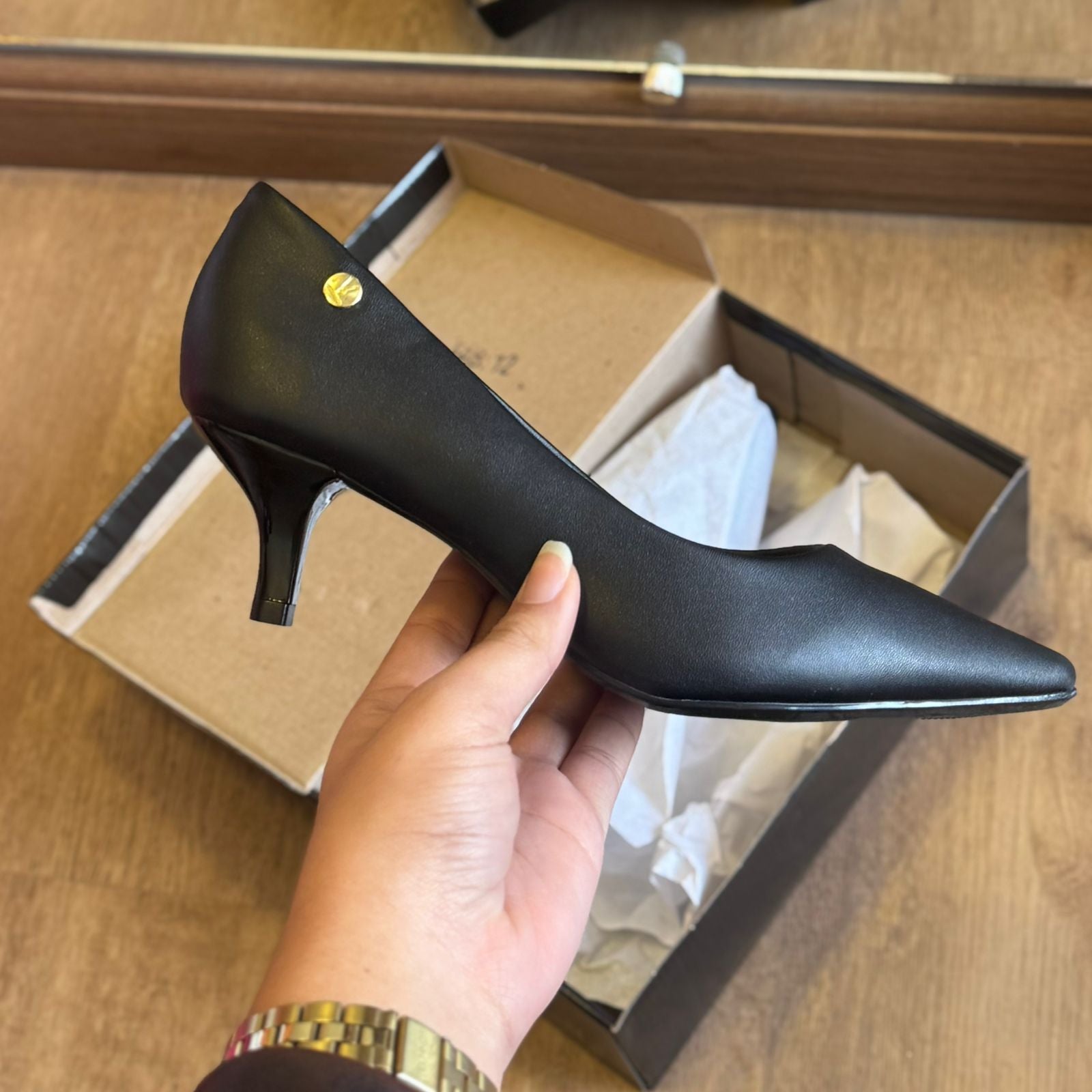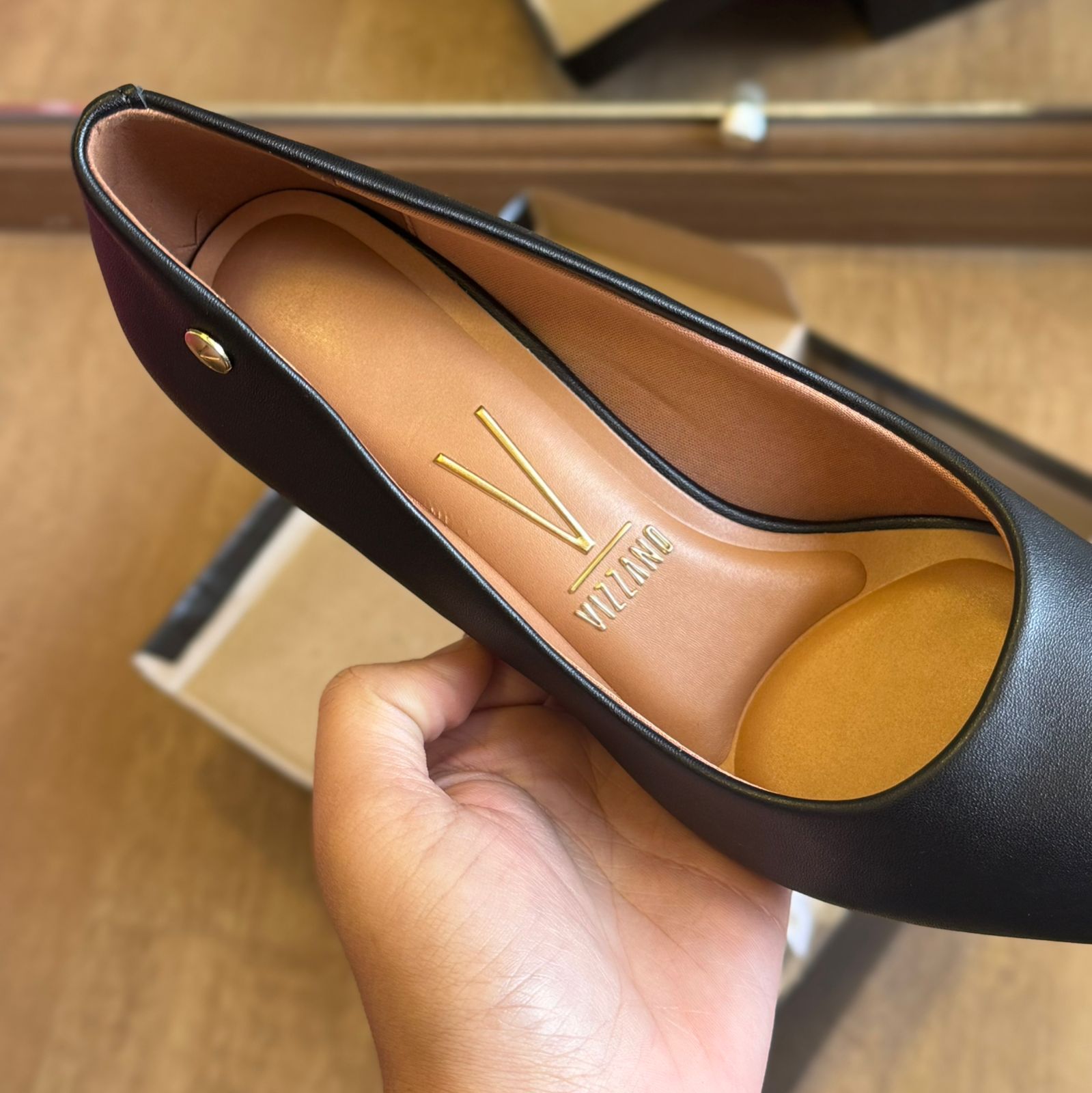 O Salto Vizzano Pontinho Baixo 1122.828 une conforto e elegância em um design clássico e versátil. Com bico fino e salto baixo tipo kitten heel, ele proporciona sofisticação sem abrir mão do bem-estar ao caminhar. O acabamento liso e o detalhe dourado discreto no calcanhar trazem charme e um toque refinado à peça. Ideal para o dia a dia no trabalho ou para composições mais delicadas em ocasiões especiais. Um coringa no guarda-roupa feminino!