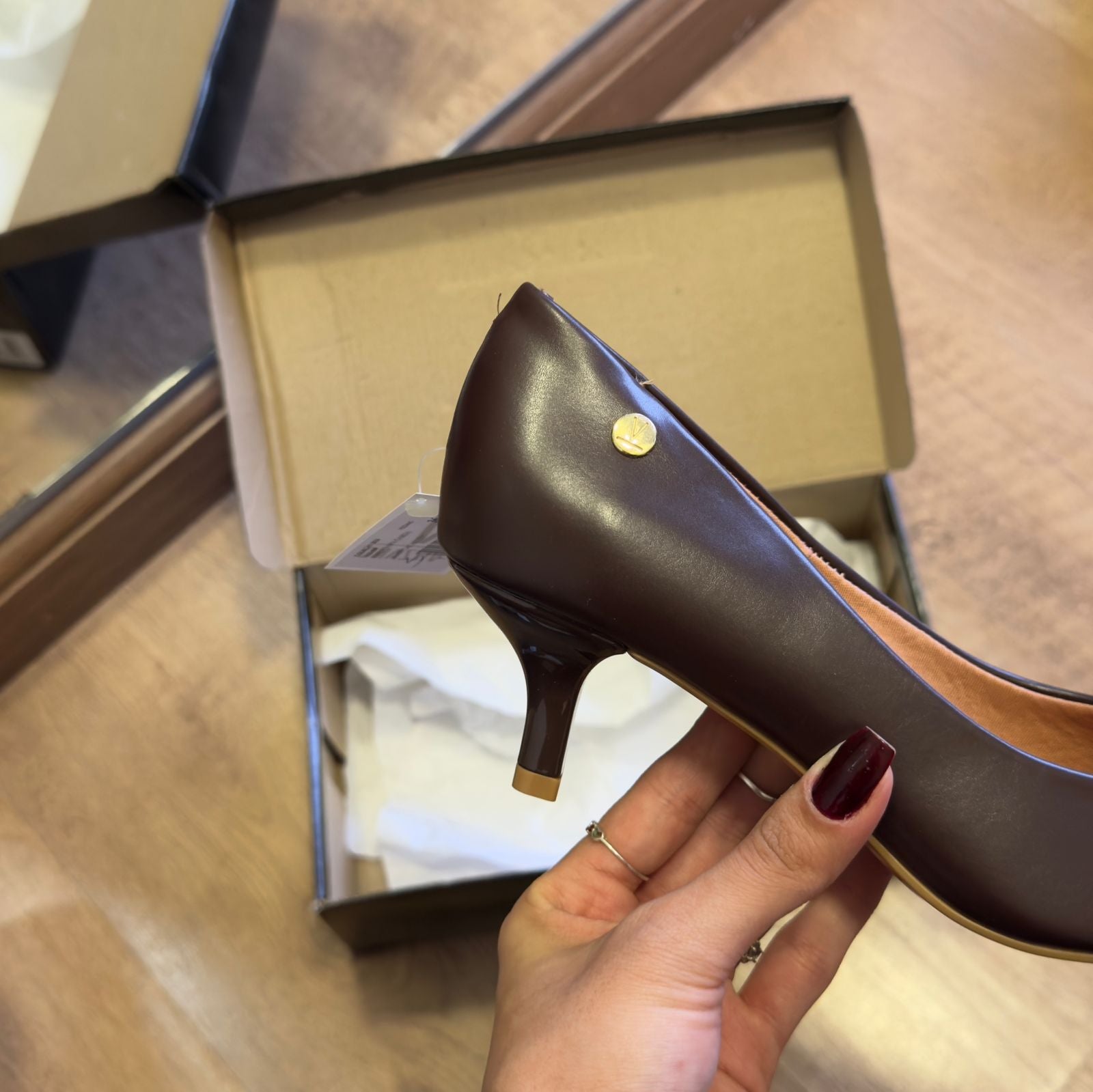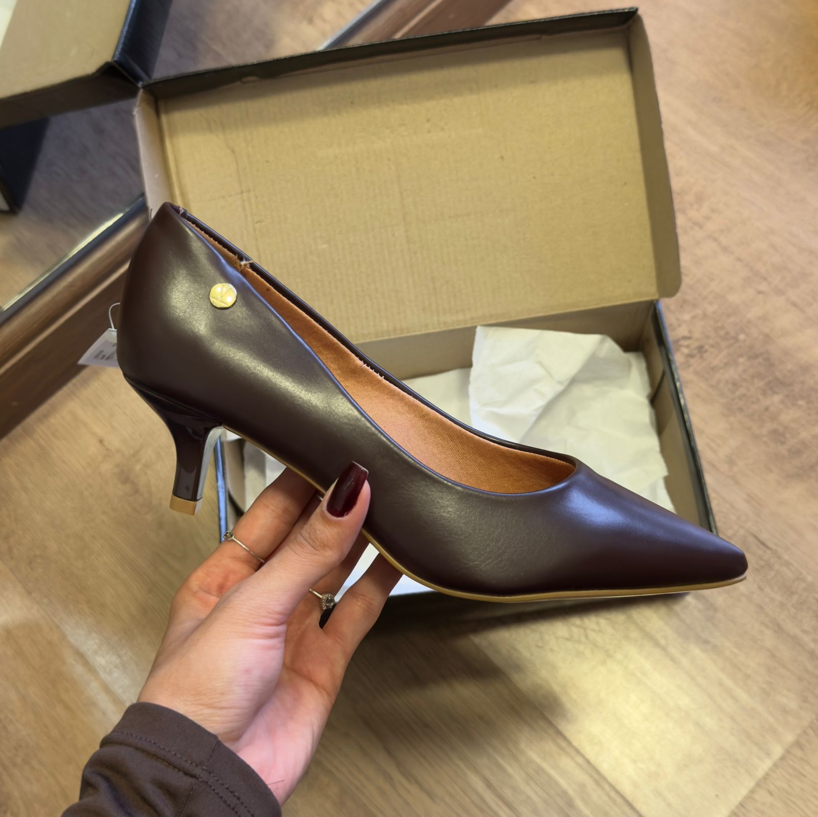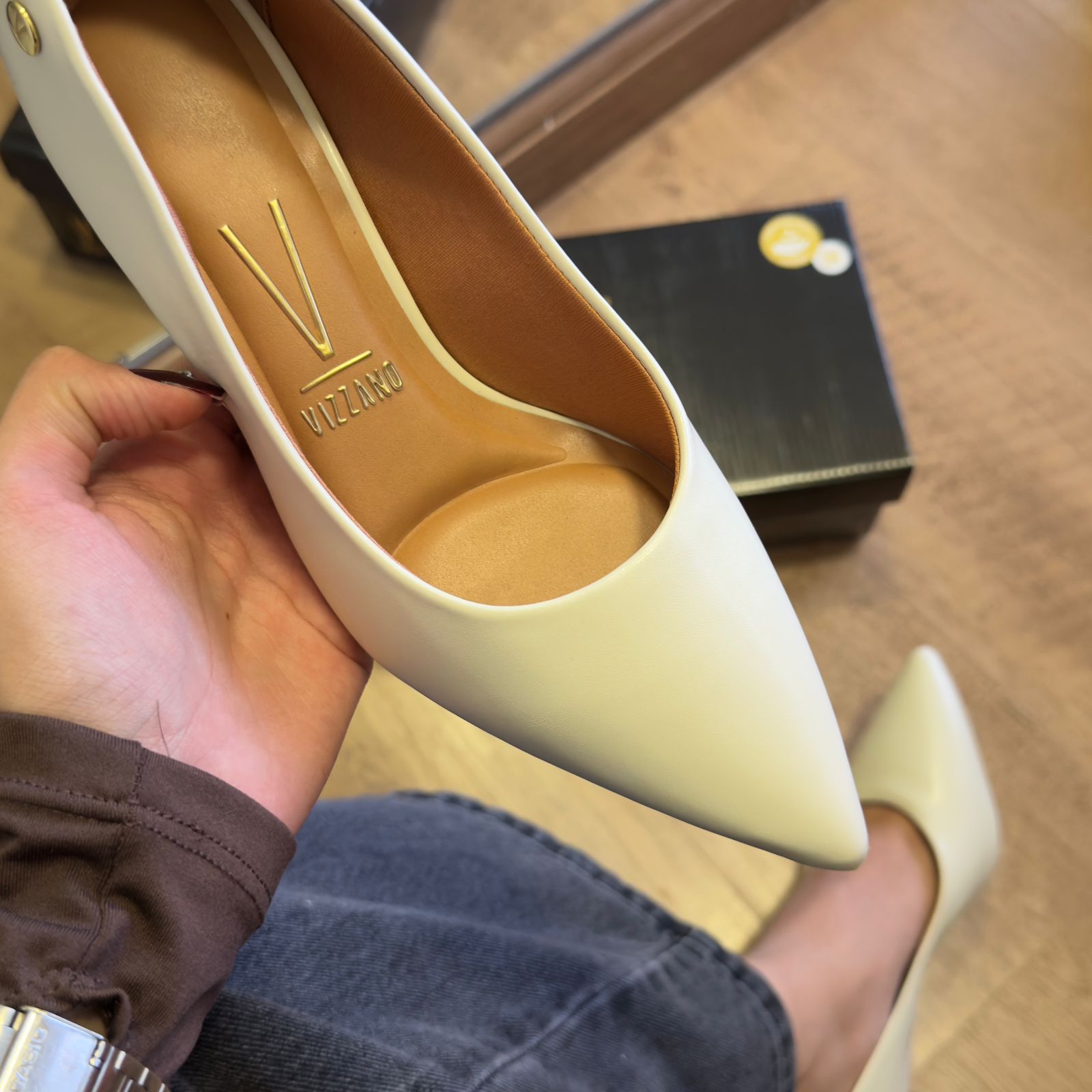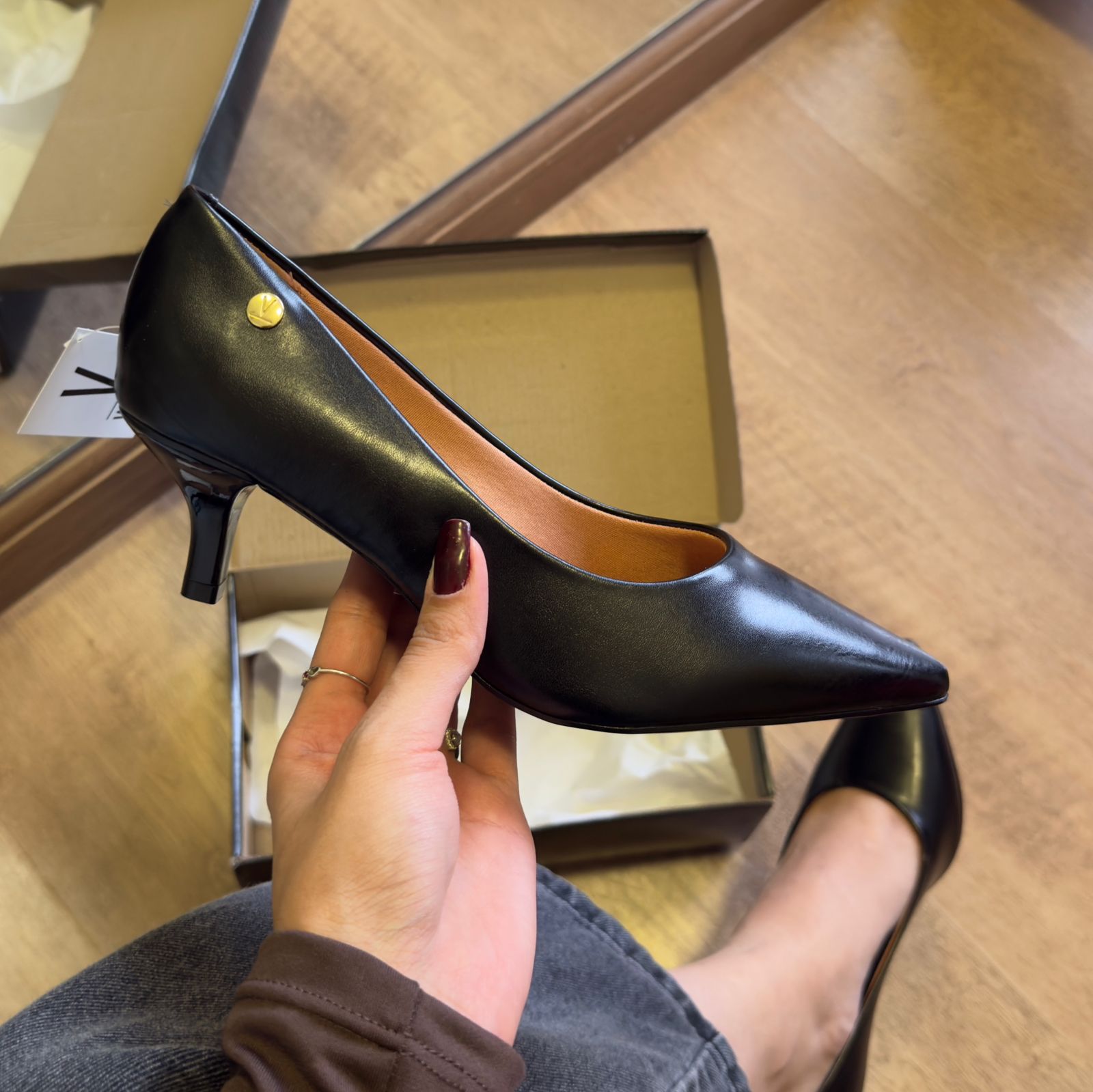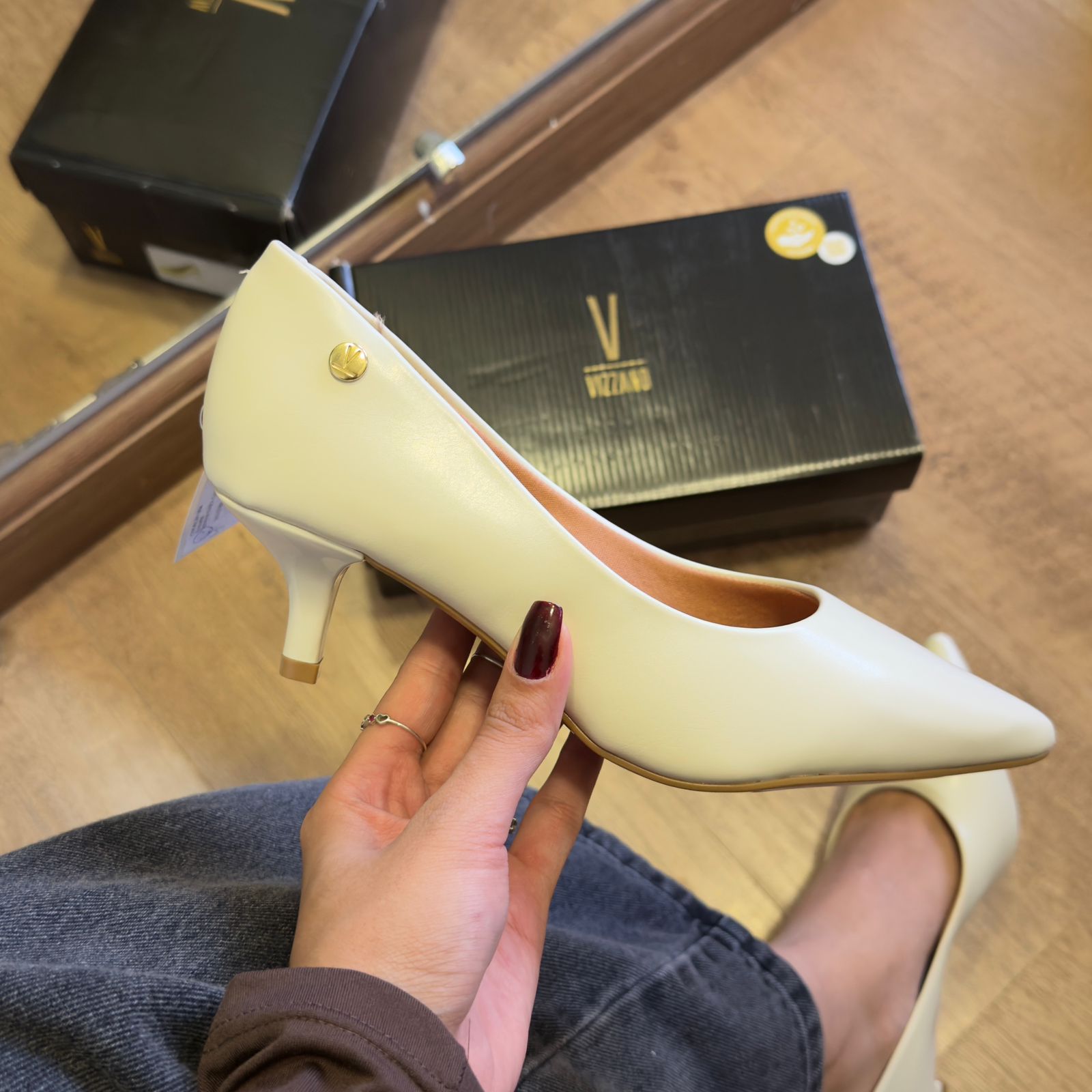 O Salto Vizzano Pontinho Baixo une conforto e elegância em um design clássico e versátil. Com bico fino e salto baixo tipo kitten heel, ele proporciona sofisticação sem abrir mão do bem-estar ao caminhar. O acabamento liso e o detalhe dourado discreto no calcanhar trazem charme e um toque refinado à peça. Ideal para o dia a dia no trabalho ou para composições mais delicadas em ocasiões especiais. Um coringa no guarda-roupa feminino!
