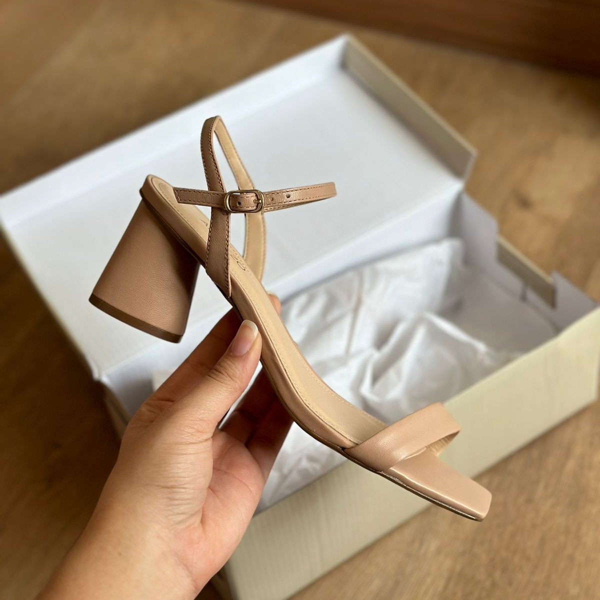 A sandália bloco já é um clássico e surge renovada com modelagem geométrica no salto. Minimalista, compõe tanto produções mais sóbrias como também looks despojados, e vai do escritório ao passeio com muito conforto. O modelo vem em tom neutro, trazendo ainda mais versatilidade.