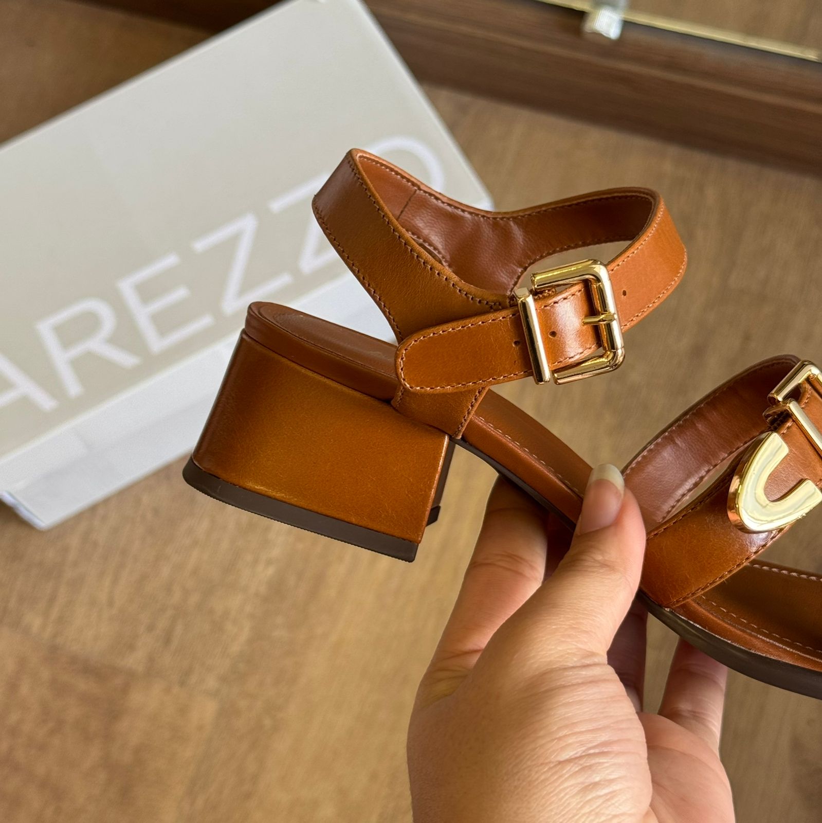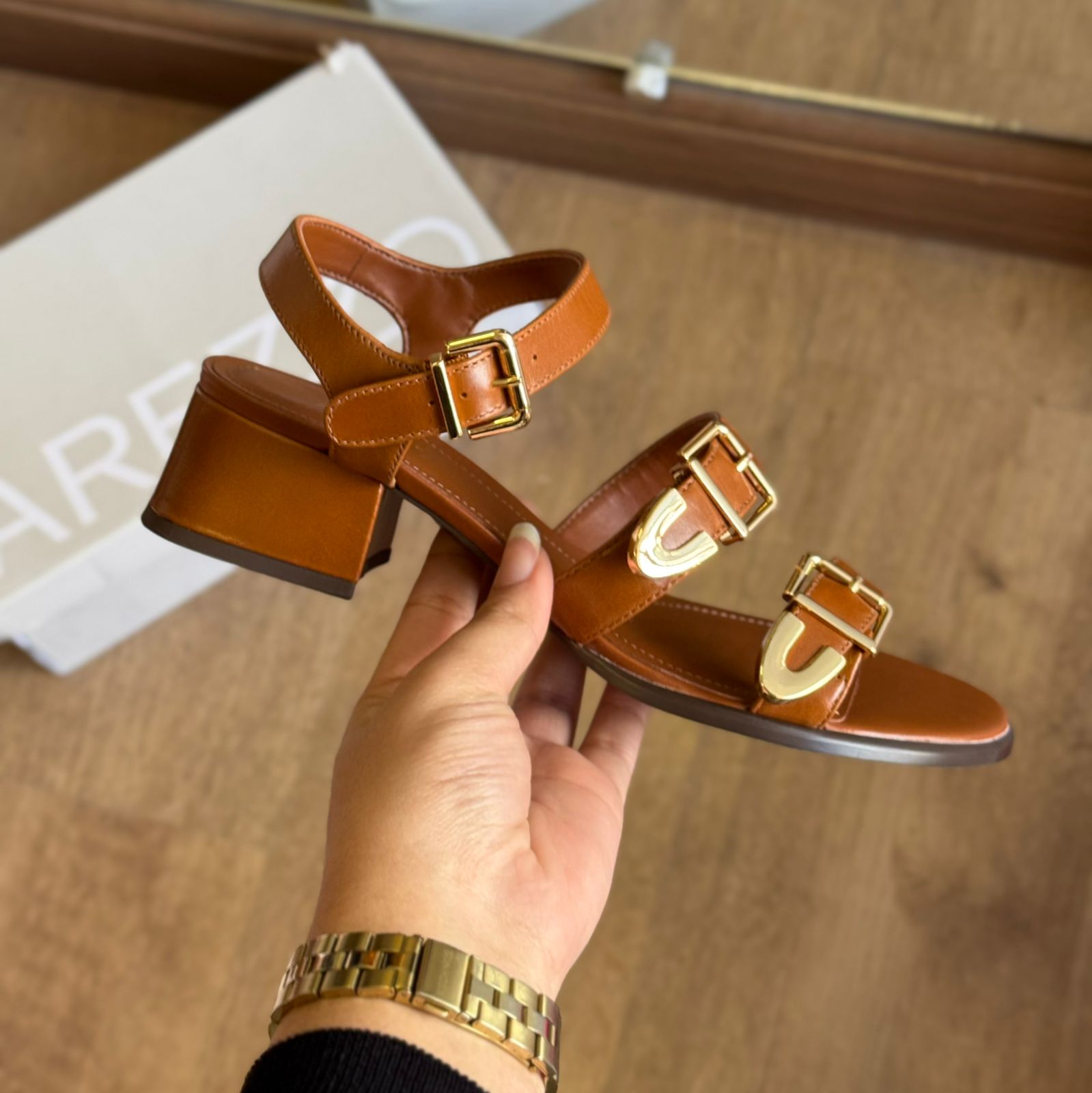 Salto Arezzo Couro Bloco Tiras Fivelas A136660002