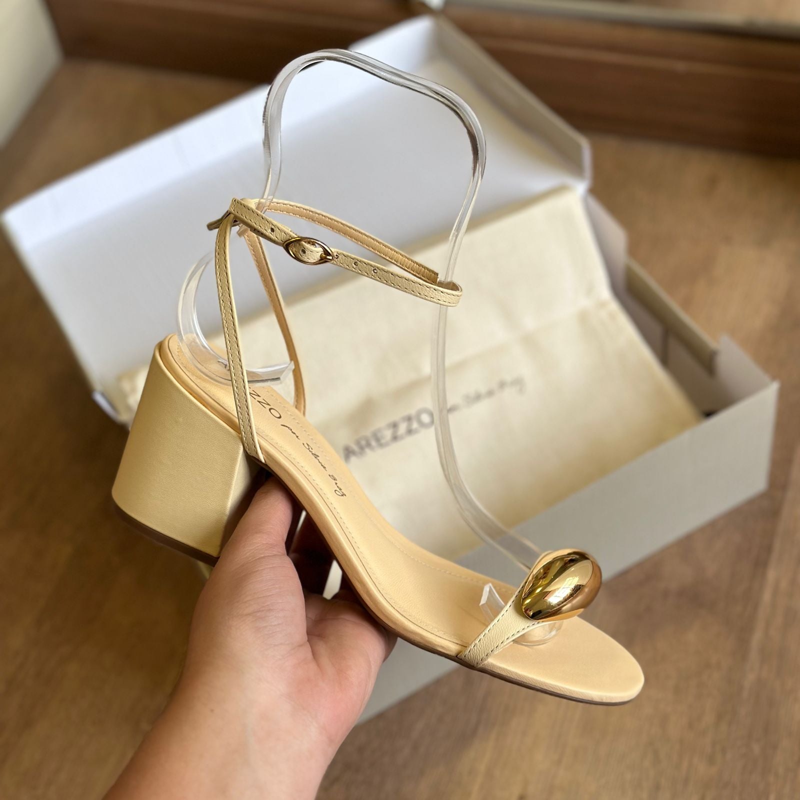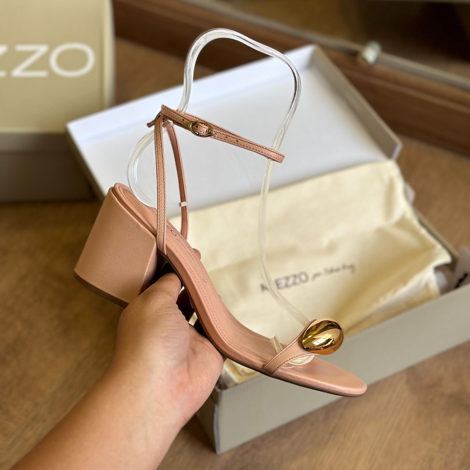 A sandália possui um design minimalista e vem com metal imponente, expressando a tendência dos bold accessories da temporada. Cria looks elegantes e insere sofisticação nas produções. O sapato é parte da collab com a influenciadora Silvia Braz.
