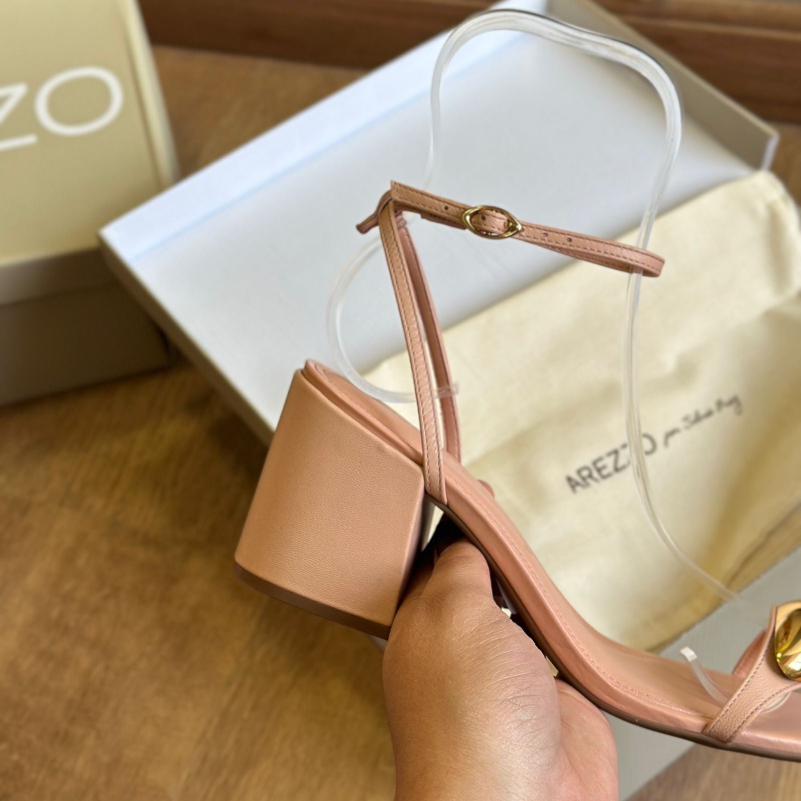 Sandália Arezzo Couro Salto Bloco Metal Silvia Braz A124630030