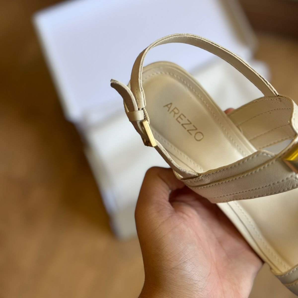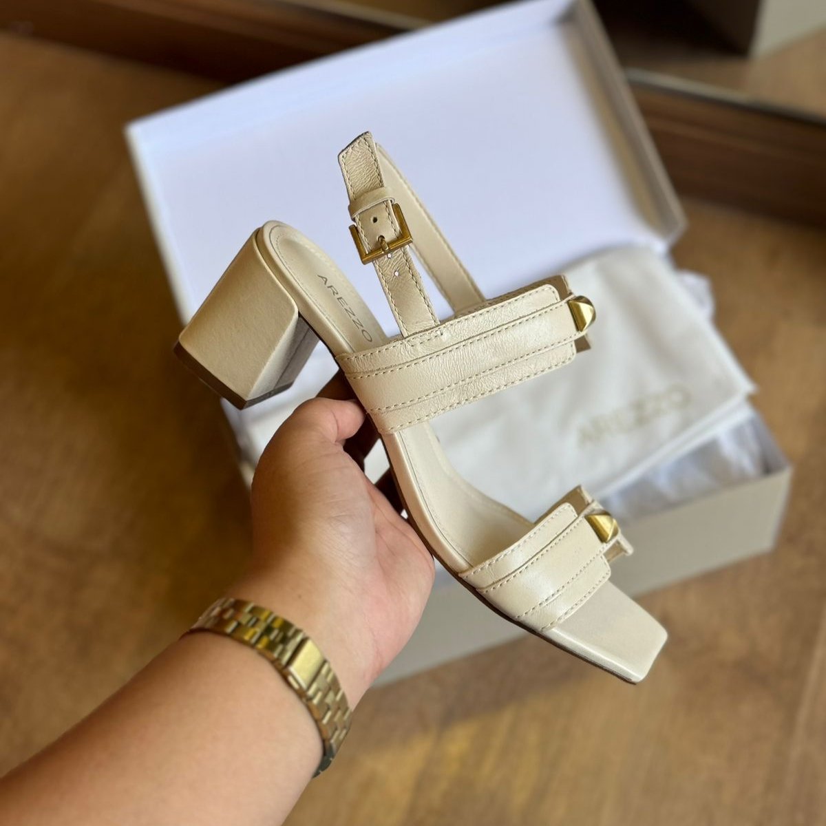 Sandália Arezzo Couro Salto Bloco Tiras Tachas A134360019