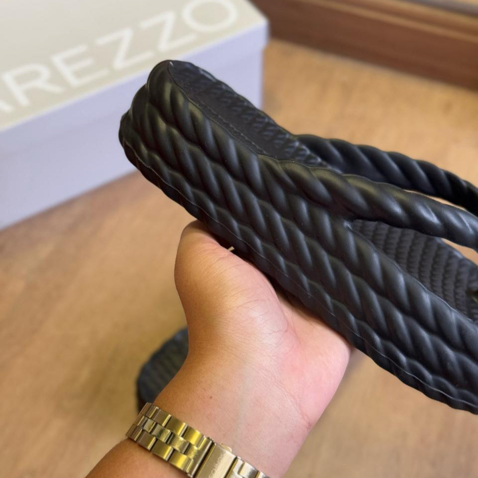 Descolada, a sandália traz relevo inspirado em tiras de cordão com efeito torcido e garante estilo e conforto para suas produções. A opção ideal para quem busca um toque trendy para seus looks!