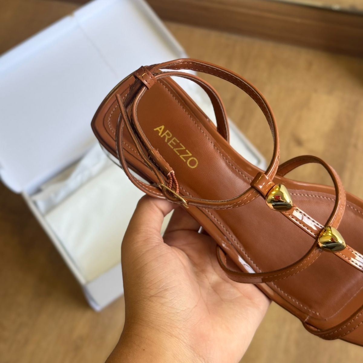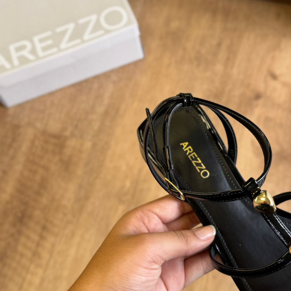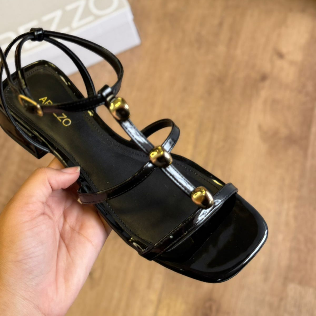 Sandália Arezzo Salto Bloco Tiras Metais A137730001