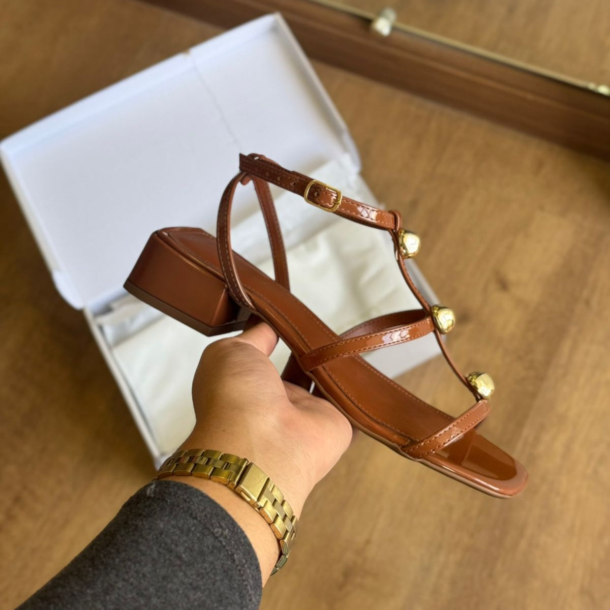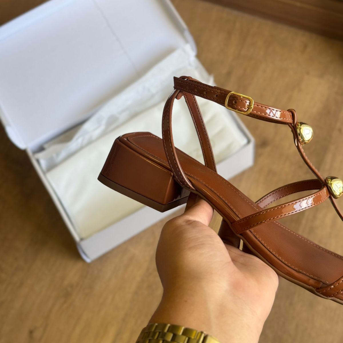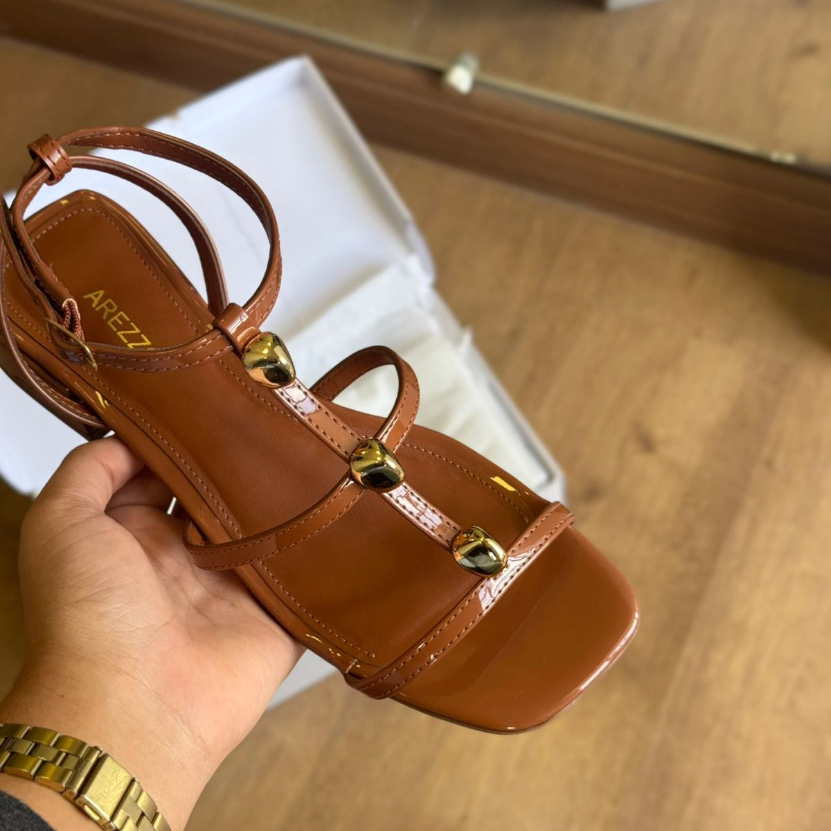Sandália Arezzo Salto Bloco Tiras Metais A137730001