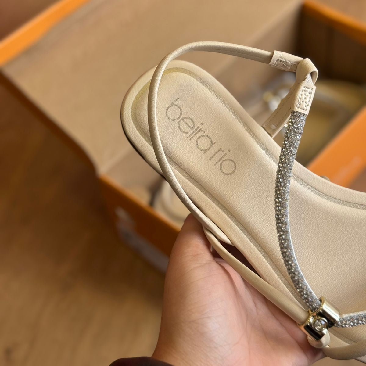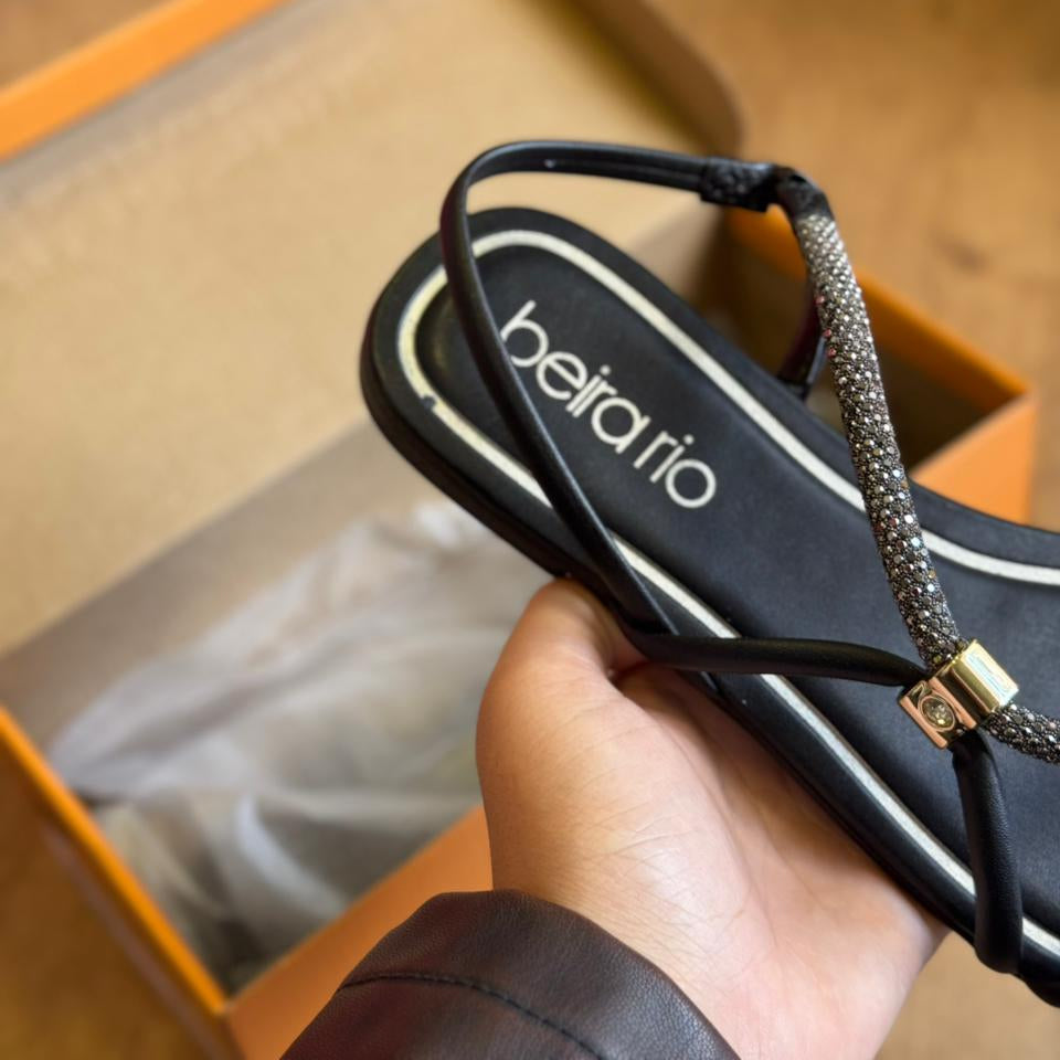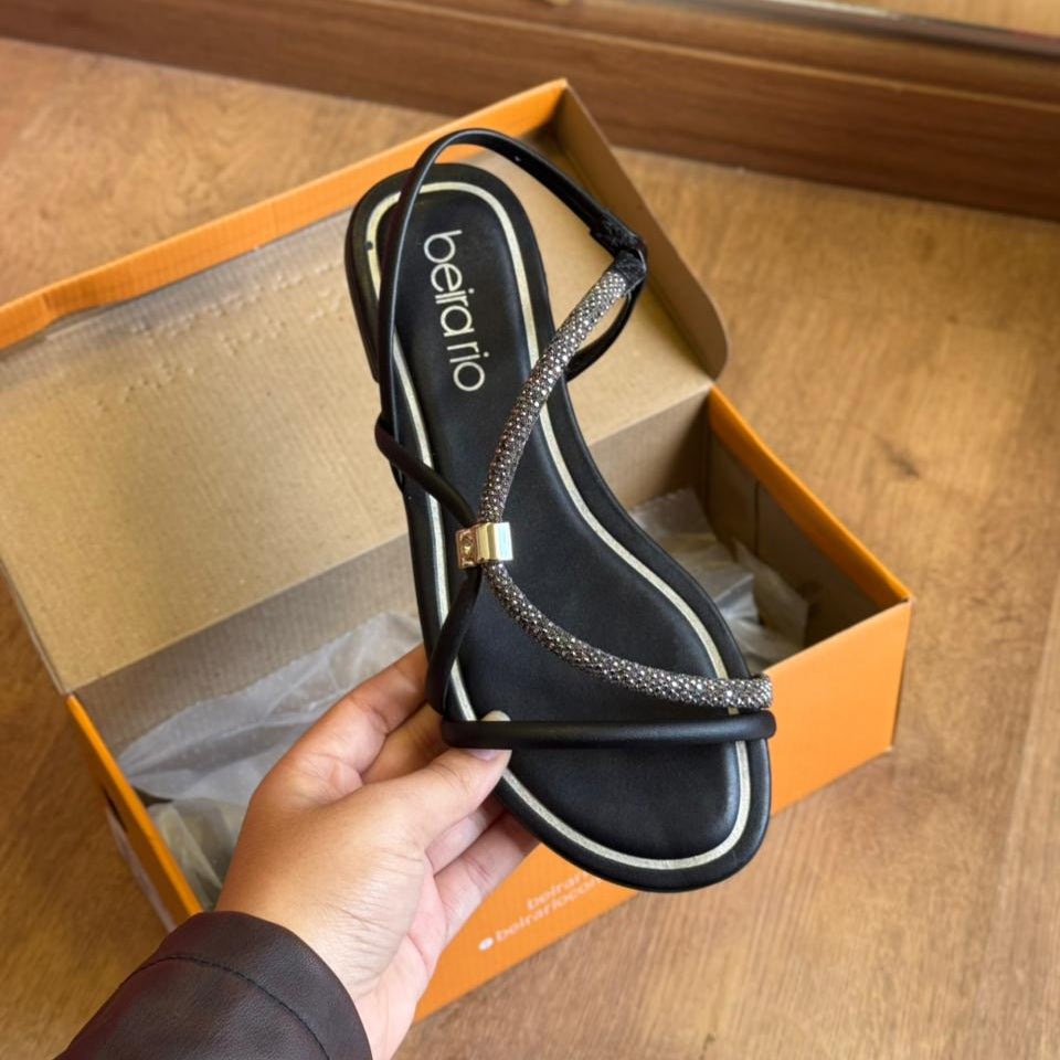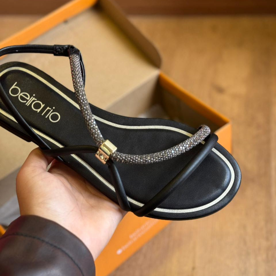 Sandália Beira Rio Rasteira com Tira Strass 8552.103