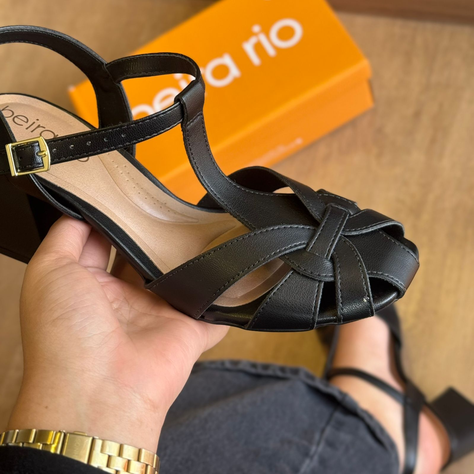 Sandália Beira Rio Salto Bloco Tiras Entrelaçadas 8436.242