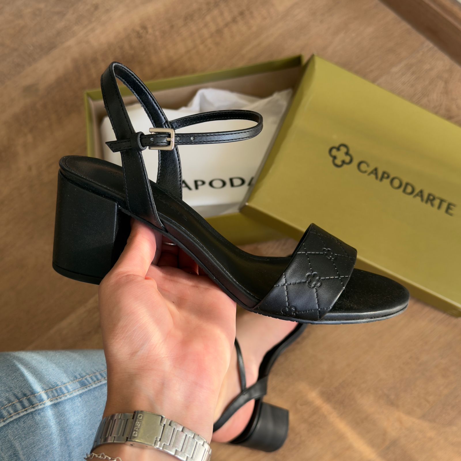 Sandália Capodarte com salto bloco baixo que combina conforto e elegância para o dia a dia. O design clássico da marca oferece suporte firme e estabilidade, ideal para quem busca um calçado versátil que transita entre ambientes casual e profissionais. Construída com materiais de qualidade, garante durabilidade e acabamento refinado. Perfeita para compor looks sofisticados sem abrir mão da praticidade.