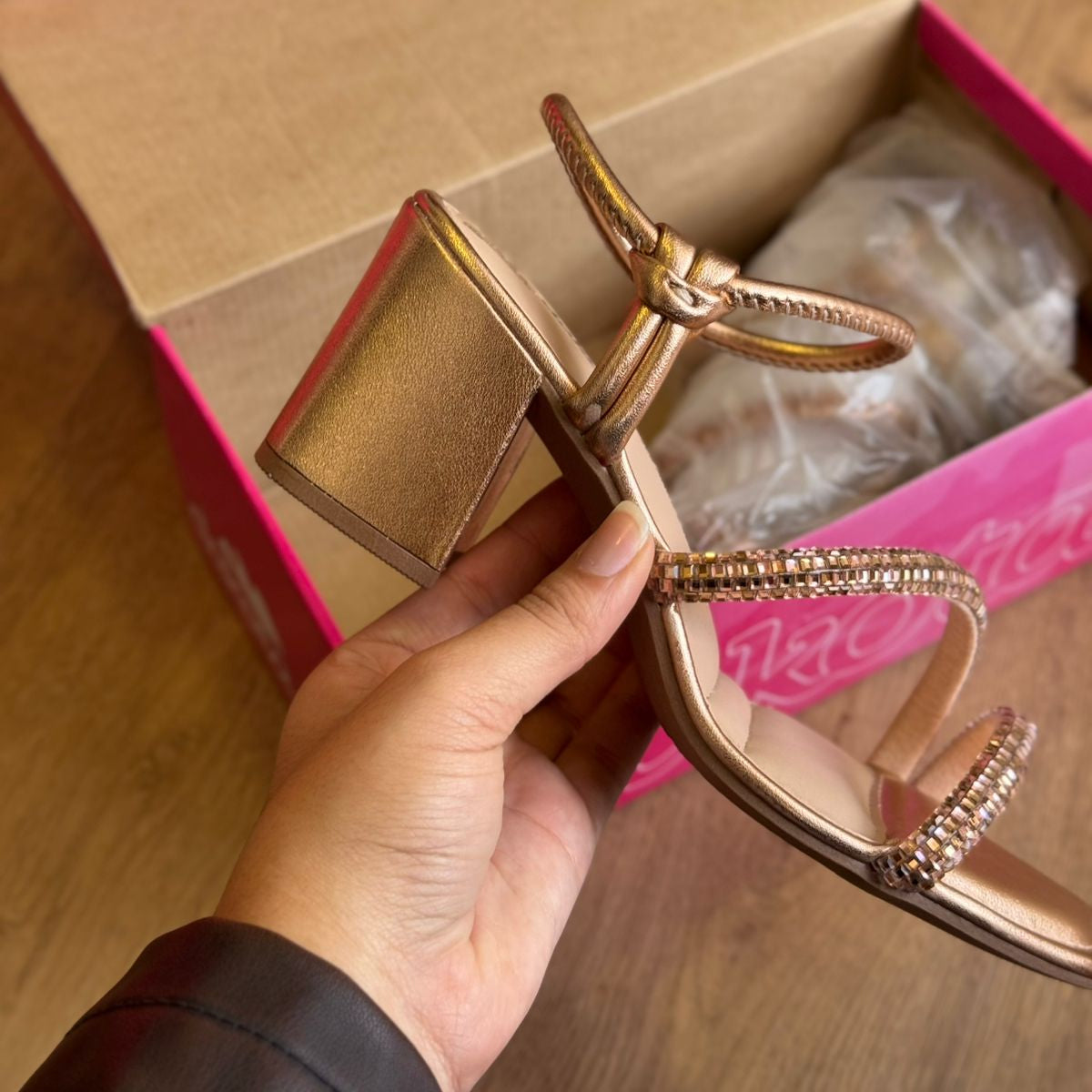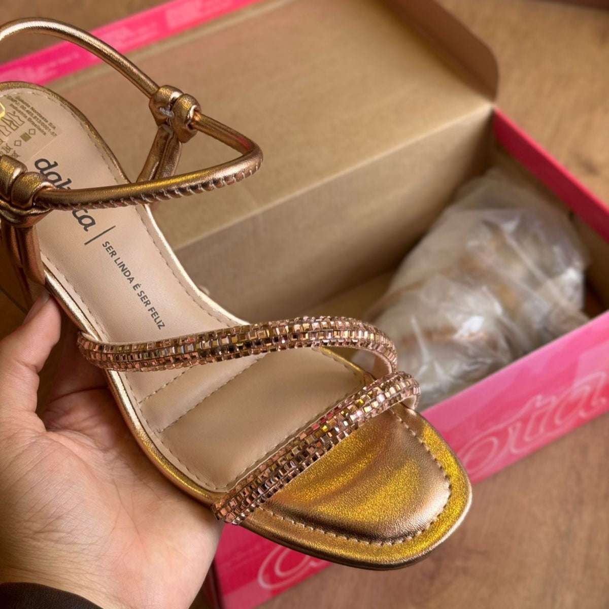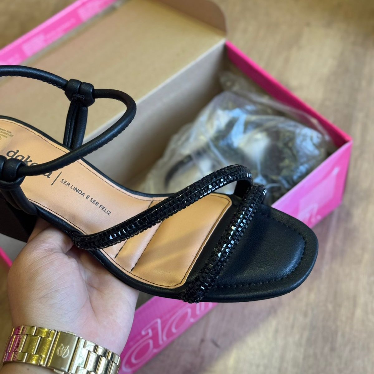 A Sandália Dakota de Salto Bloco é uma escolha elegante e glamorosa para diversas ocasiões. Com um salto bloco alto de 6.50 cm, essa sandália oferece um toque de sofisticação e feminilidade ao seu visual. As tiras finas com brilhos na parte frontal proporcionam um charme especial, garantindo glamour às suas produções e tornando-a perfeita para momentos especiais.