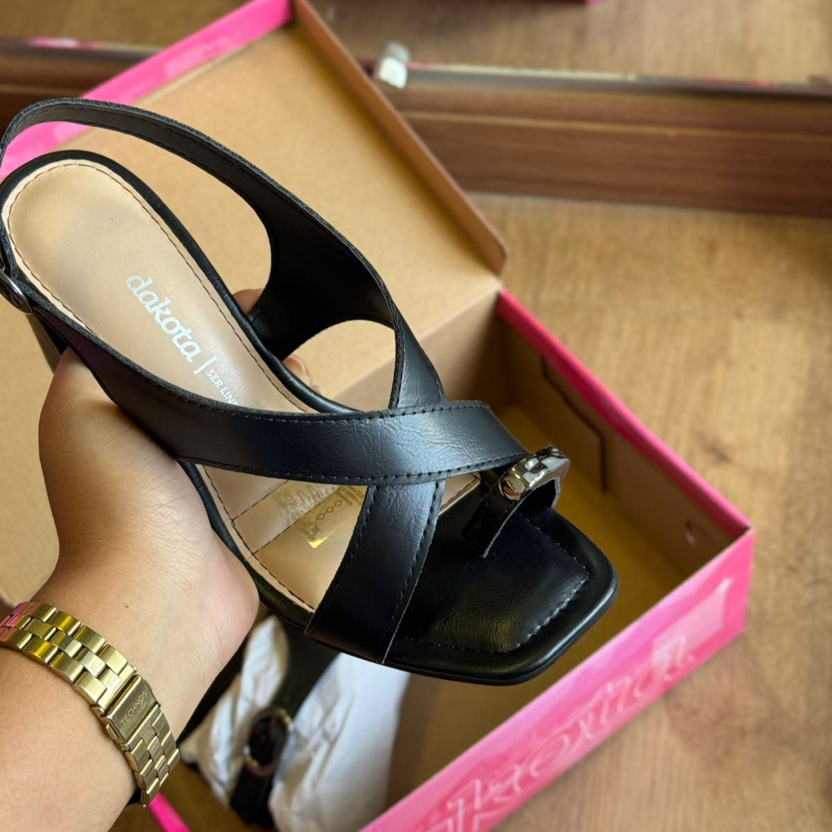 Sandália Dakota Salto Bloco Detalhe Dourado no Dedo Y9152