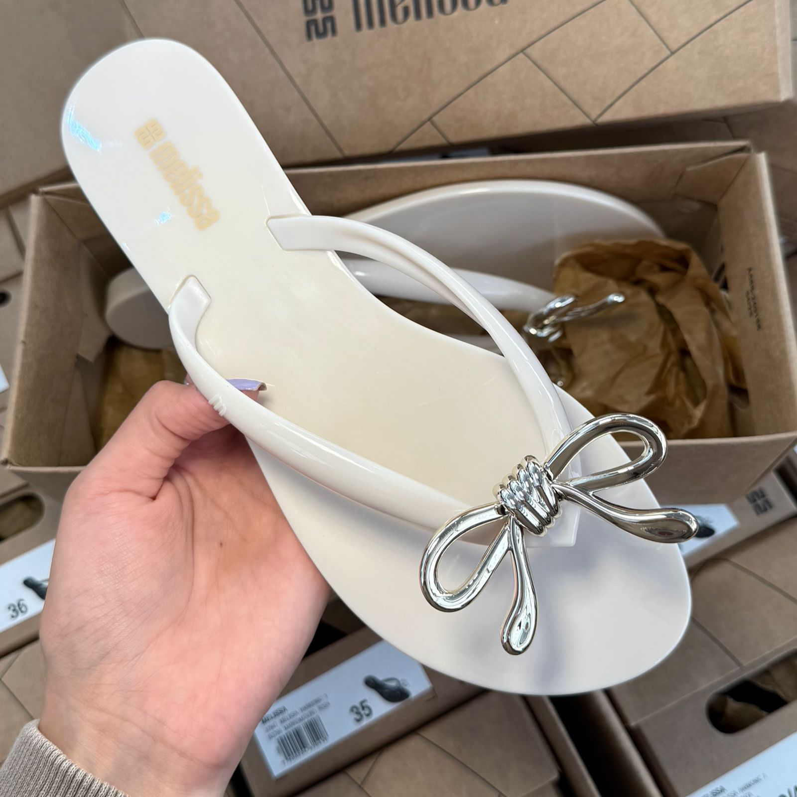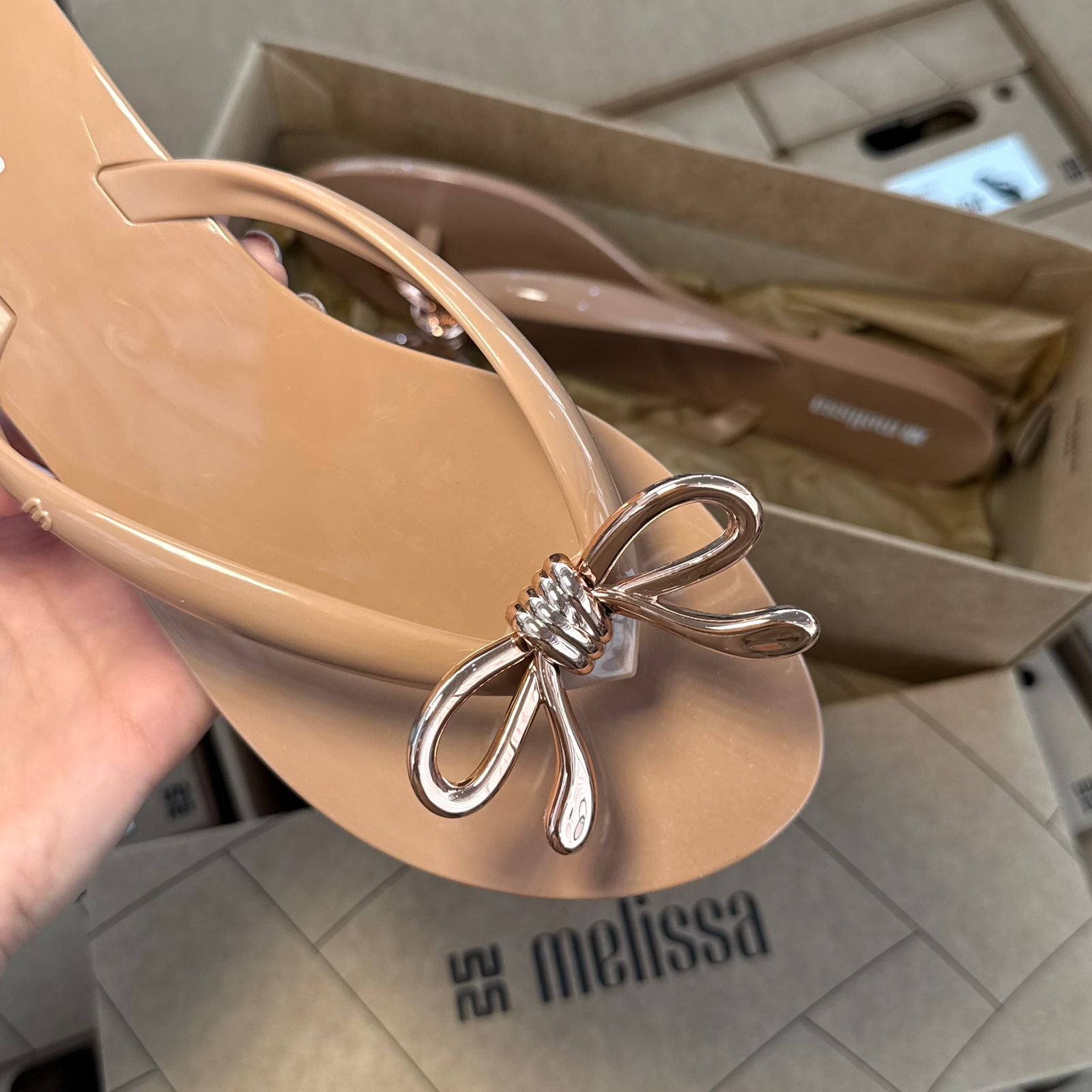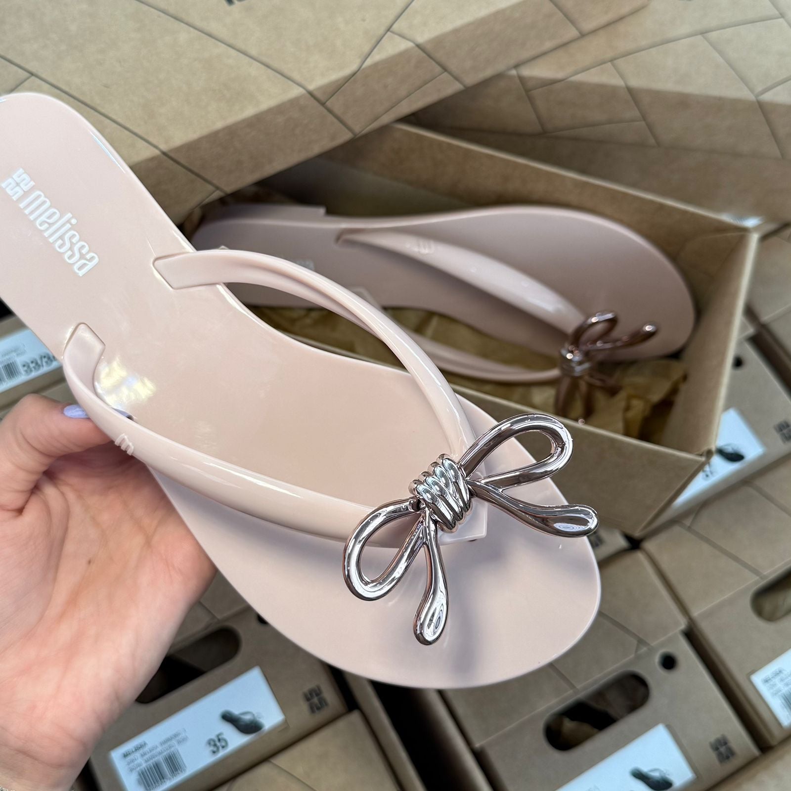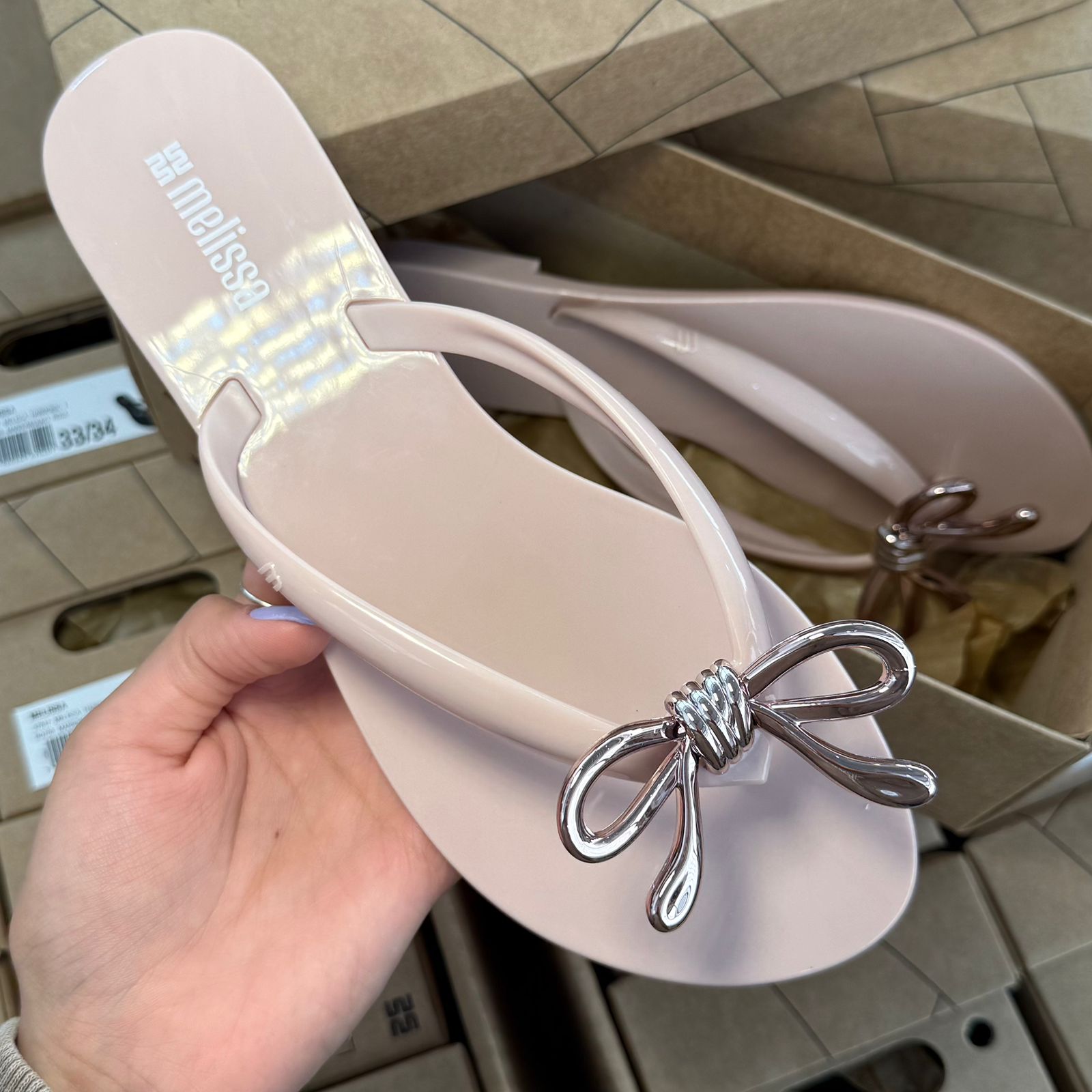 Conforto e estilo se encontram na Melissa Harmonic Iris, um chinelo feminino feito em Melflex®, material flexível que envolve os pés com maciez e resistência. Seu design moderno ganha destaque com um delicado laço metálicos no cabedal, trazendo um toque sofisticado para o visual casual.