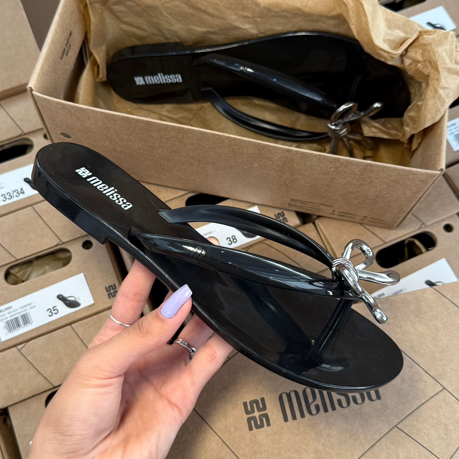 Renove seu estilo casual com a Melissa Harmonic Iris, o chinelo feminino que combina conforto e personalidade em cada passo.