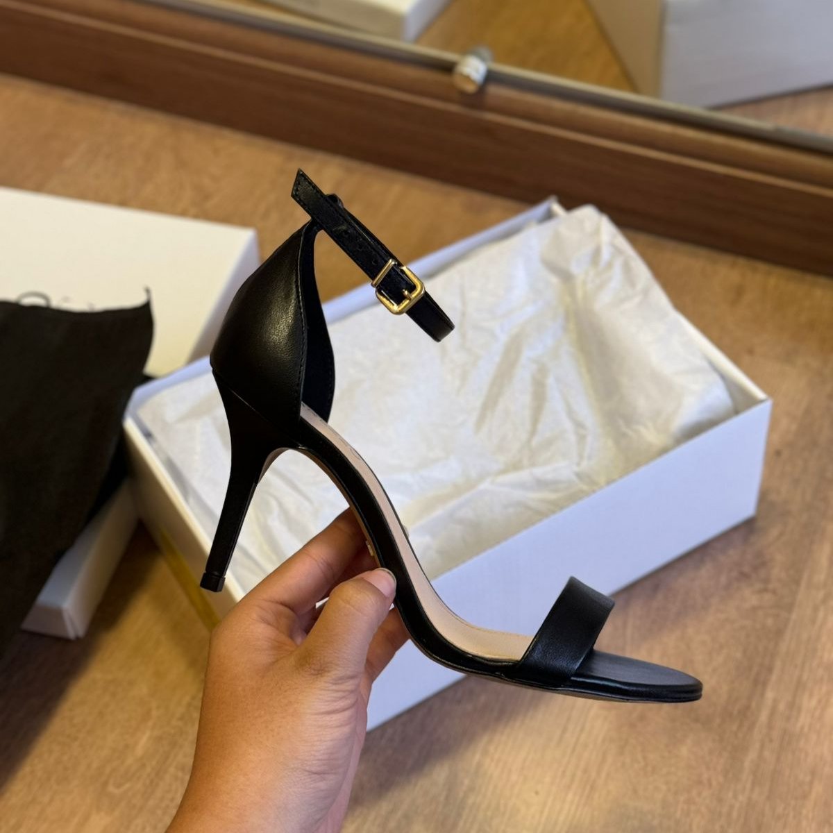 Com tira única sobre os dedos, salto médio confortável e elegante, e fechamento no tornozelo, a clássica sandália fica ainda mais charmosa na sua versão preta.