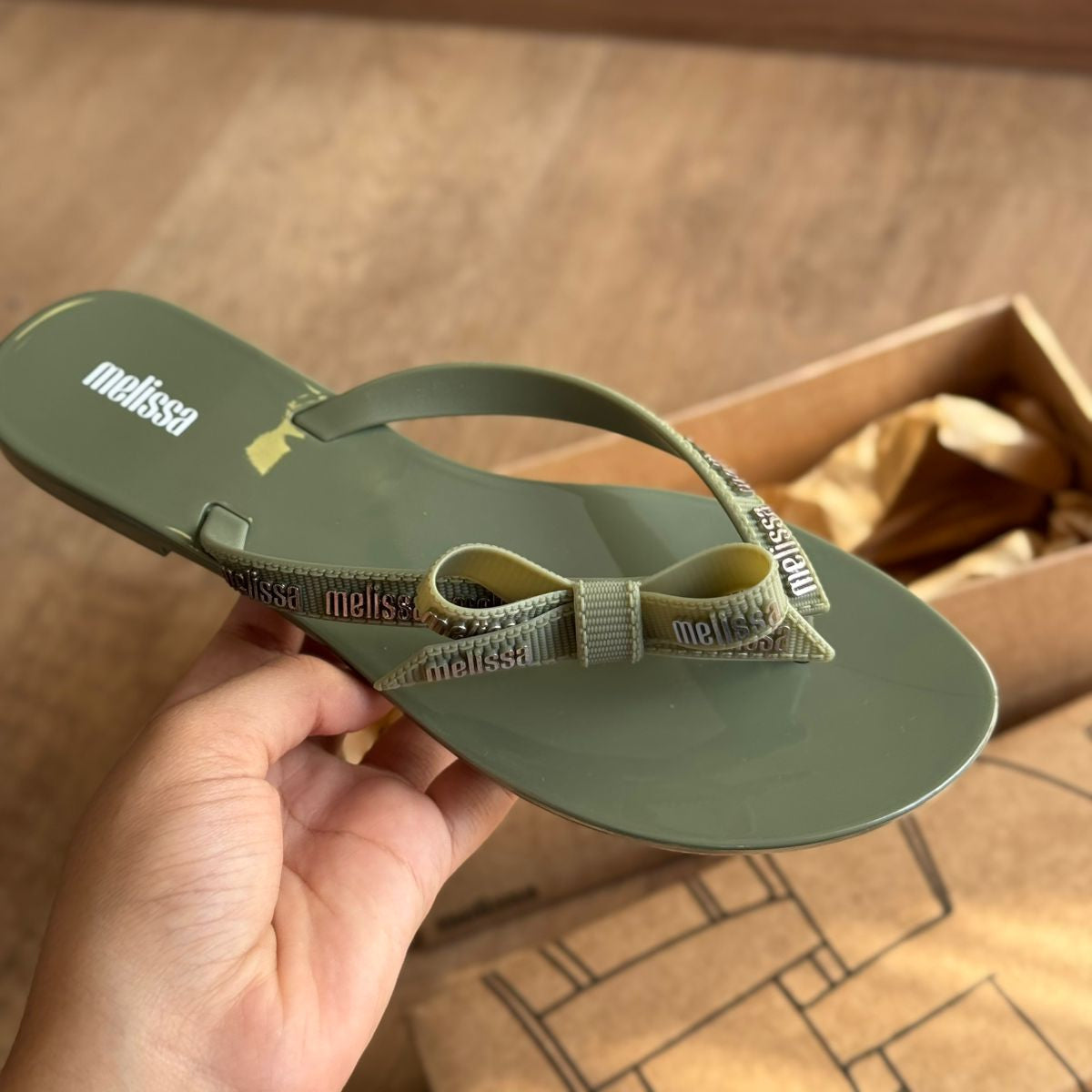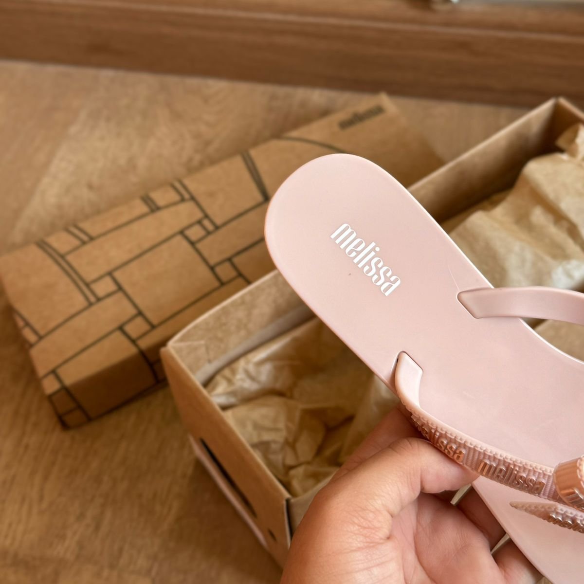 As fãs do modelo Harmonic têm mais um shape para adicionar à coleção: conheça a Melissa Harmonic M-Lover, um modelo delicado e super feminino que tem como diferencial a estampa com o logotipo da marca em toda a extensão das tiras e do laço frontal. Rasteira, possui solado em Melbubble superleve, que garante praticidade para diversas combinações nos dias mais quentes do ano.