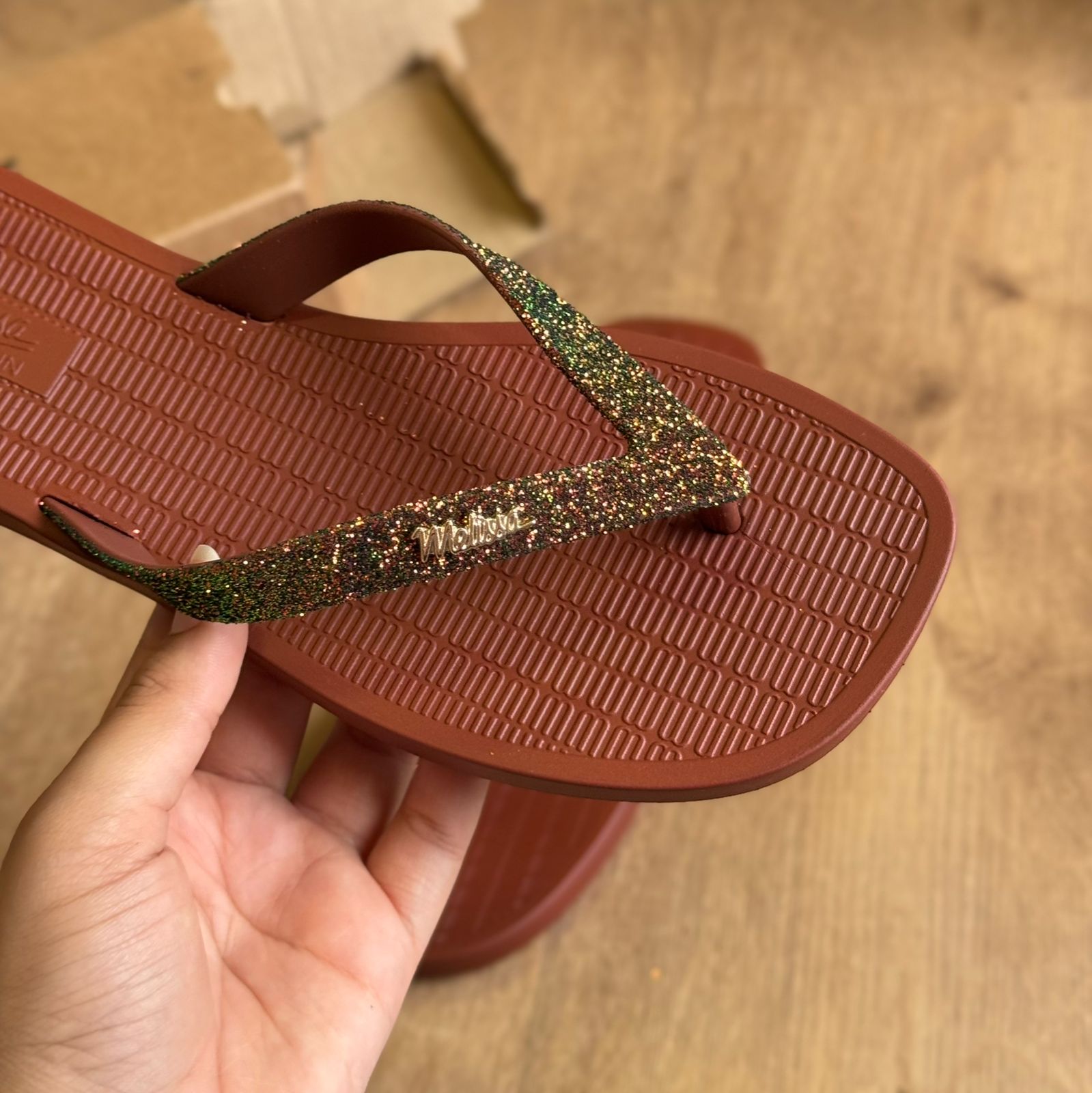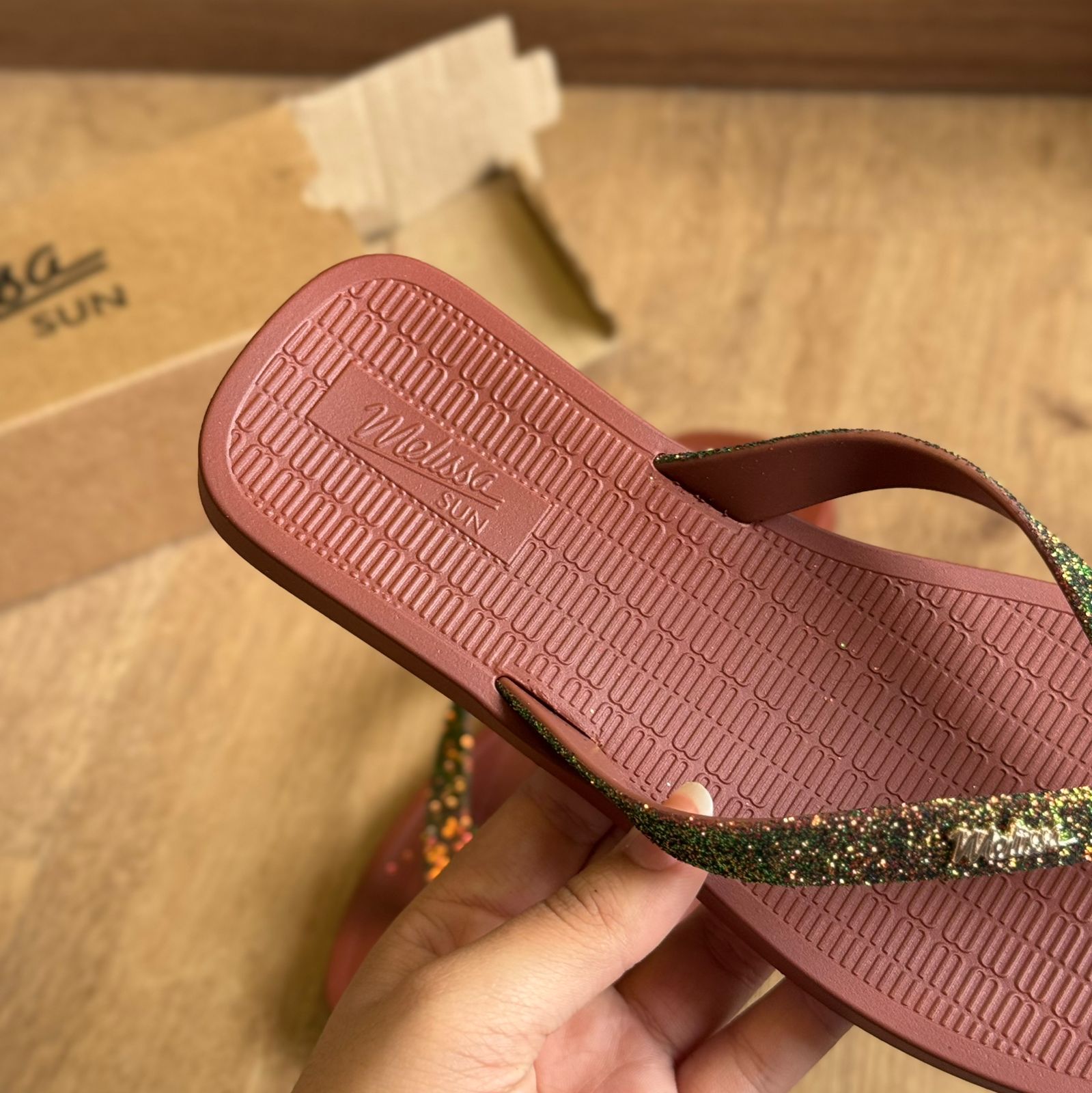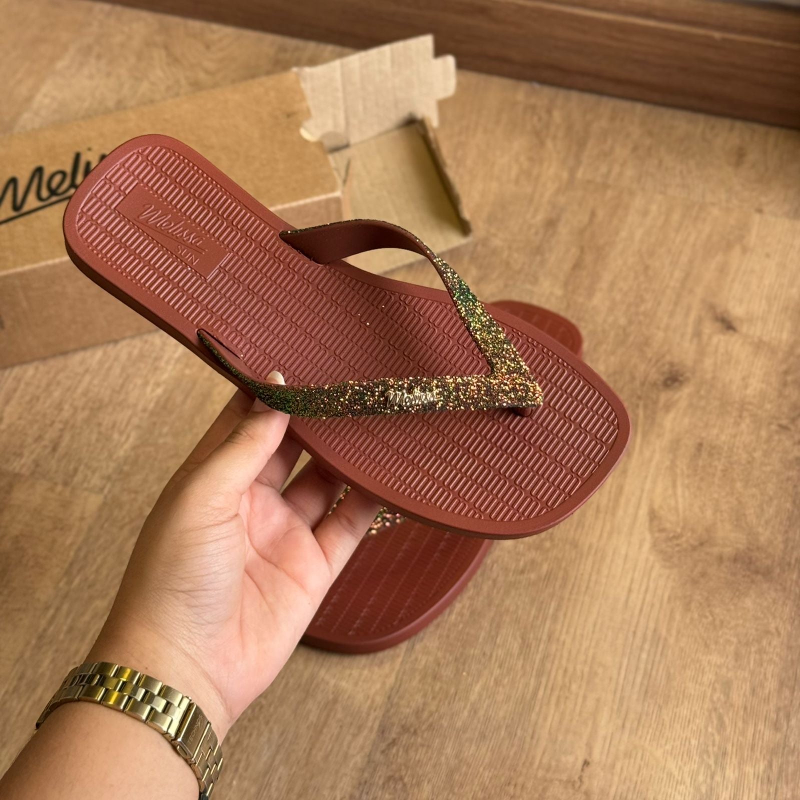 O Melissa Sun Long Beach II ganha um toque festivo com o glitter tornando-o perfeito para celebrar as festas de final de ano com estilo e conforto já conhecidos.