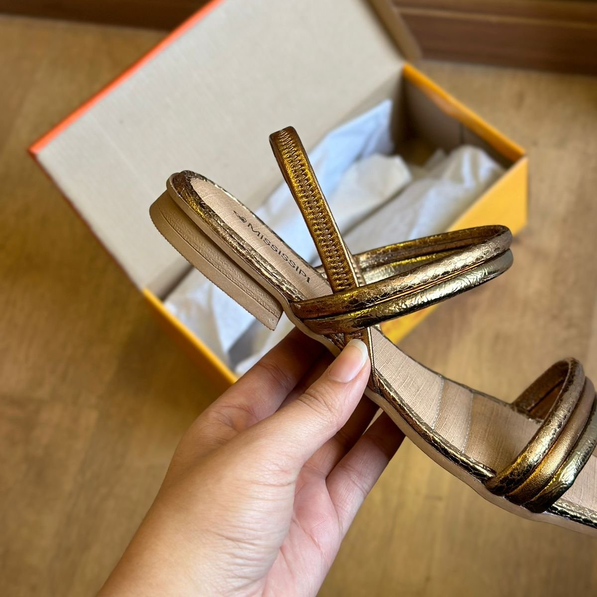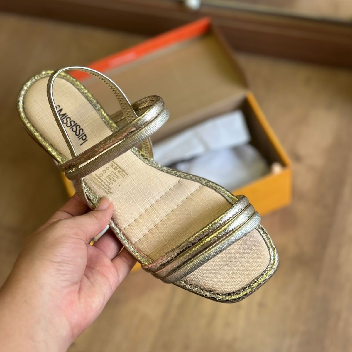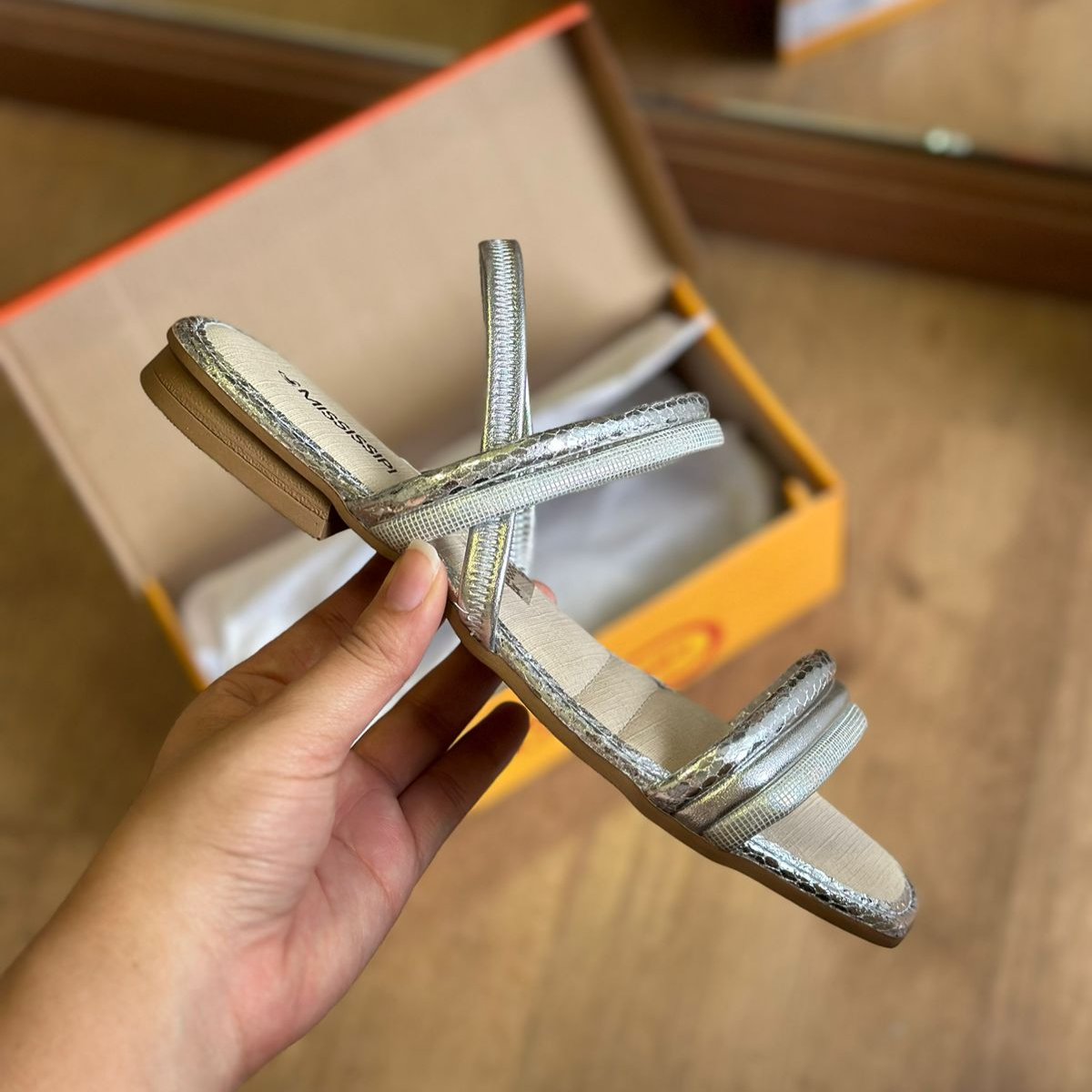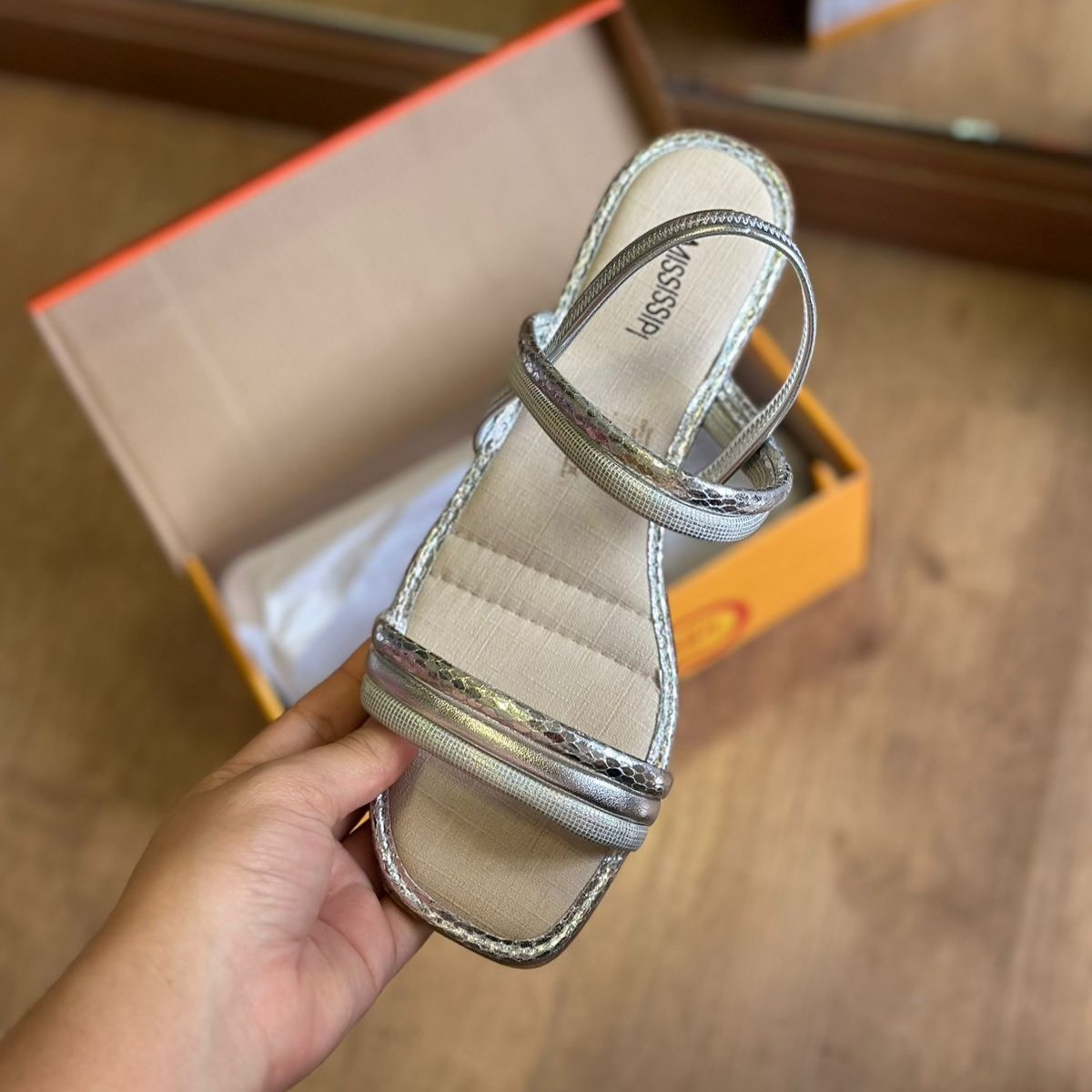 Parabéns! Seu look vai brilhar com a Sandália Mississipi Rasteira Metalizada MC322. Com detalhes metalizados, ela traz um toque de elegância e diversão para seus pés. Ande com estilo e conforto com essa sandália que vai fazer sucesso por onde passar.