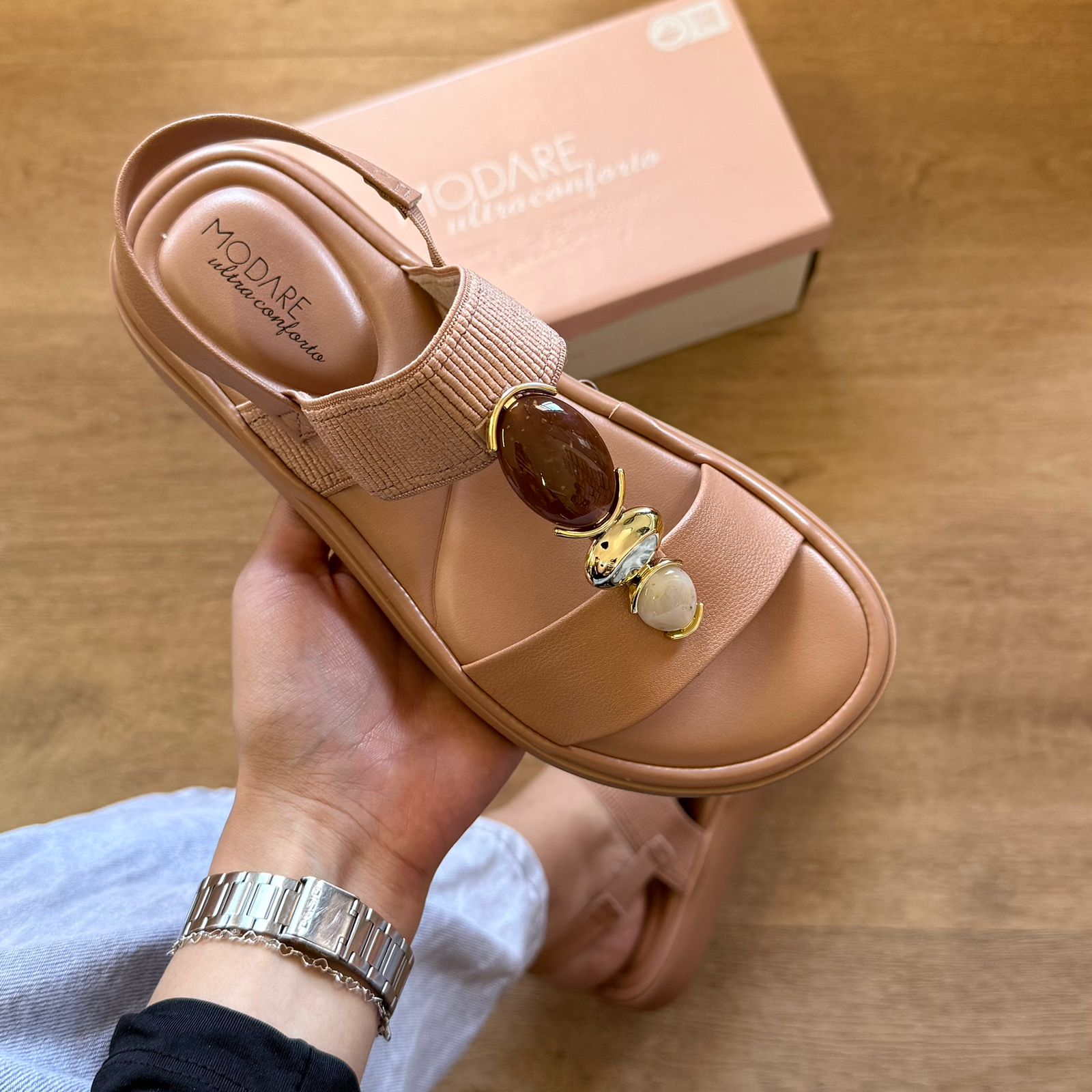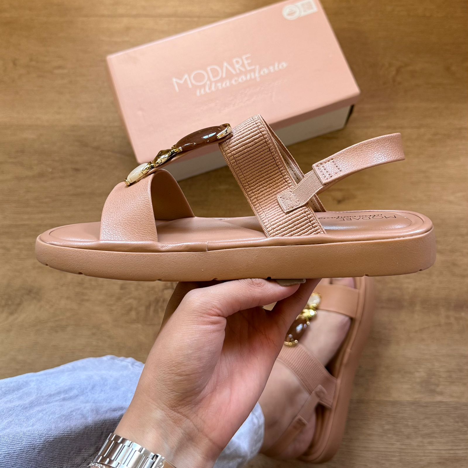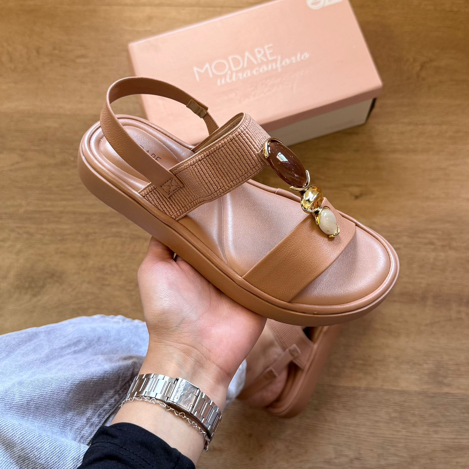 A Sandália Modare Adornos na Tira 7208.108 combina conforto e estilo, perfeita para uso diário. Seu design com detalhes decorativos na tira eleva o visual, enquanto a tecnologia de amortecimento Modare oferece suporte e bem-estar durante o dia todo. Ideal para quem busca praticidade sem abrir mão da elegância.
