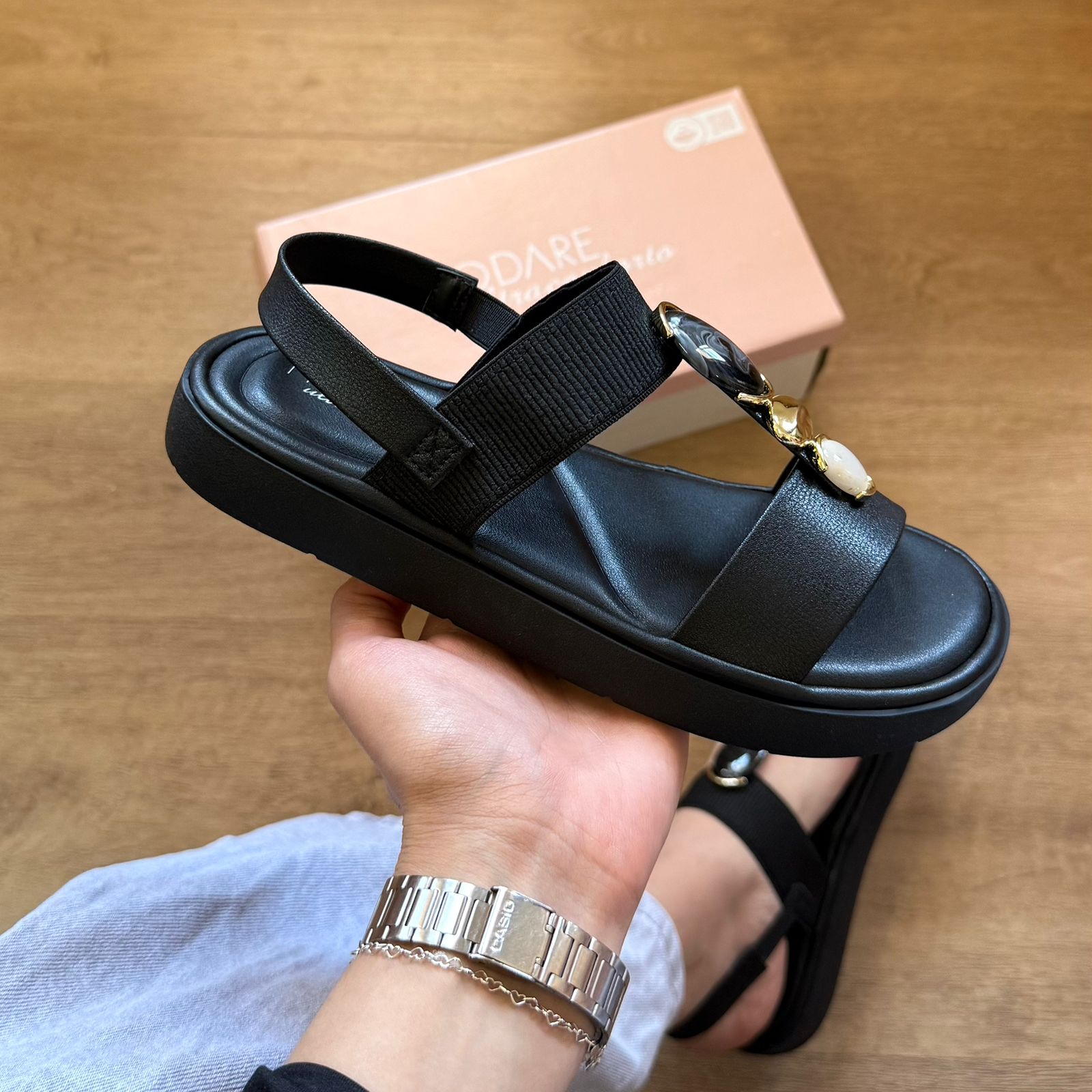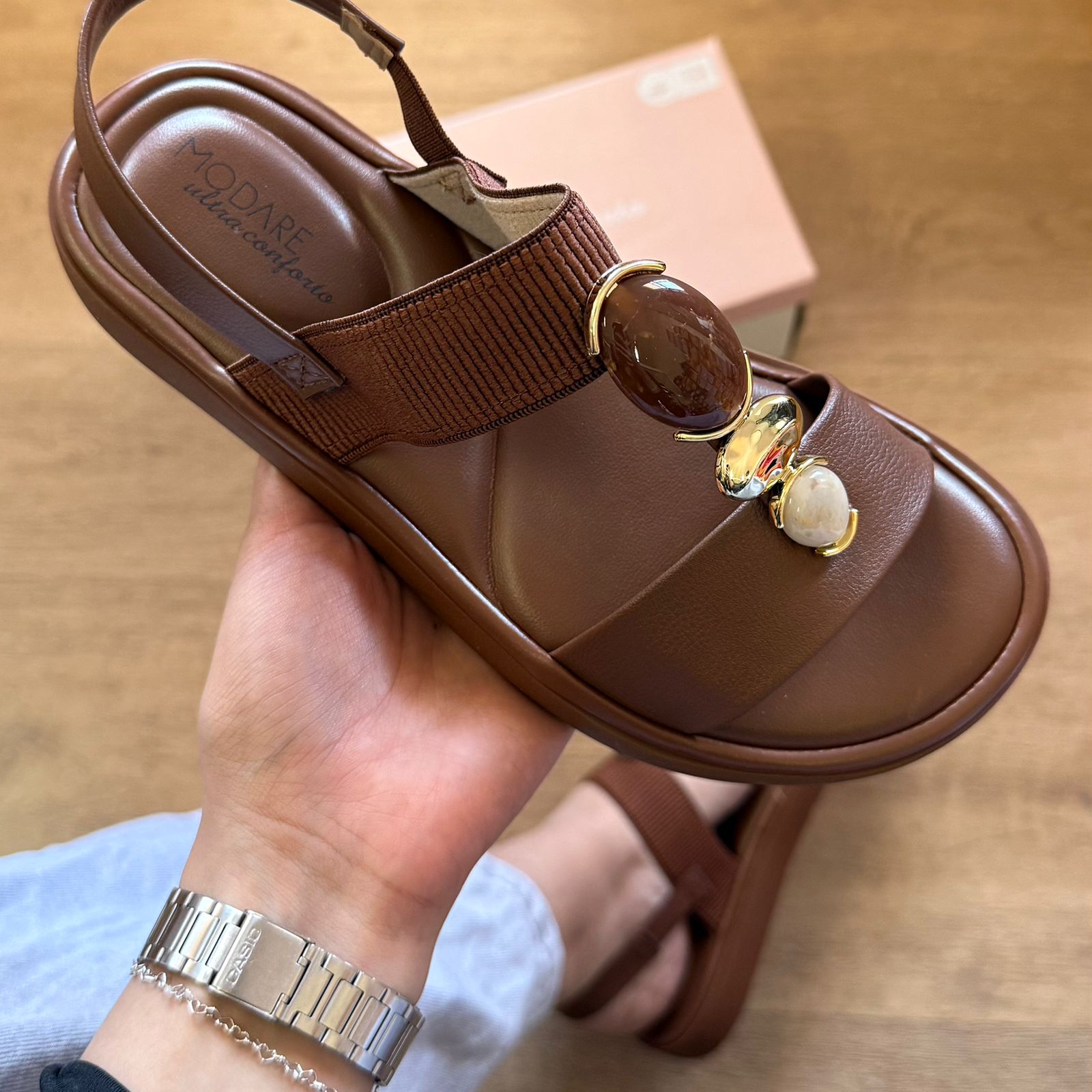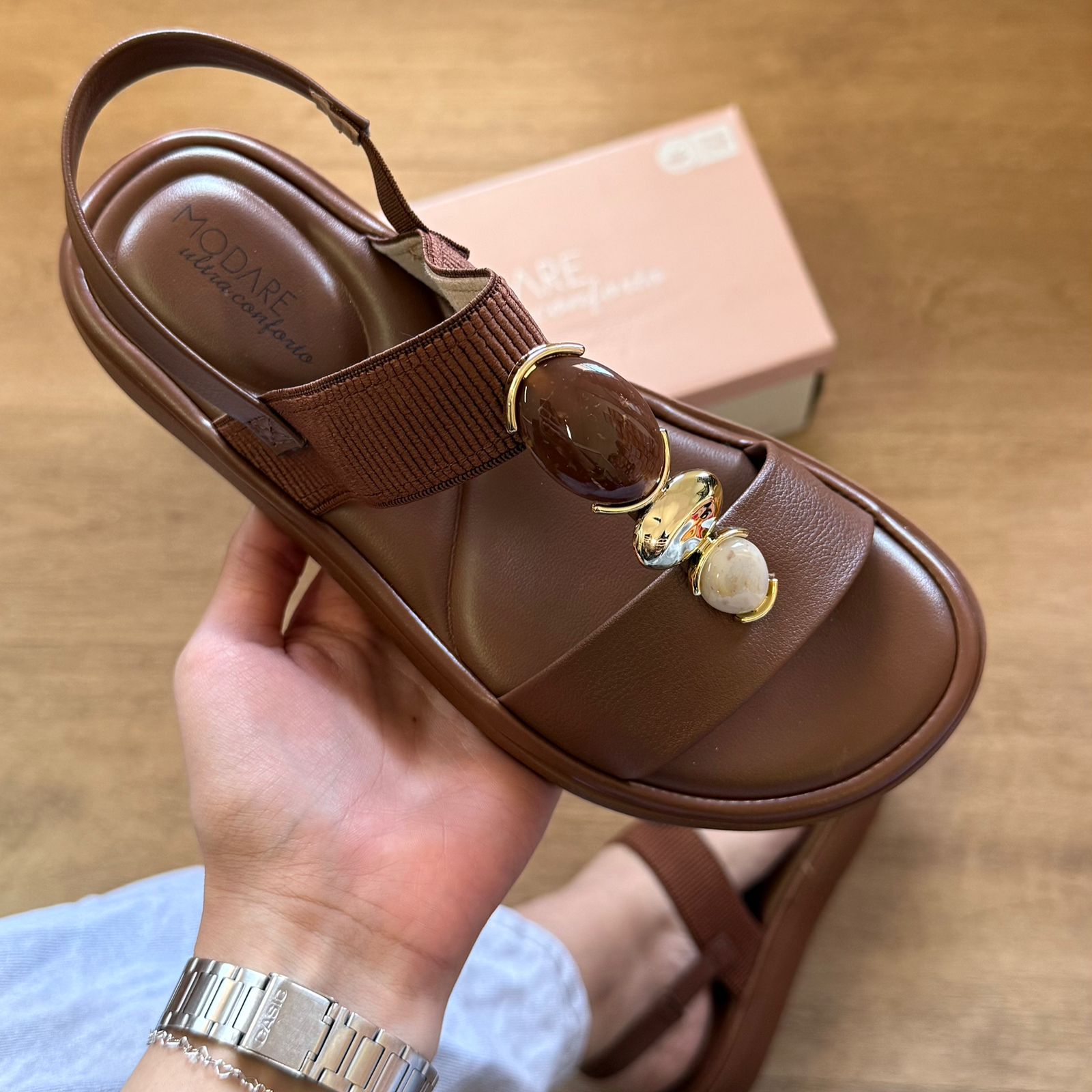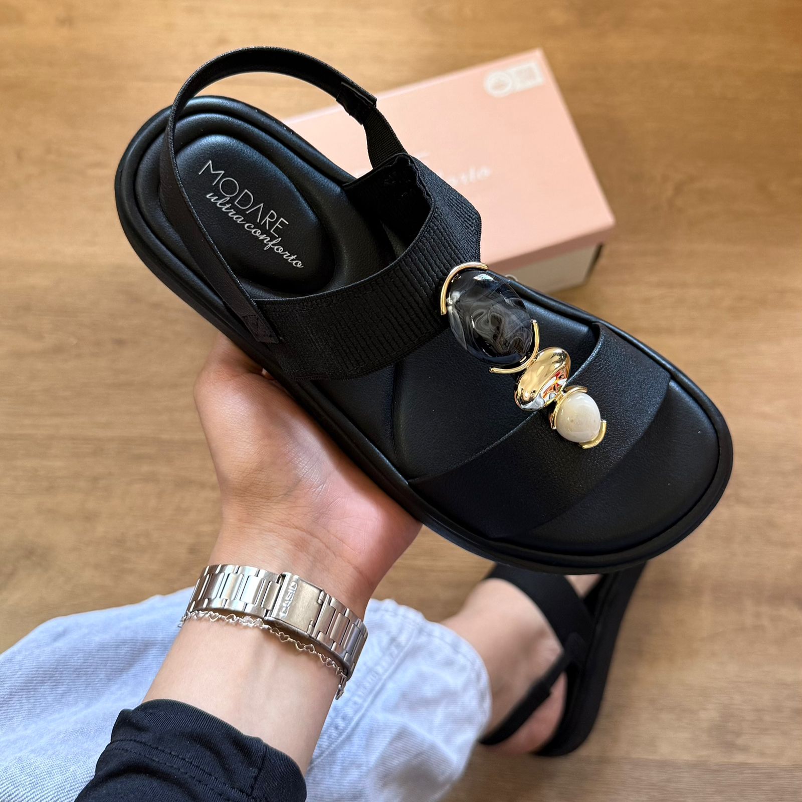 A Sandália Modare Adornos na Tira 7208.108 combina conforto e estilo, perfeita para uso diário. Seu design com detalhes decorativos na tira eleva o visual, enquanto a tecnologia de amortecimento Modare oferece suporte e bem-estar durante o dia todo. Ideal para quem busca praticidade sem abrir mão da elegância.