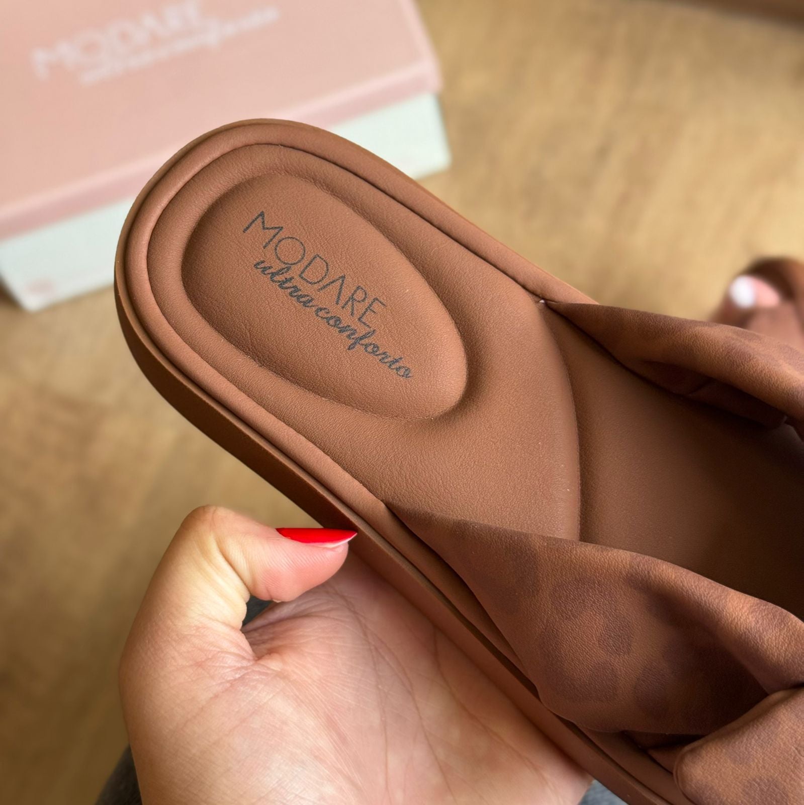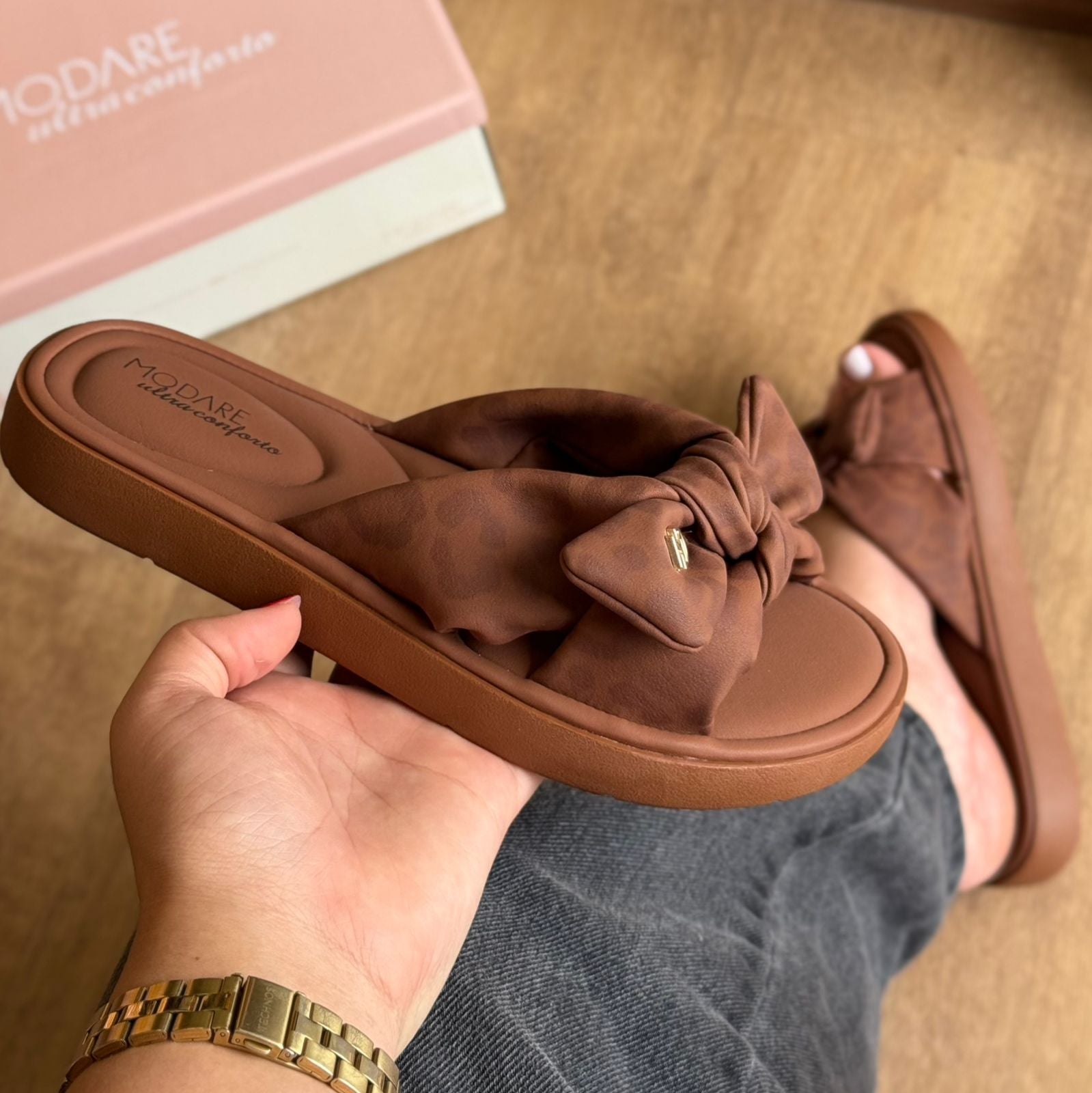 Sandália Modare com design sofisticado que combina conforto e estilo. Apresenta detalhes de laço delicado e padrão oncinha que conferem personalidade ao modelo. Construída com tecnologia Modare, oferece suporte adequado para o pé durante o dia todo. Ideal para quem busca uma peça versátil que transita entre looks casuais e mais elaborados. Perfeita para complementar diferentes estilos de forma elegante e confortável.