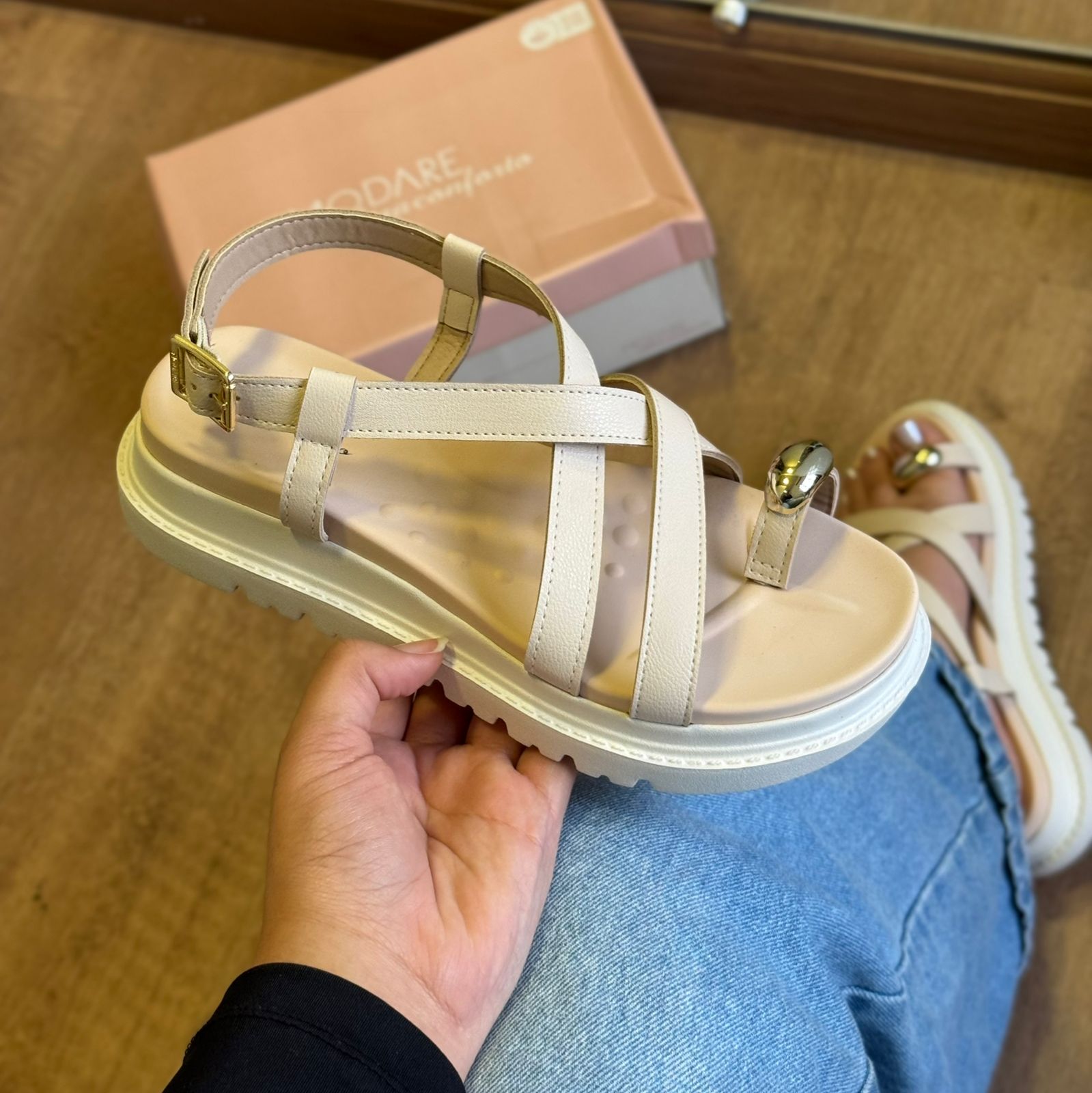 Delicada e sofisticada, a Sandália Modare 7200.107 traz um charme sutil com seu elegante detalhe dourado no dedo, que transforma o básico em algo especial. Desenvolvida com foco no conforto, ela possui palmilha macia e materiais que se ajustam suavemente aos pés, tornando cada passo mais leve. Ideal para compor produções casuais com um toque refinado, é a escolha perfeita para quem busca beleza sem abrir mão do bem-estar ao longo do dia.
