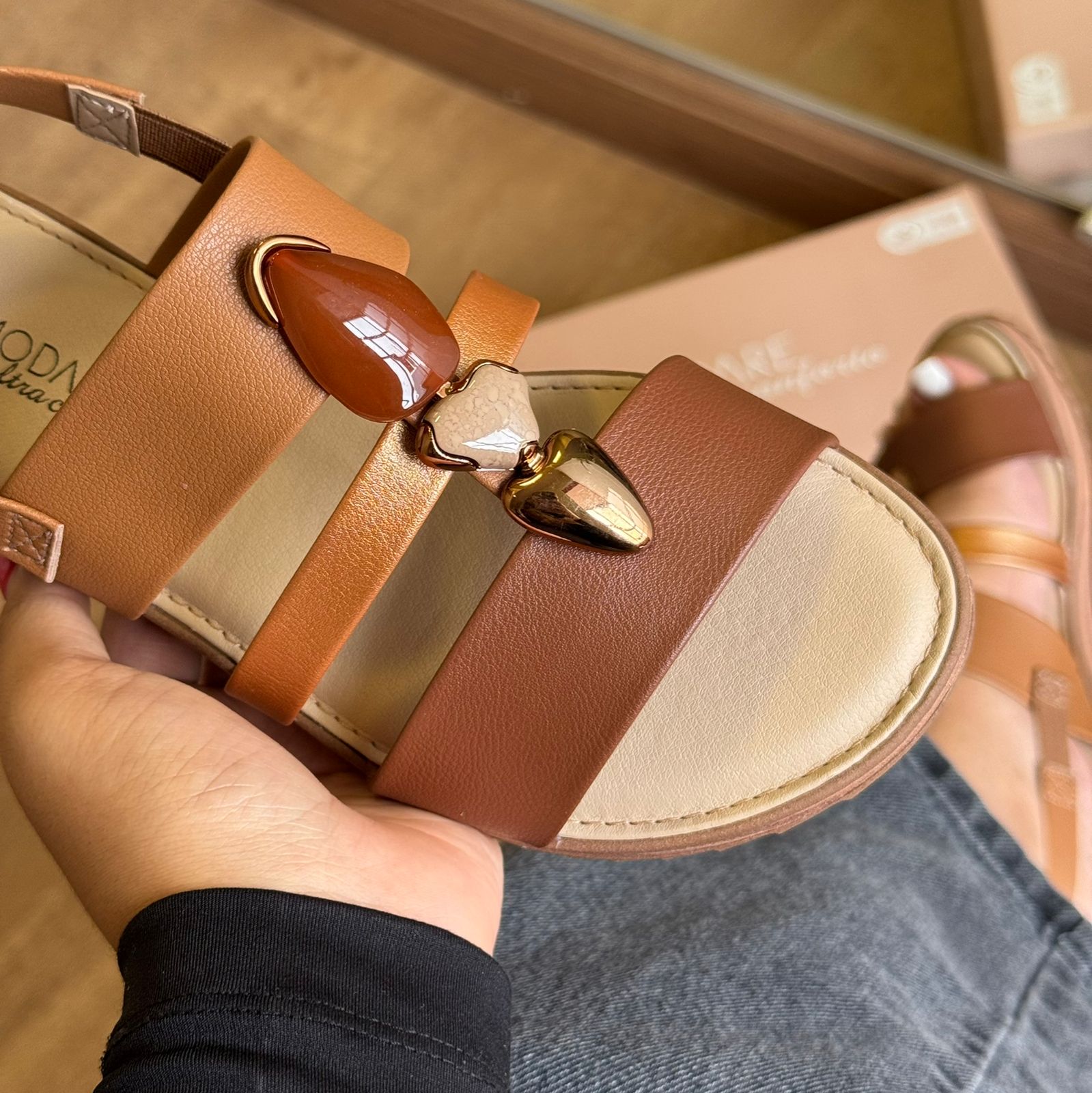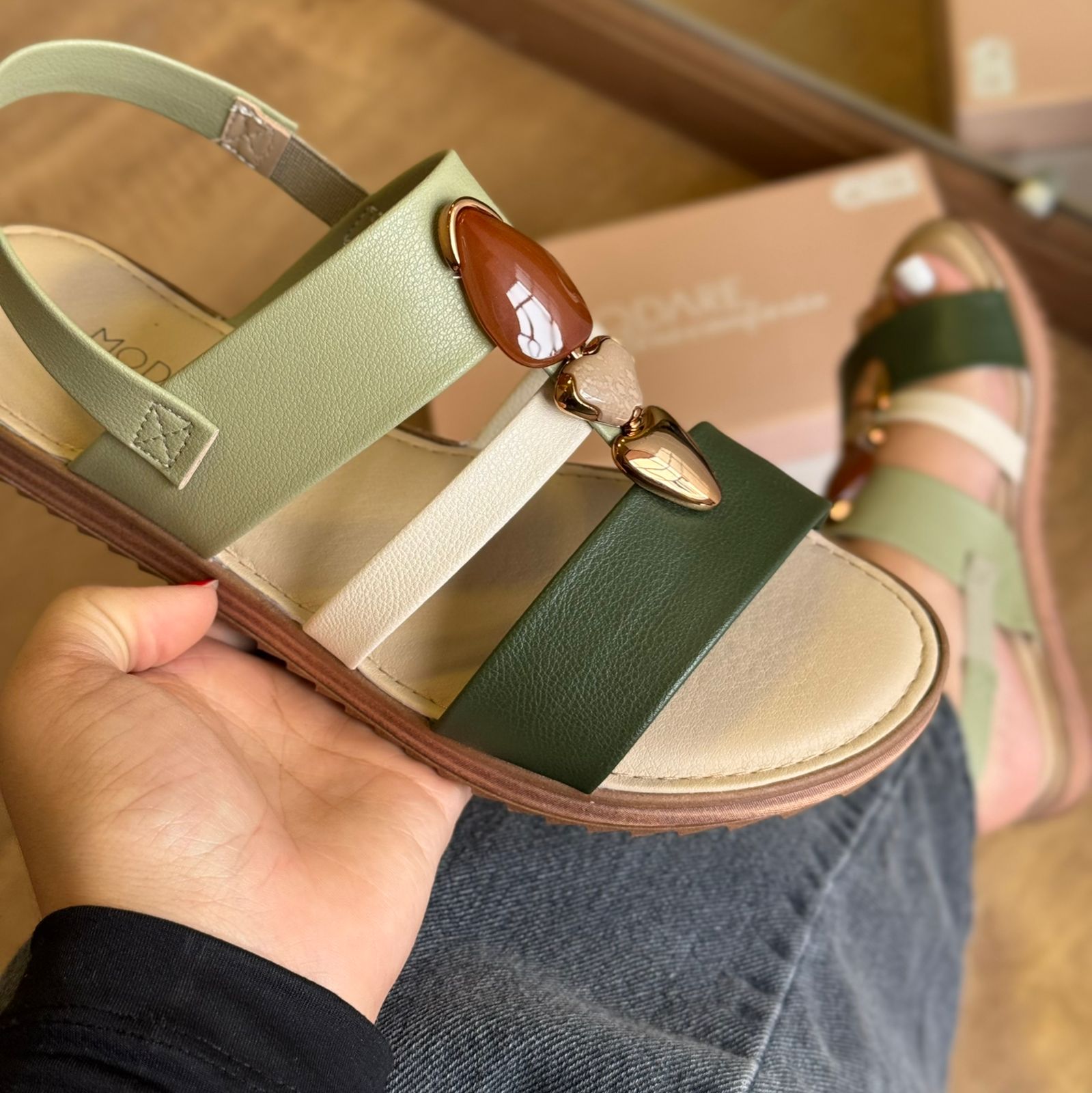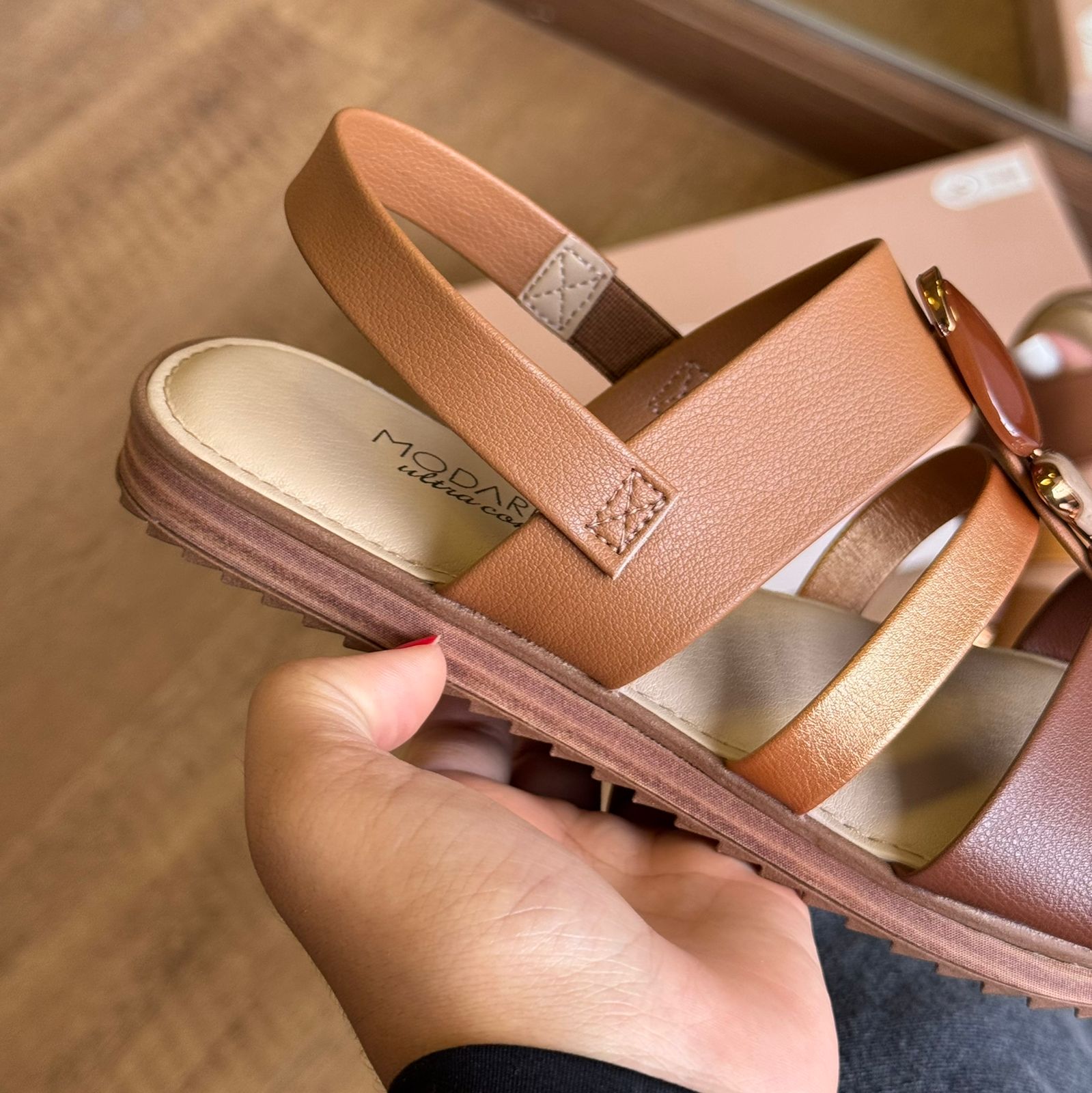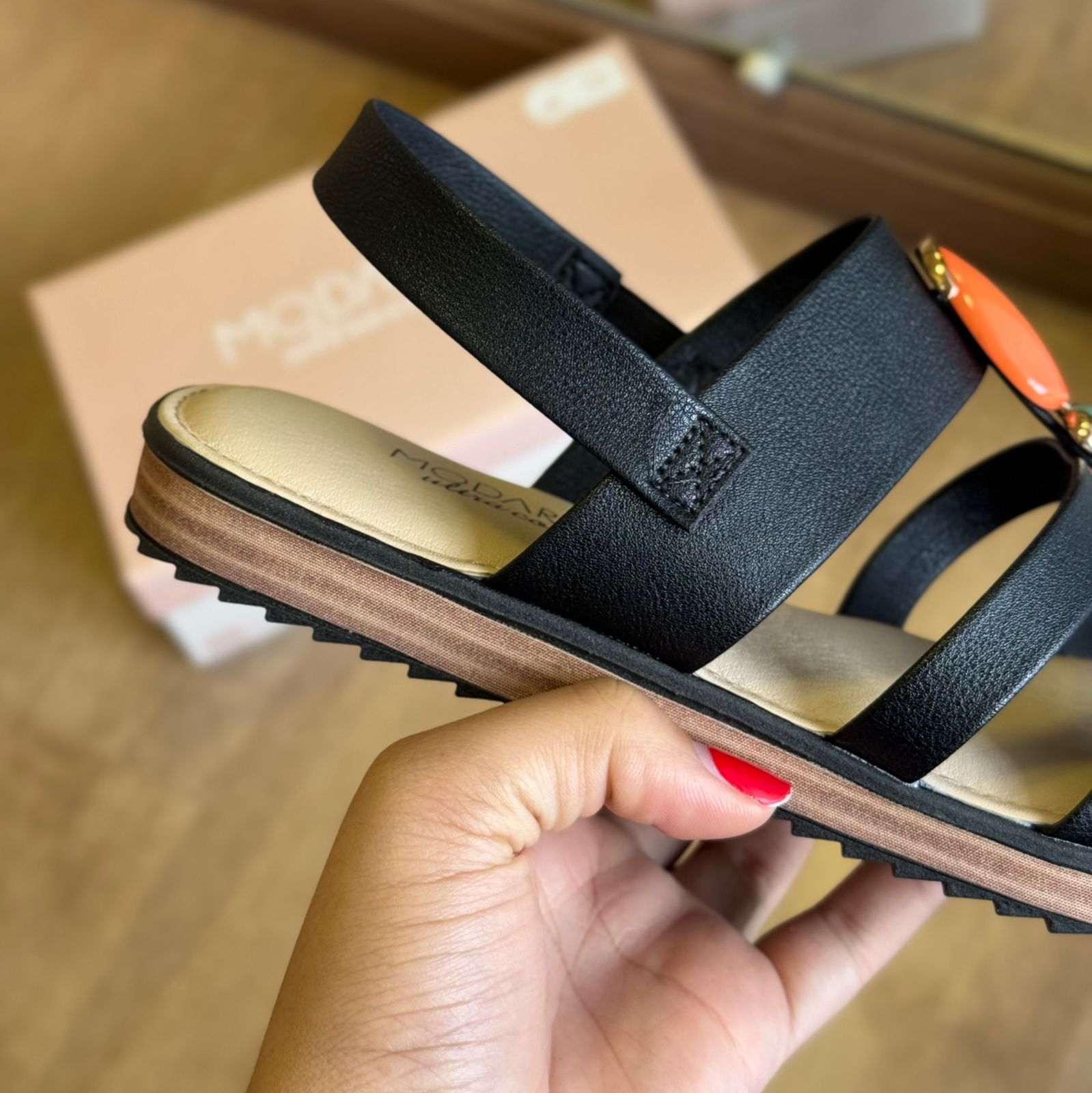 Elegante e confortável, esta sandália é ideal para quem busca praticidade e estilo no dia a dia. O modelo conta com detalhes delicados em pedrarias no cabedal, que adicionam um toque de brilho e sofisticação ao visual.