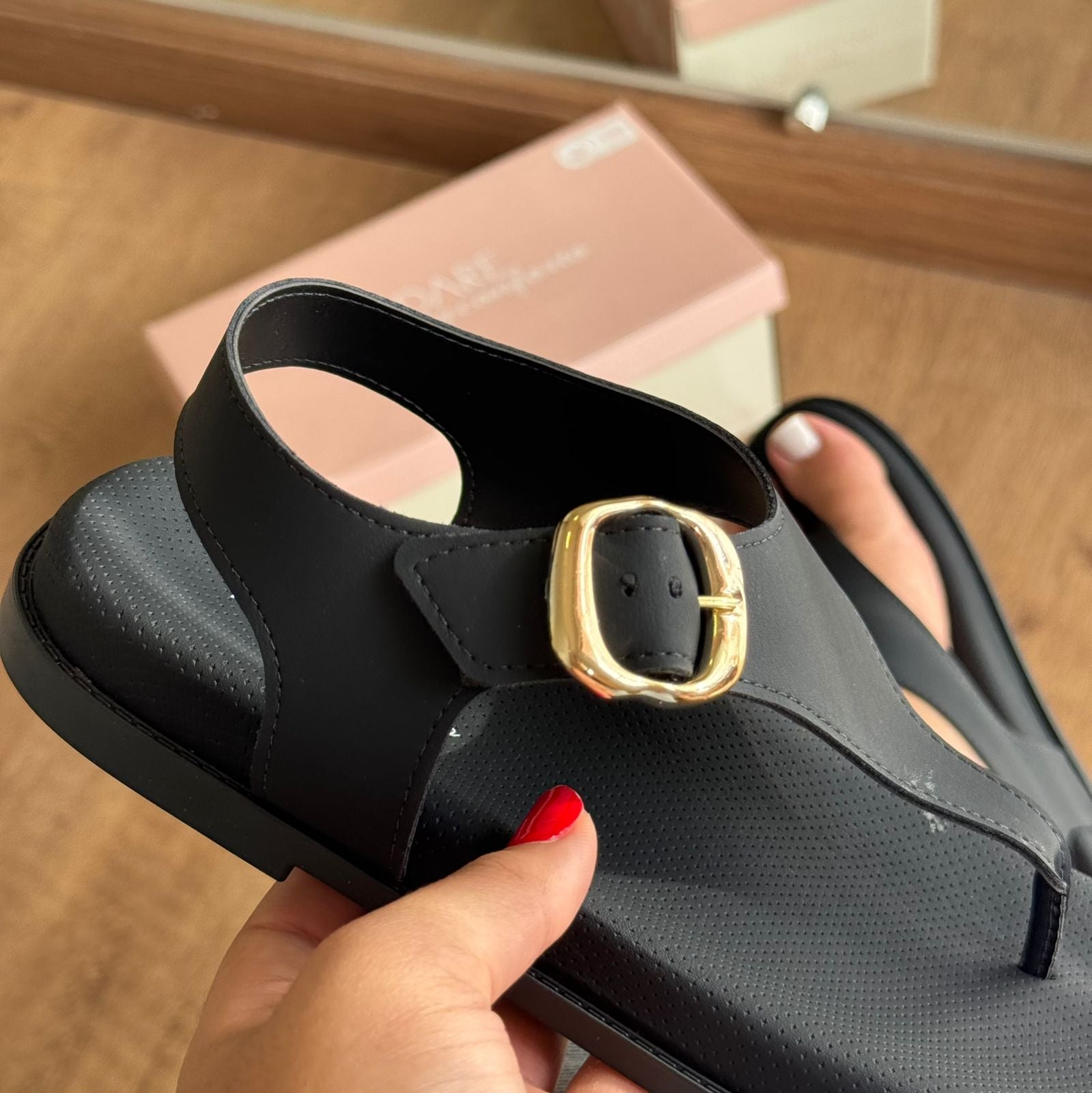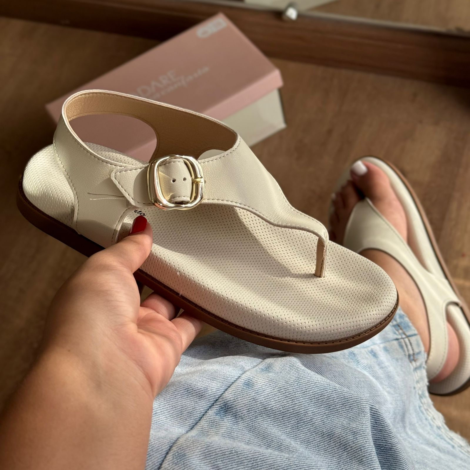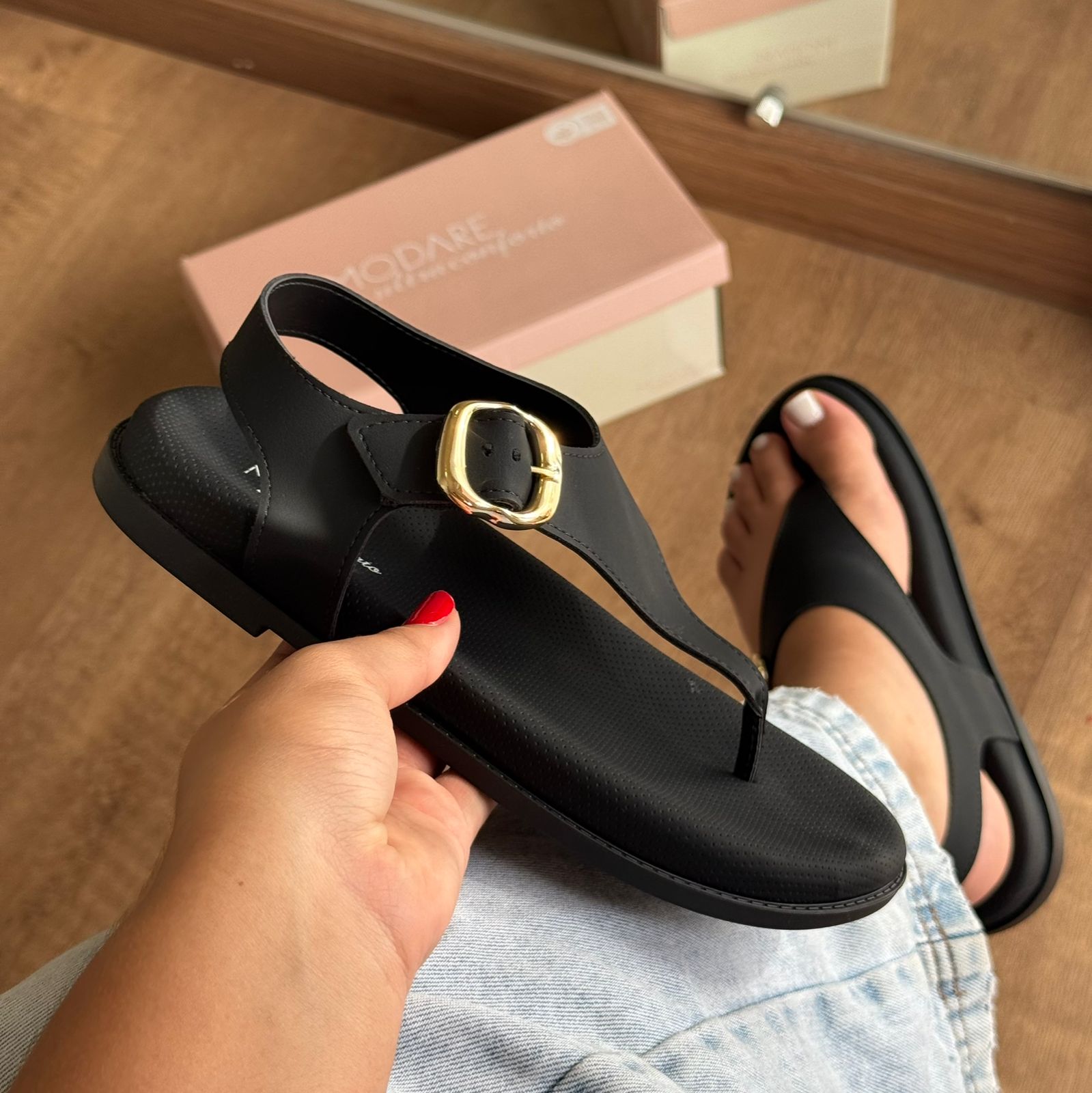 Sandália Modare com fivela em acabamento dourado, o modelo. Desenvolvida com tecnologia de conforto, oferece suporte adequado para o uso diário. O design clássico com detalhes em dourado proporciona versatilidade para combinar com diferentes estilos de roupa. Ideal para quem busca qualidade e elegância em uma sandália funcional e durável.