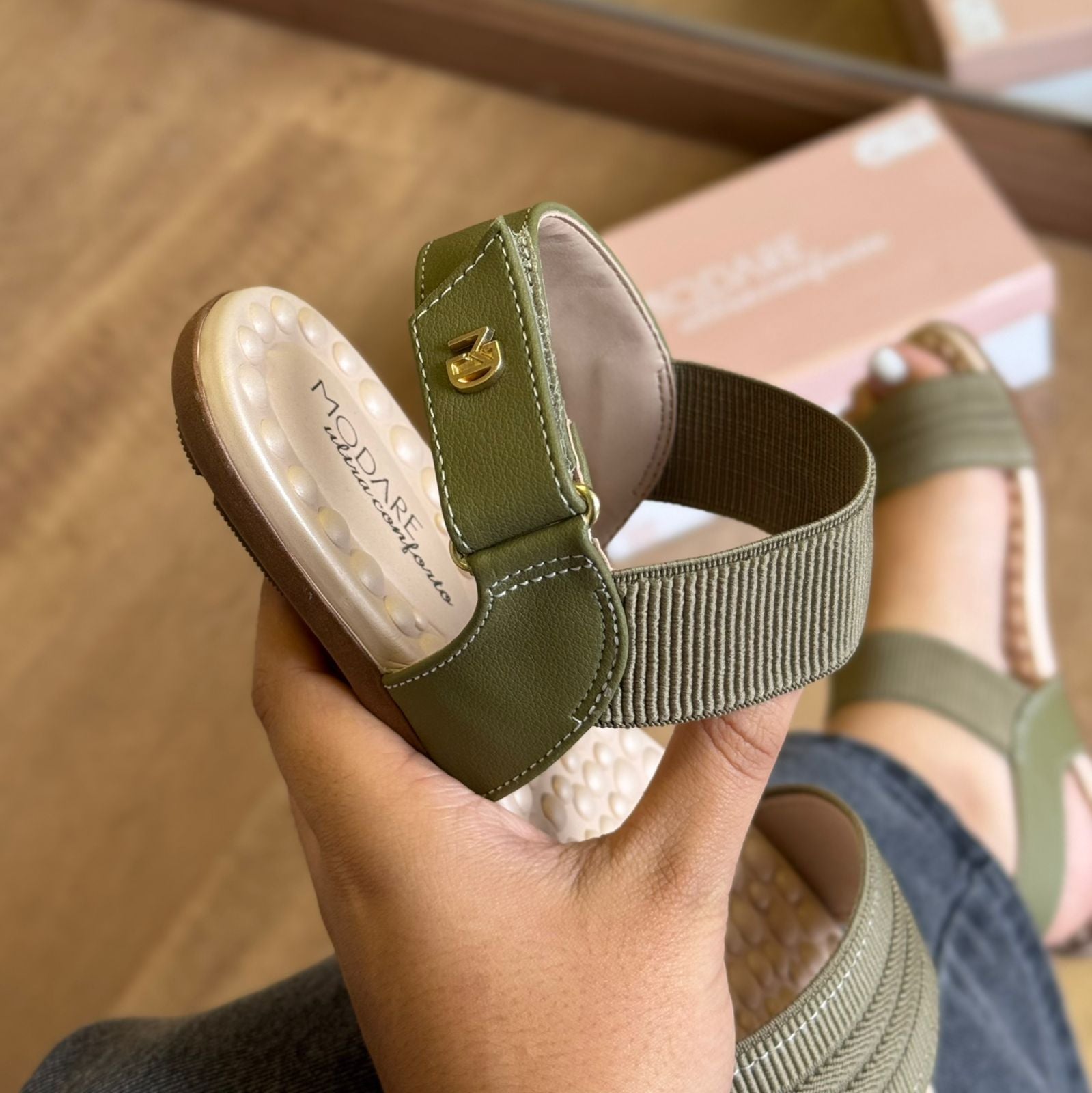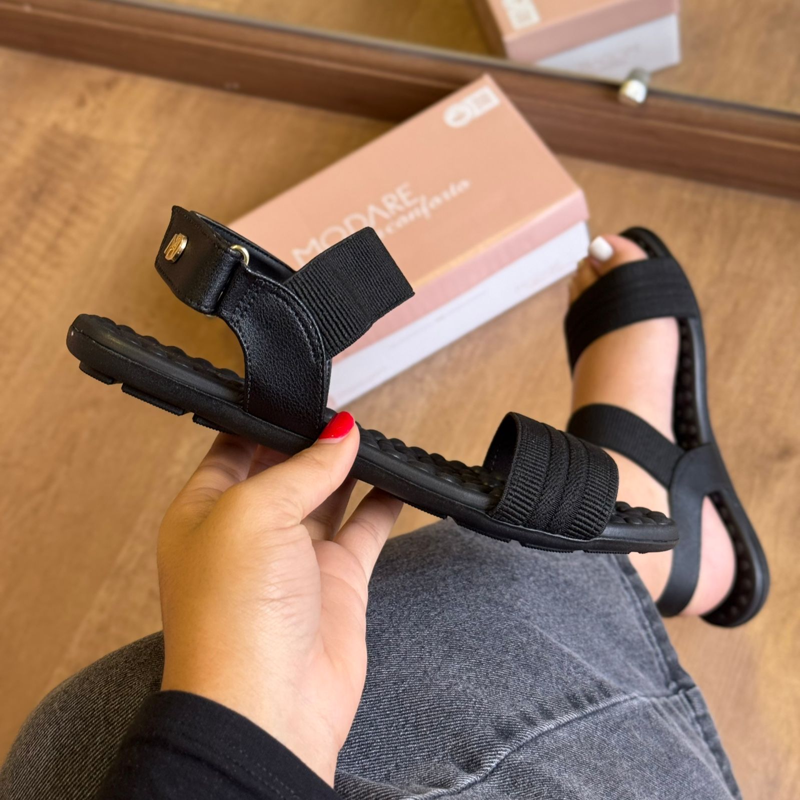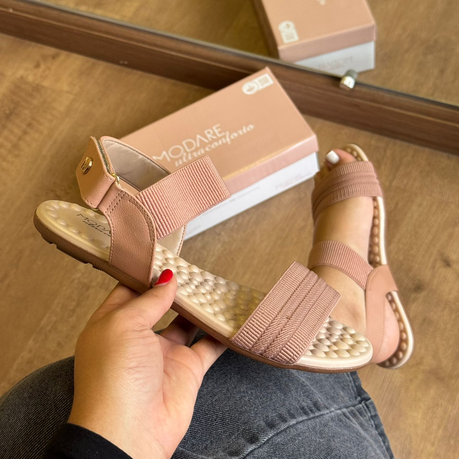 A Sandália Modare Pontos de Conforto Detalhe Marca Logo combina design moderno com tecnologias pensadas para o cuidado dos pés. Seu cabedal em material sintético macio proporciona ajuste confortável e delicado, enquanto o detalhe com o logo da marca agrega um toque sofisticado ao visual.